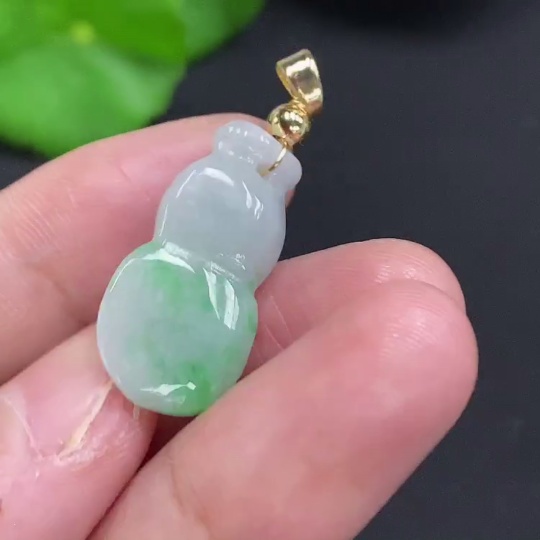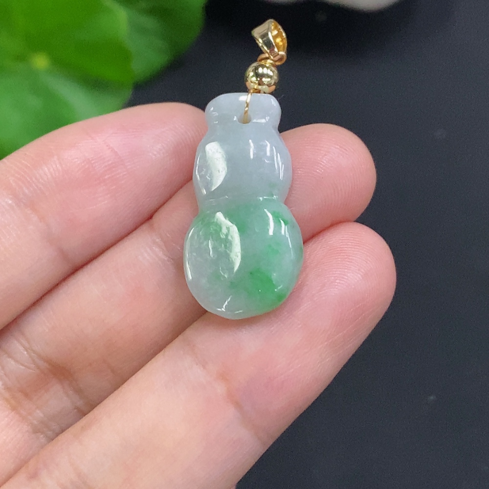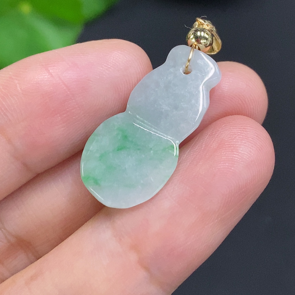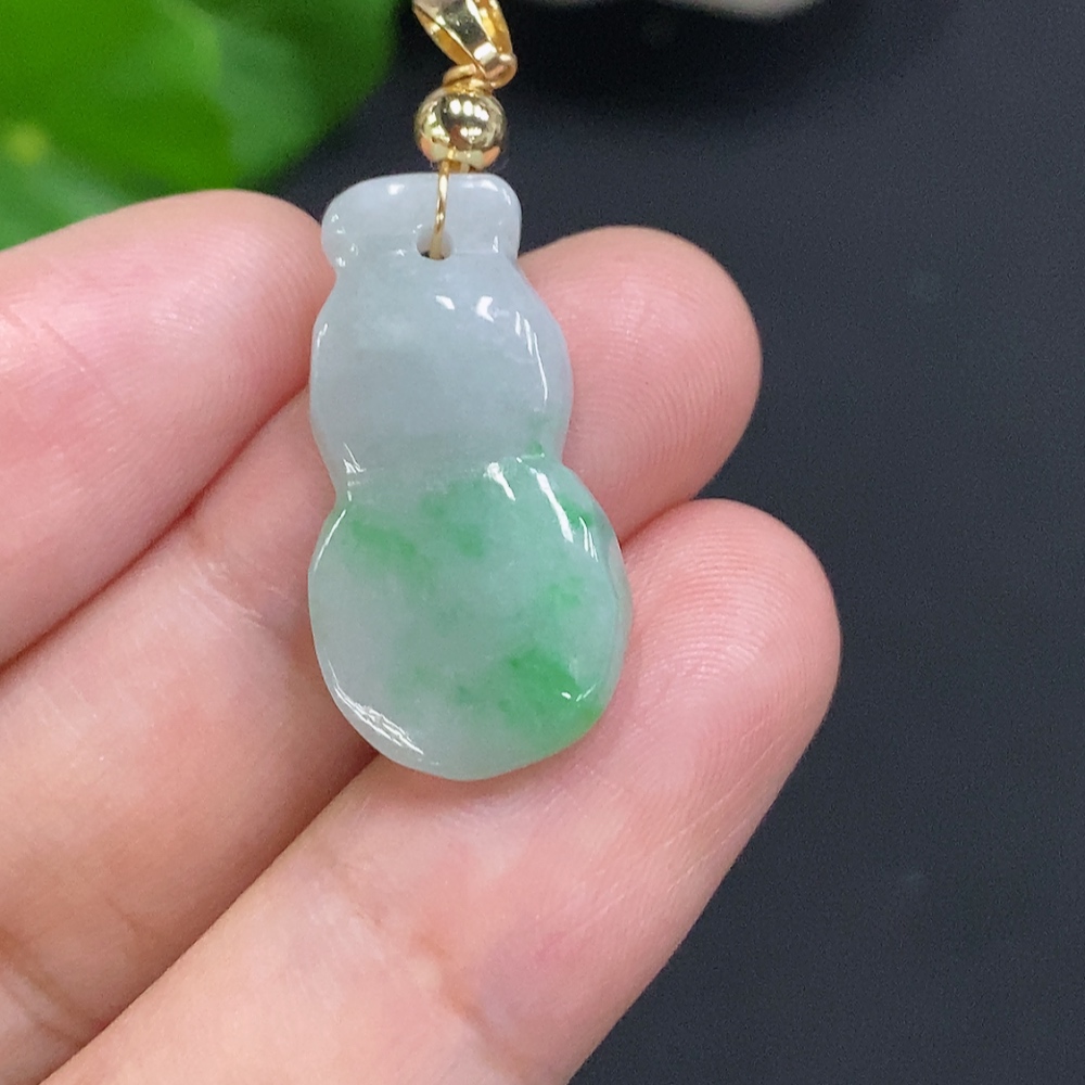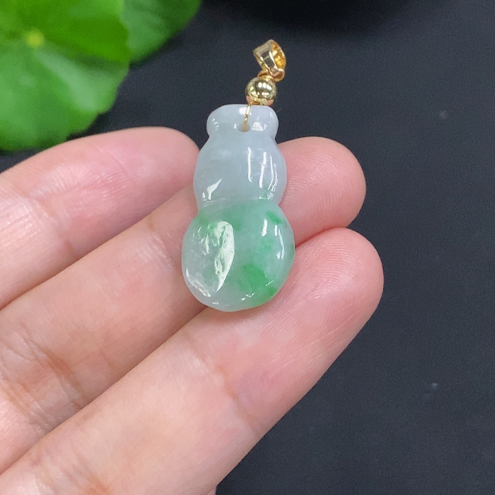Jadeite Gourd Pendant Non-Gold Inlaid Total Weight Approx. 2.6g