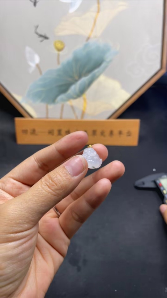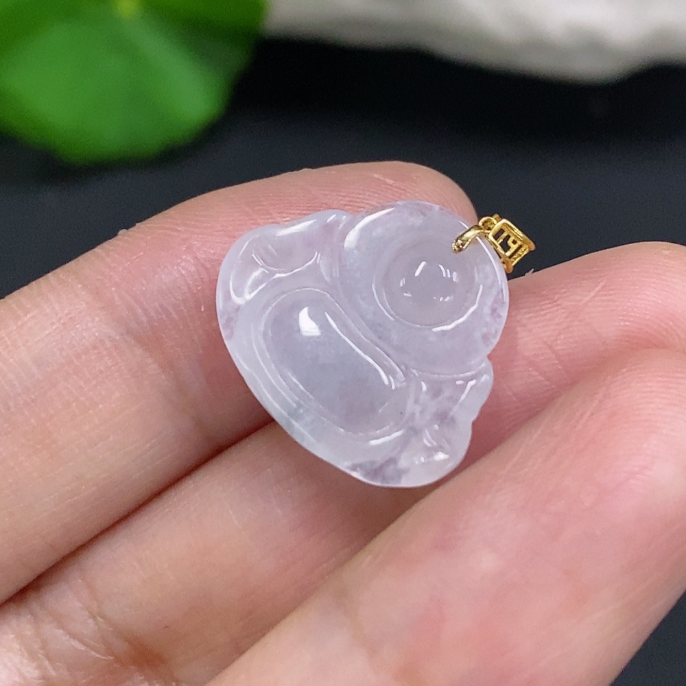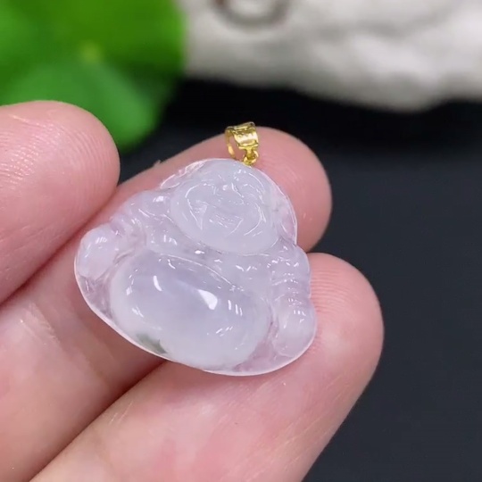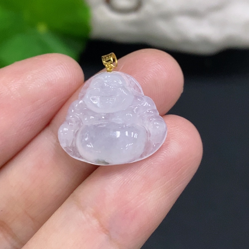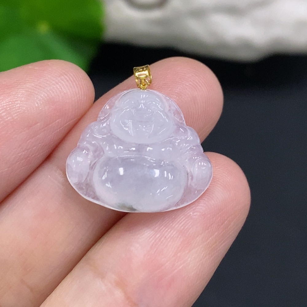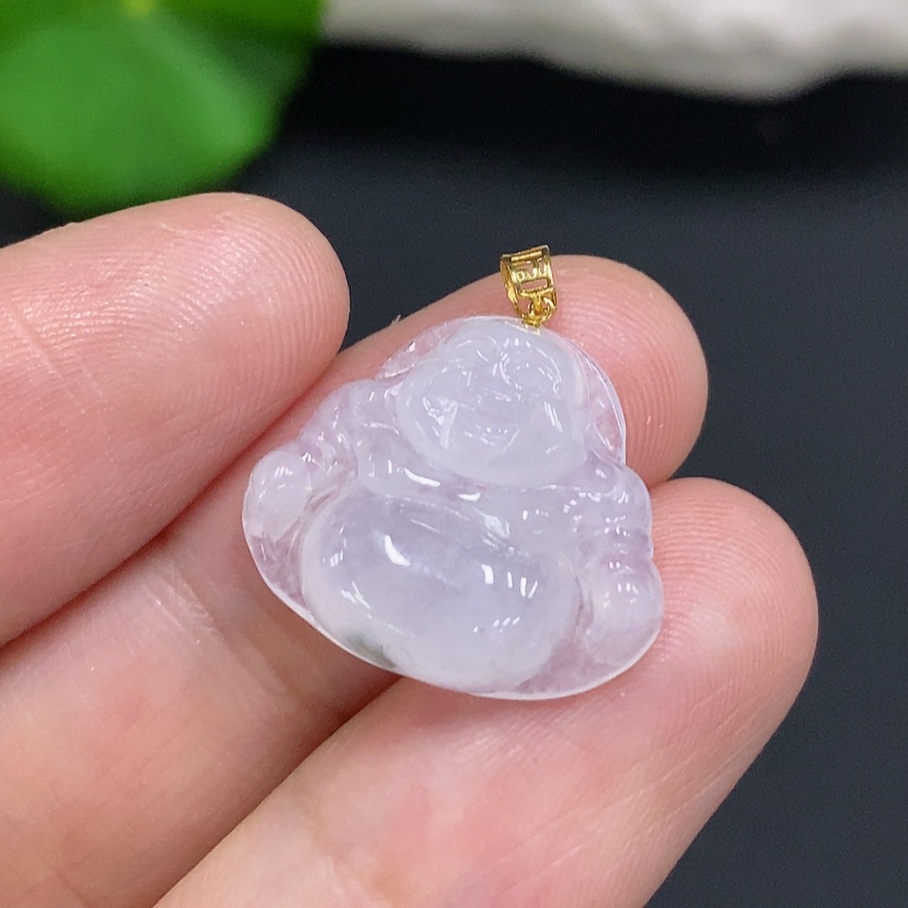 Jadeite Buddha Pendant with 18K Gold Bail, Total Weight Approx. 2.25g