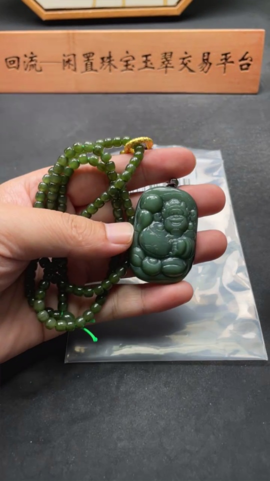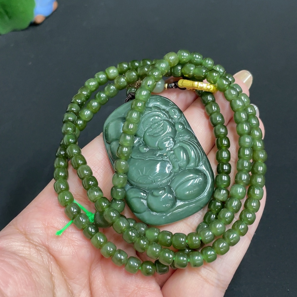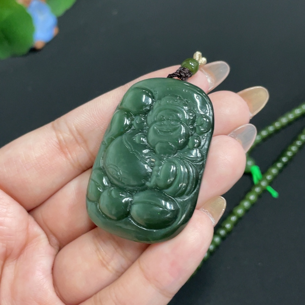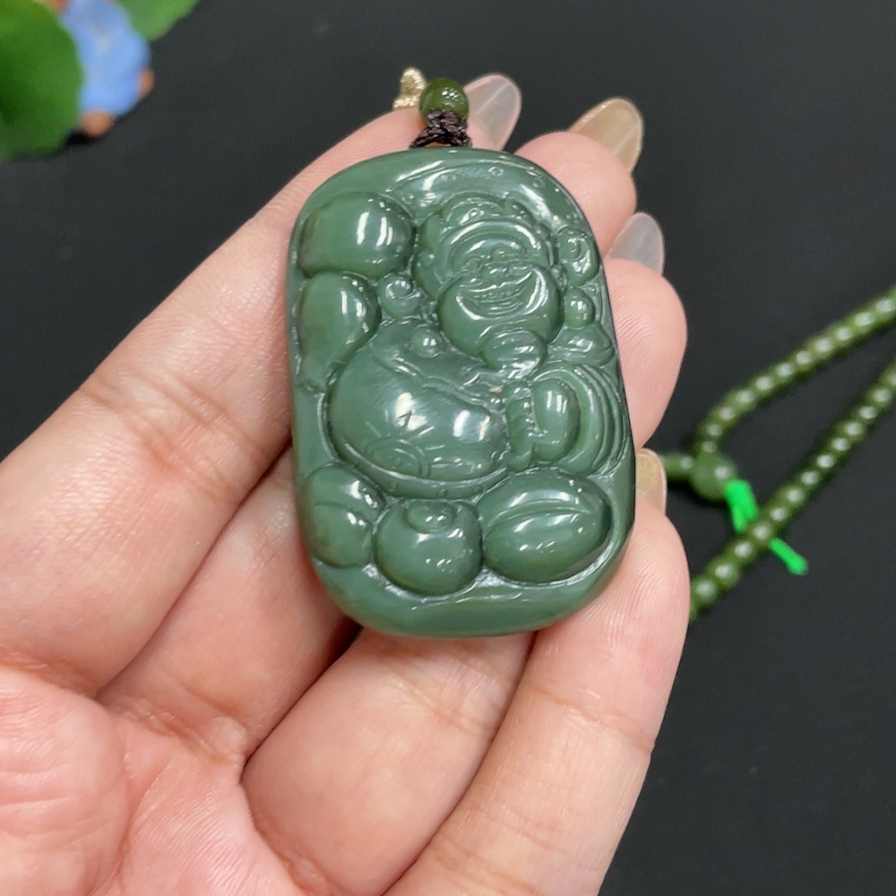 Hetian Jade Pendant God of Wealth Total Weight Approx. [with chain] 59g