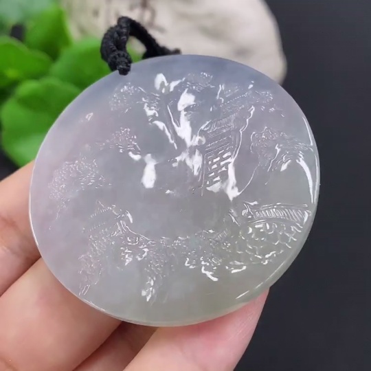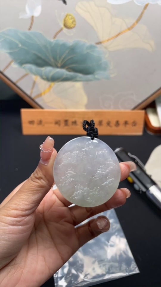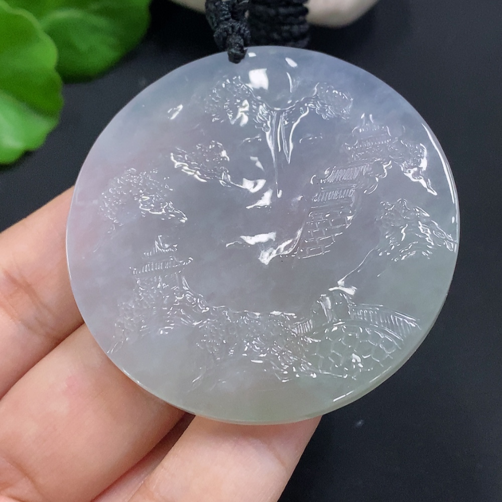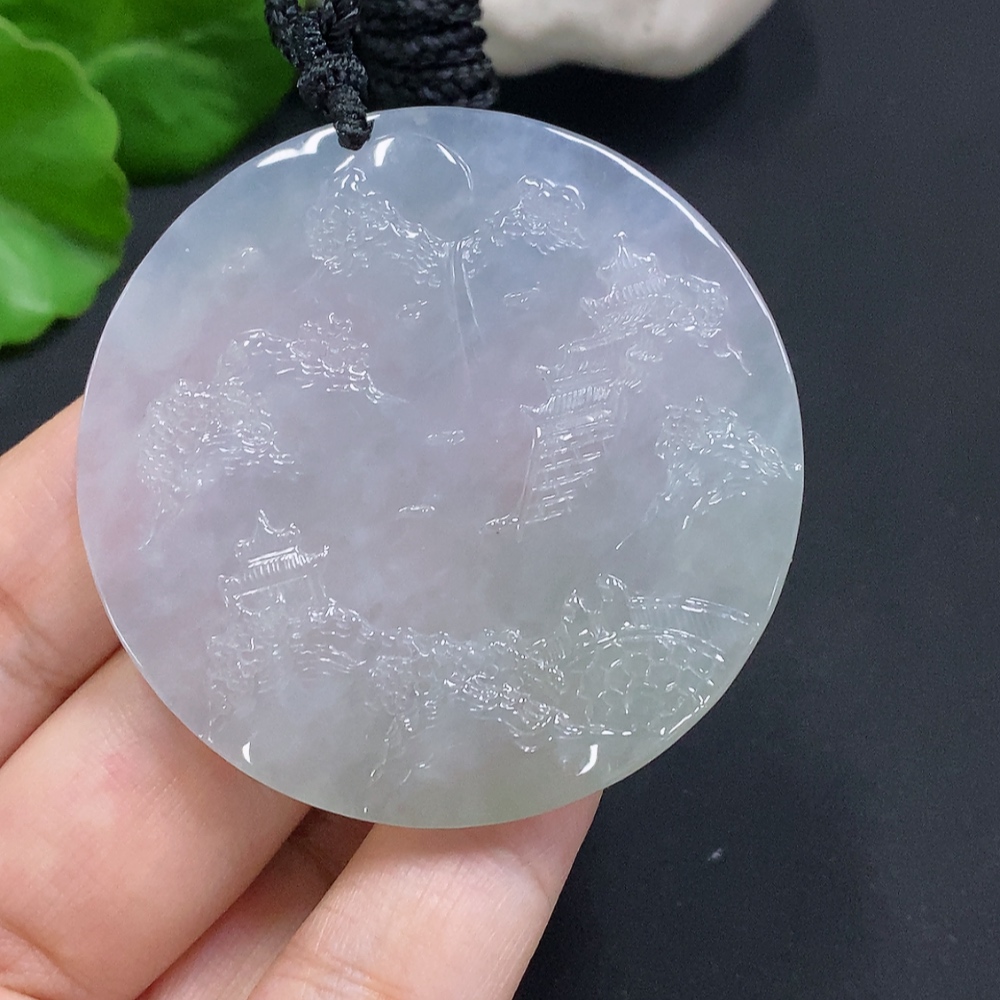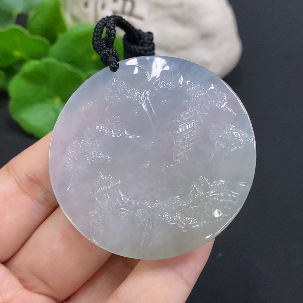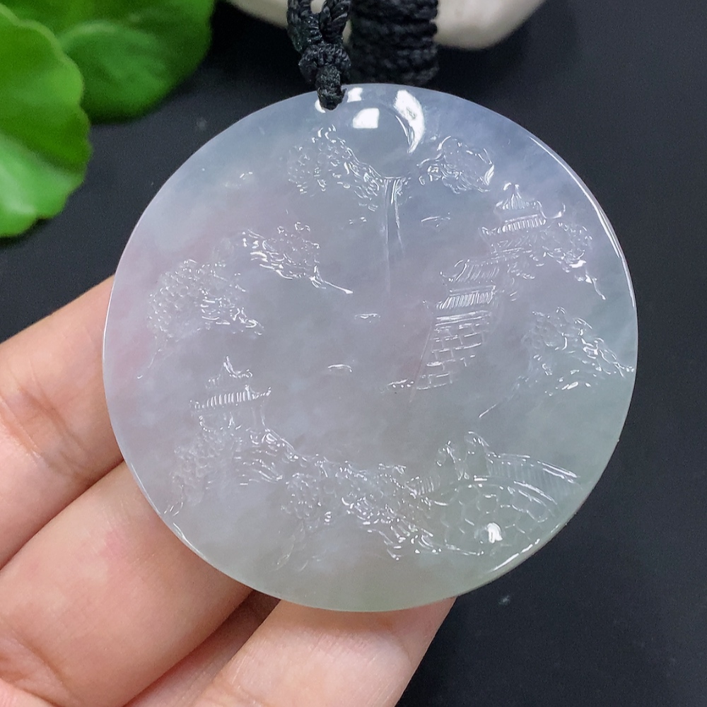 Jadeite Landscape Pendant with Cord, Total Weight Approximately 34.8g