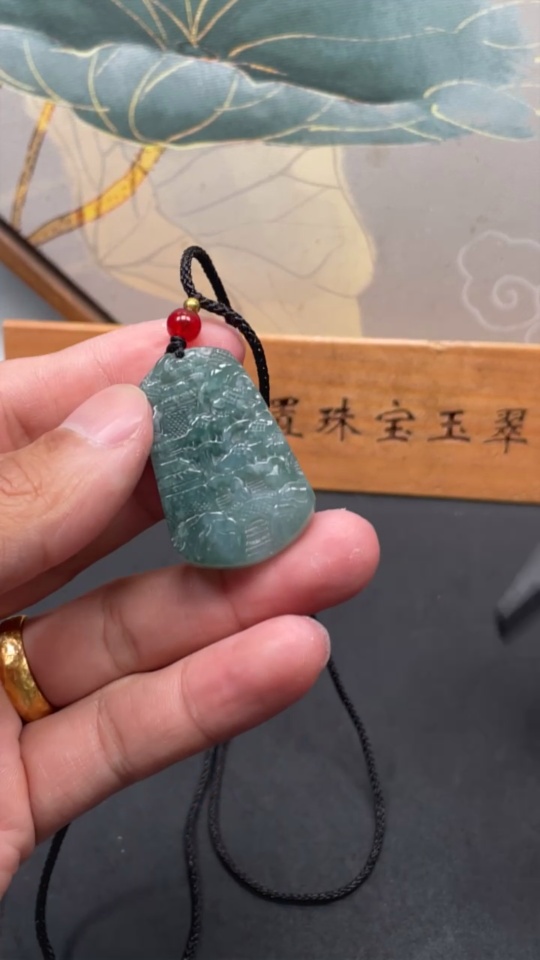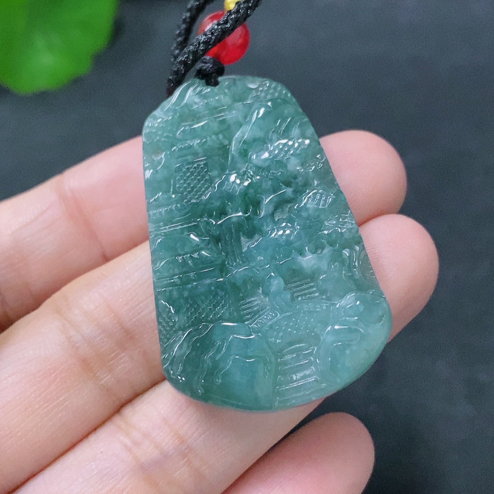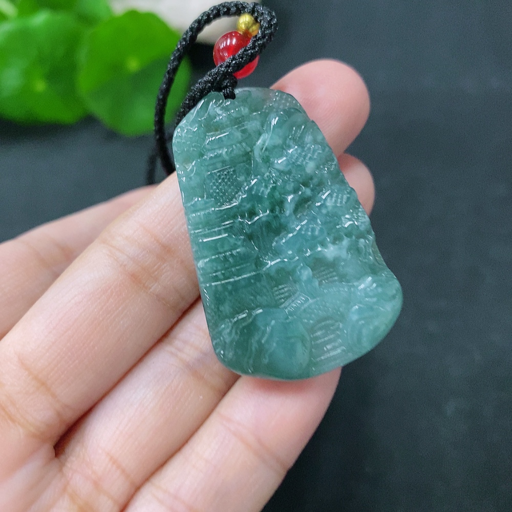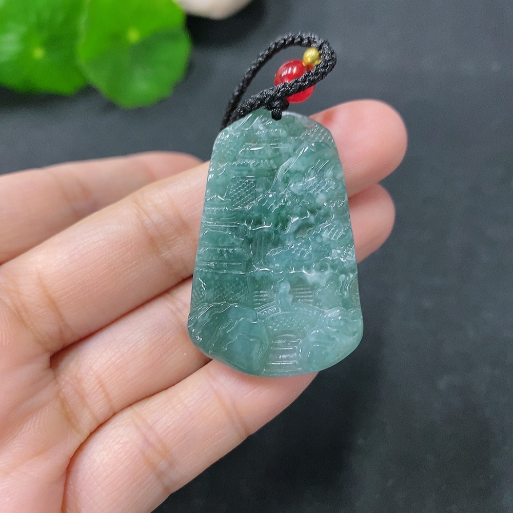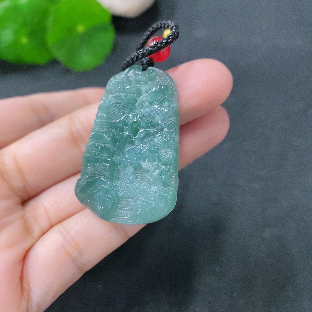 Jadeite Pendant Landscape Plaque Total Weight Including Rope: 13.82g
