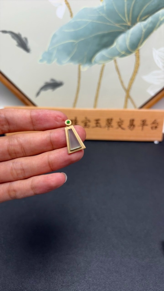 Jadeite Pendant with 18K Gold Setting Total Weight Approx. 2g