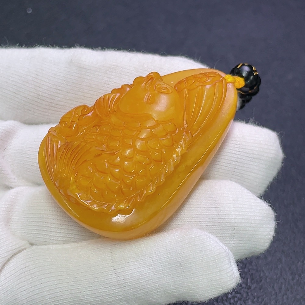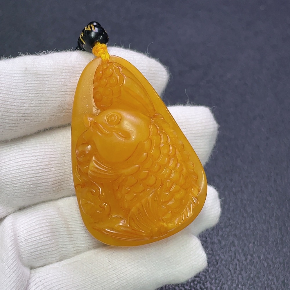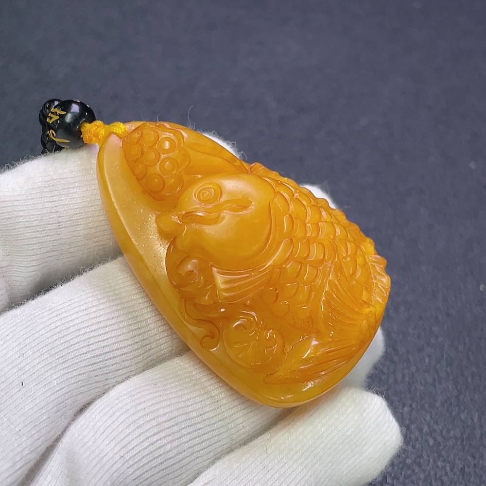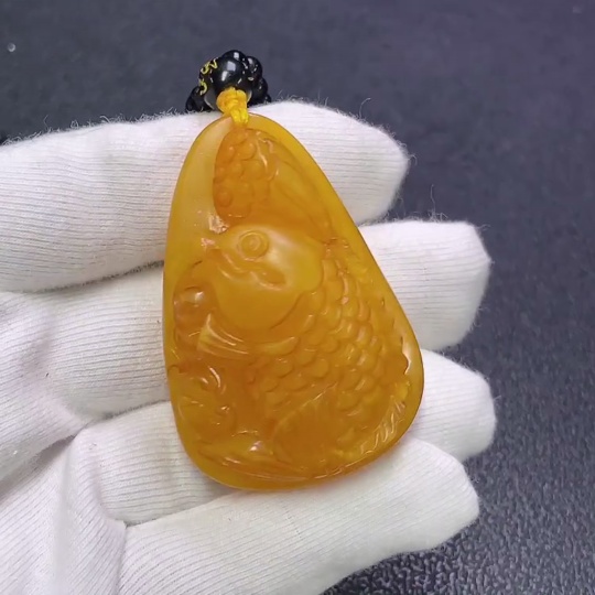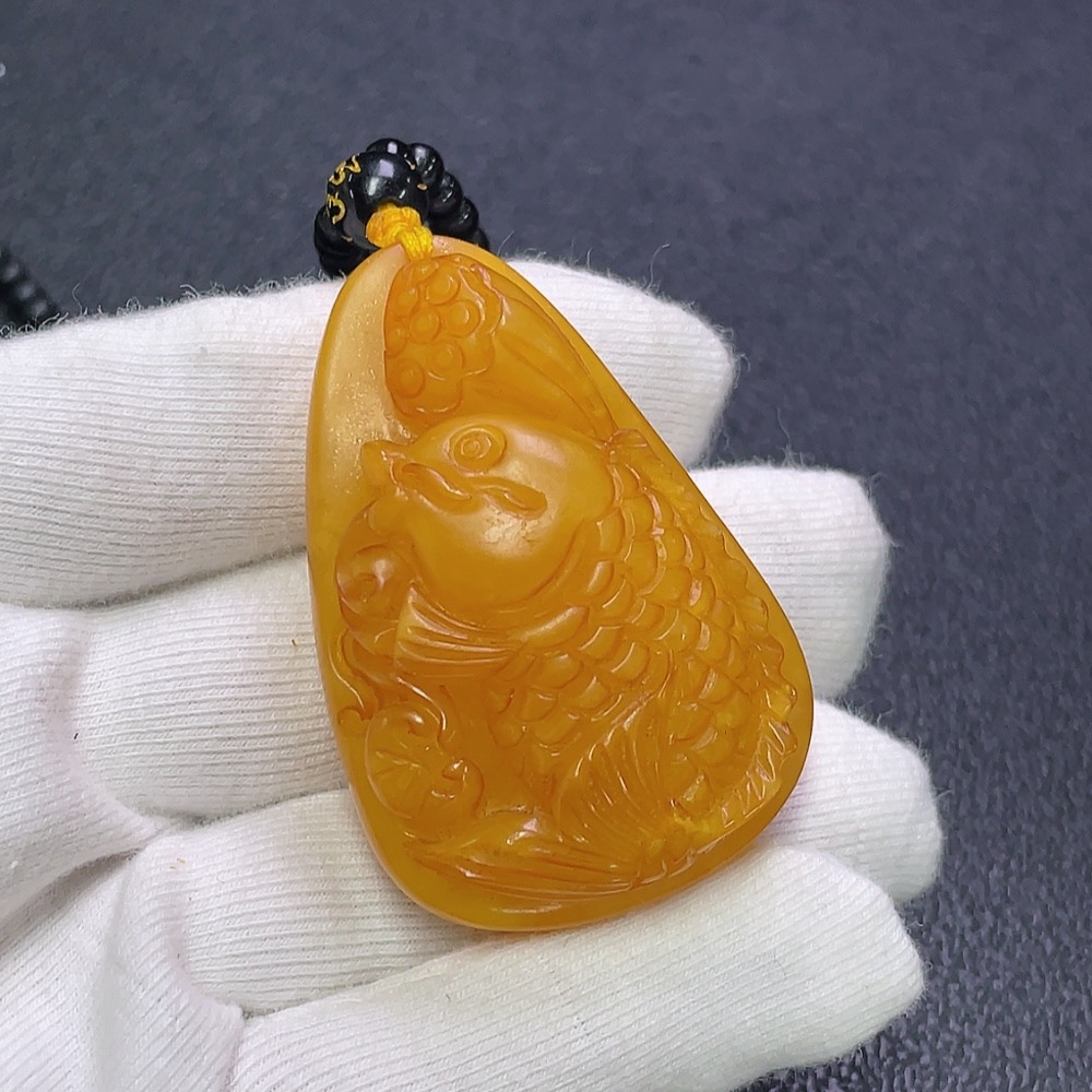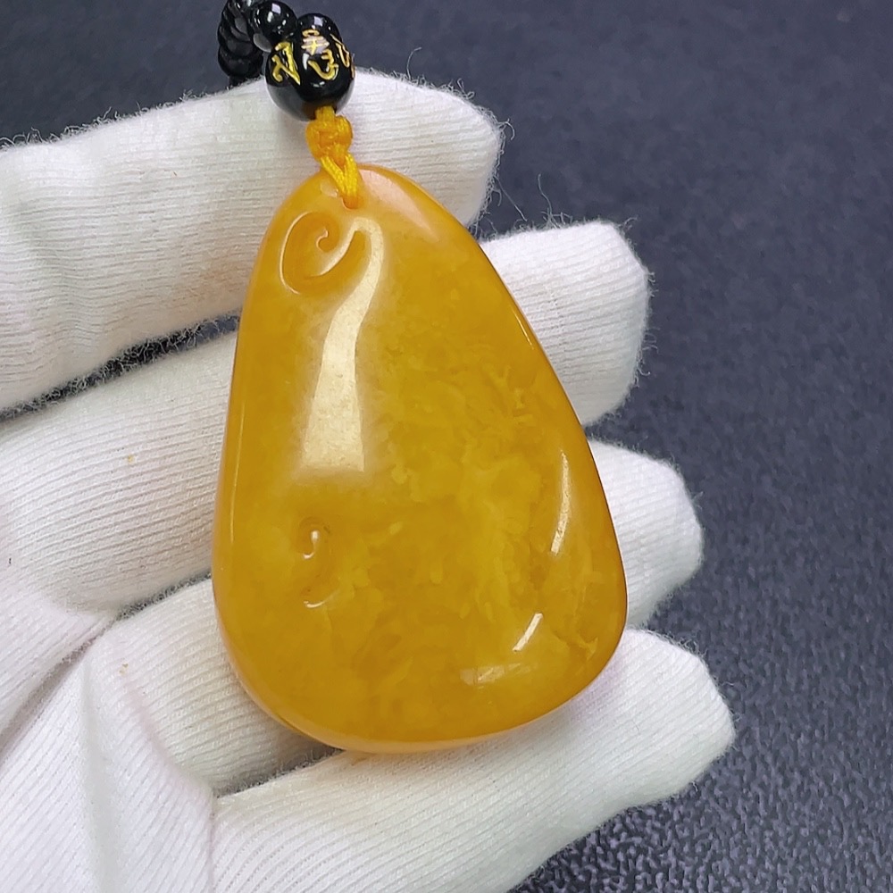 Amber Beeswax Pendant with Non-Natural Chain, Total Weight Approx. 34.46g Including Chain