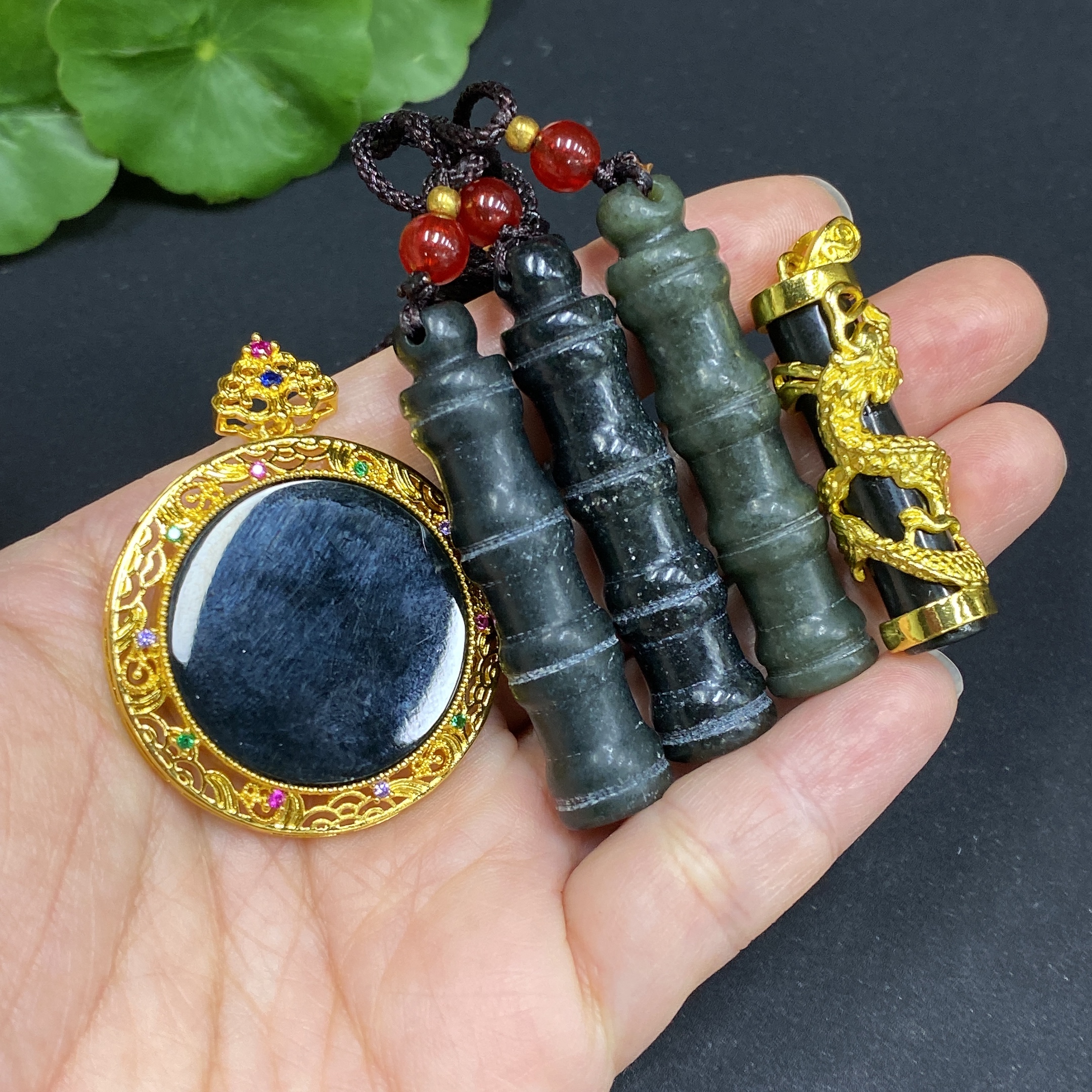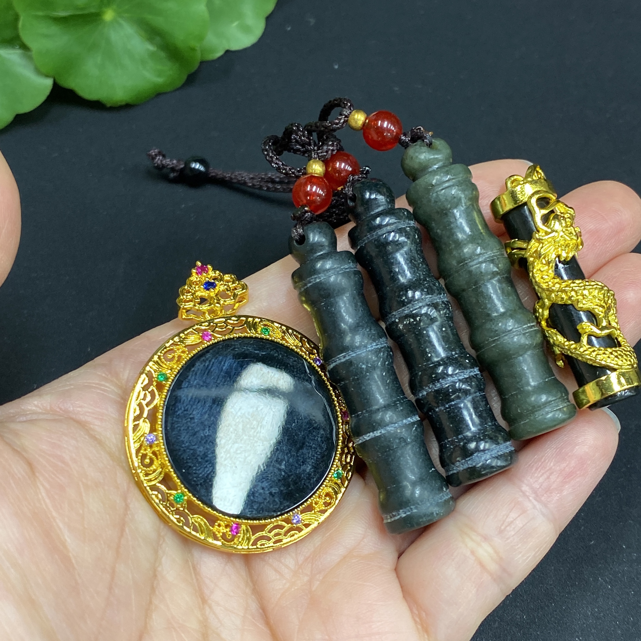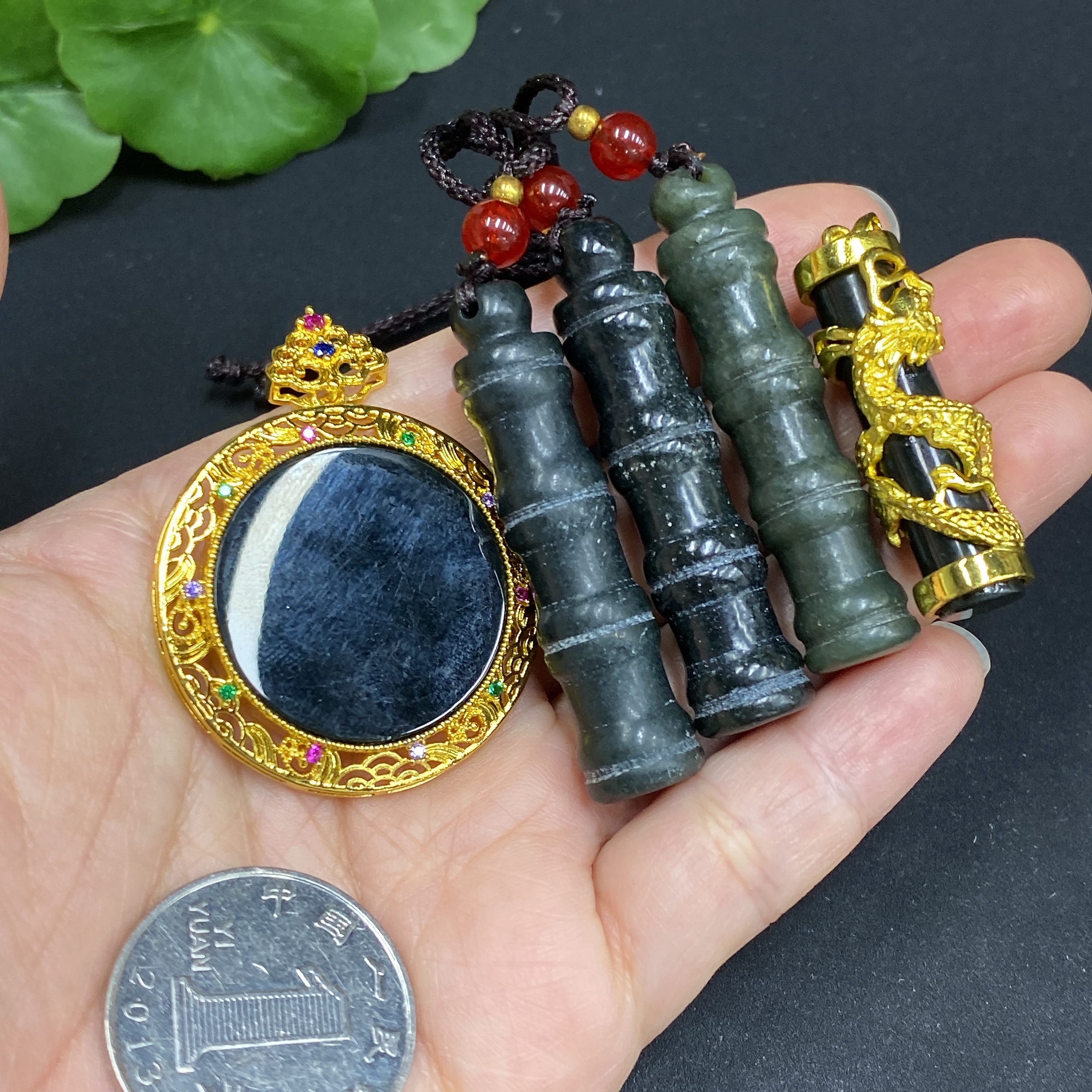 Hetian Jade Pendant + Inlaid Pendant Non-Gold Total Weight Approx. (Including Rope) 51.8g