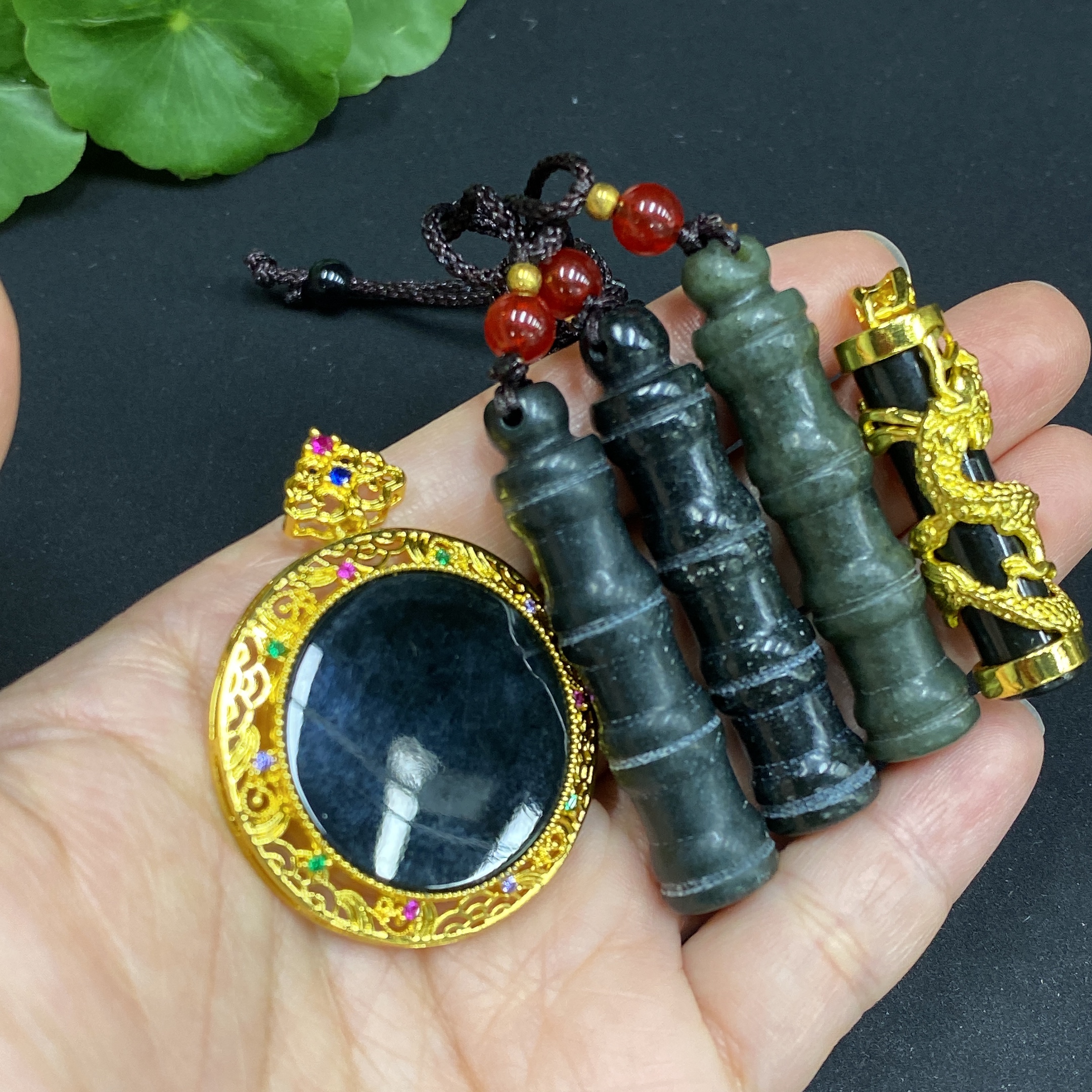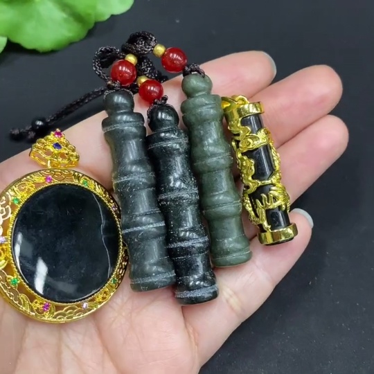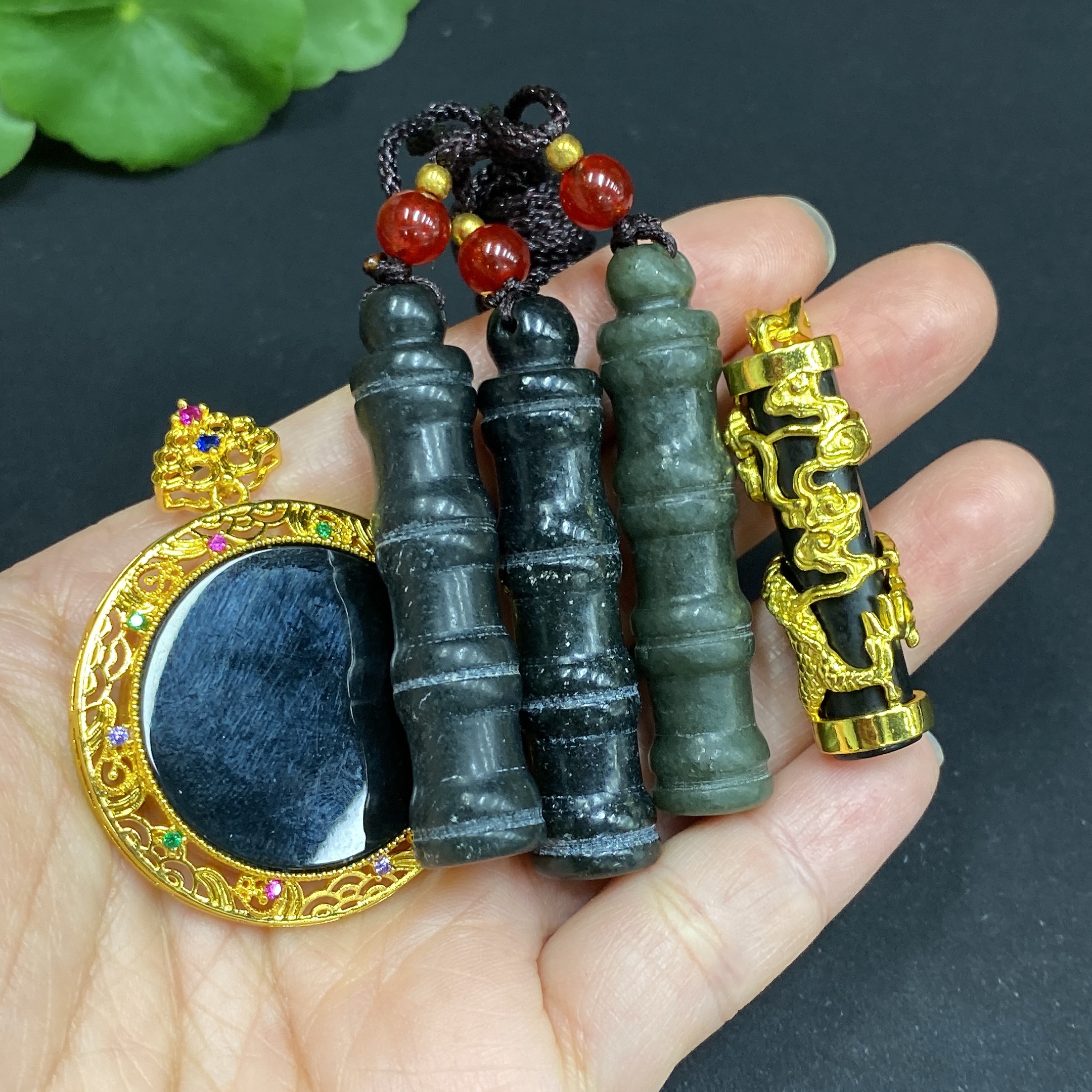 Hetian Jade Pendant + Inlaid Pendant Non-Gold Total Weight Approx. (Including Rope) 51.8g