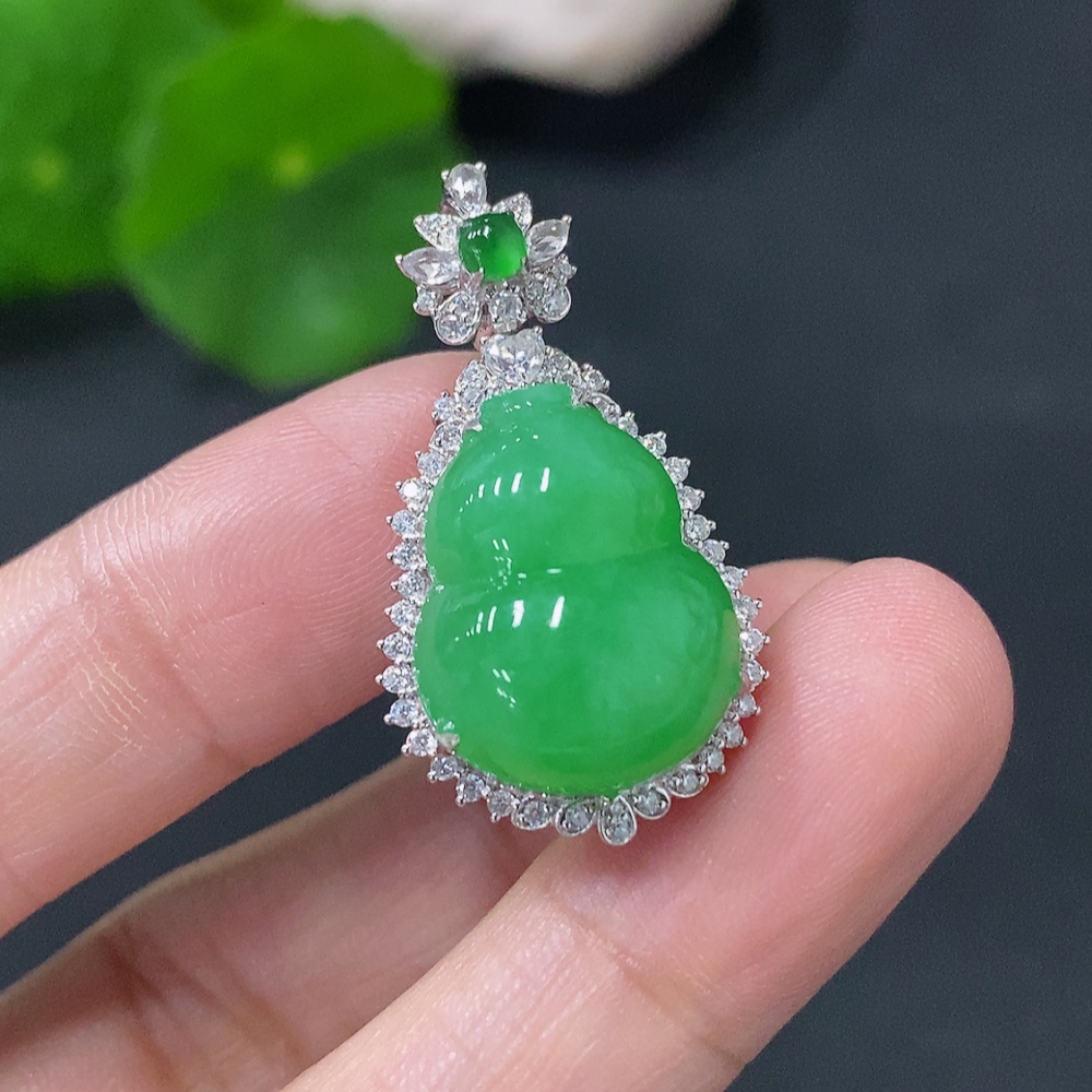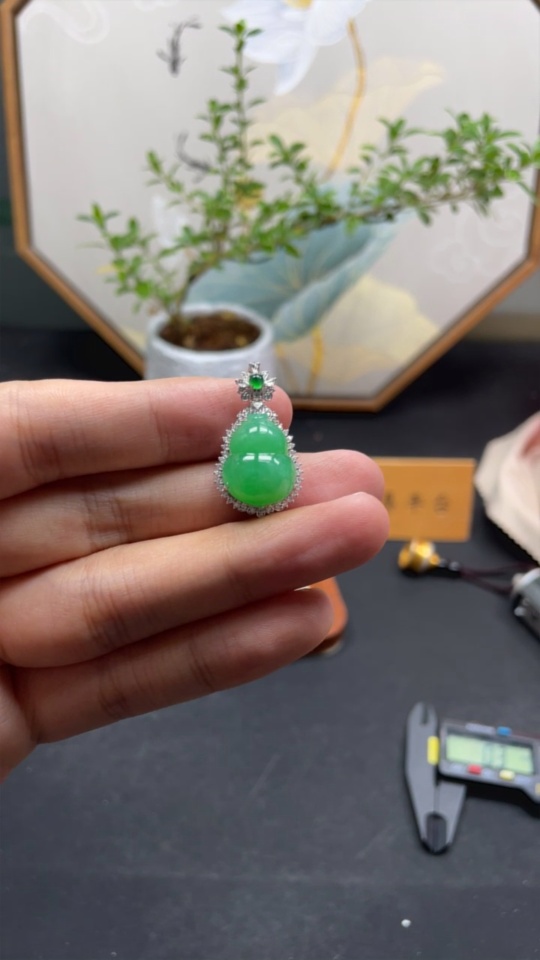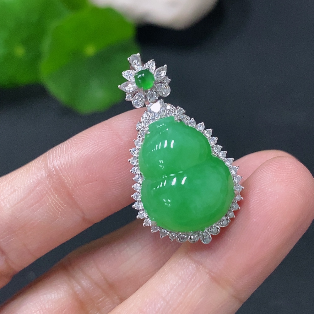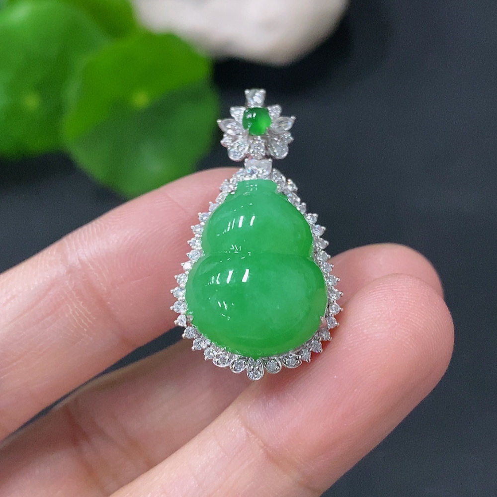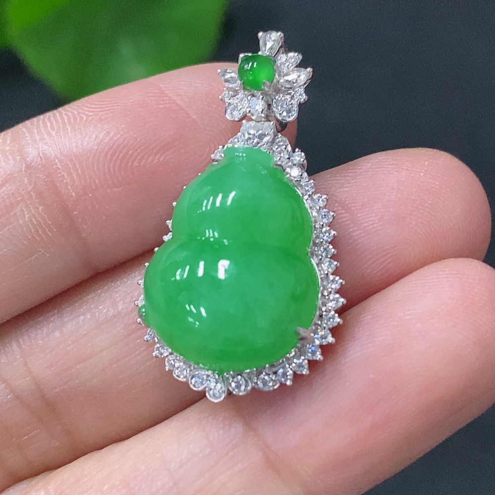 Jadeite Inlaid Gourd Pendant 18k Non-Diamond Total Weight Approx. 5.4g