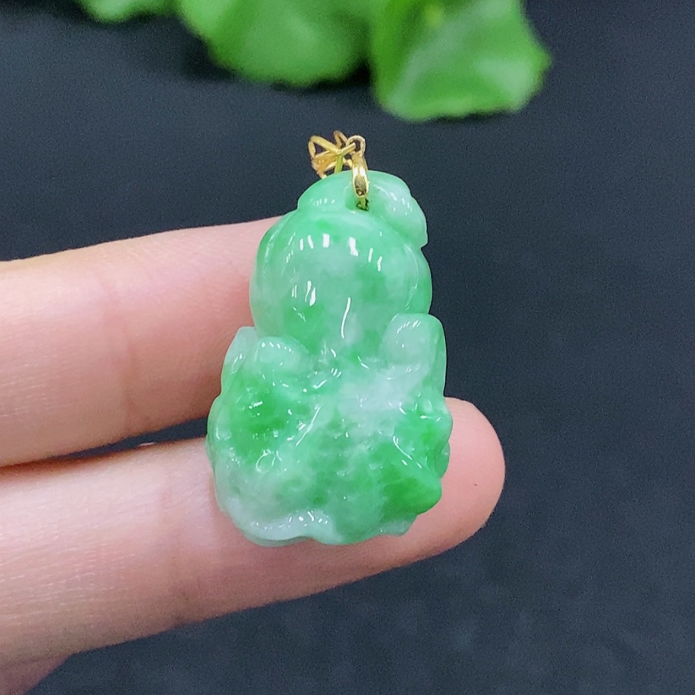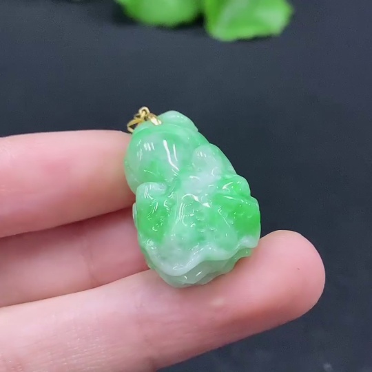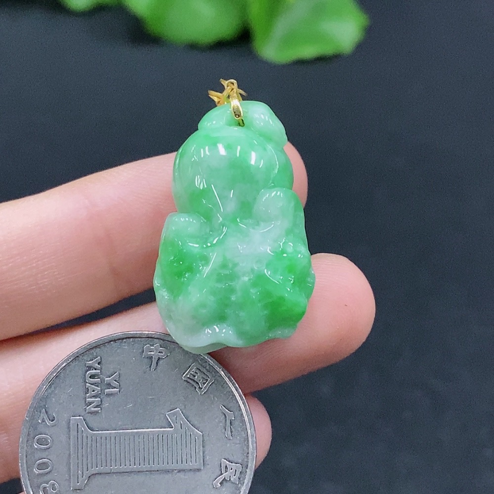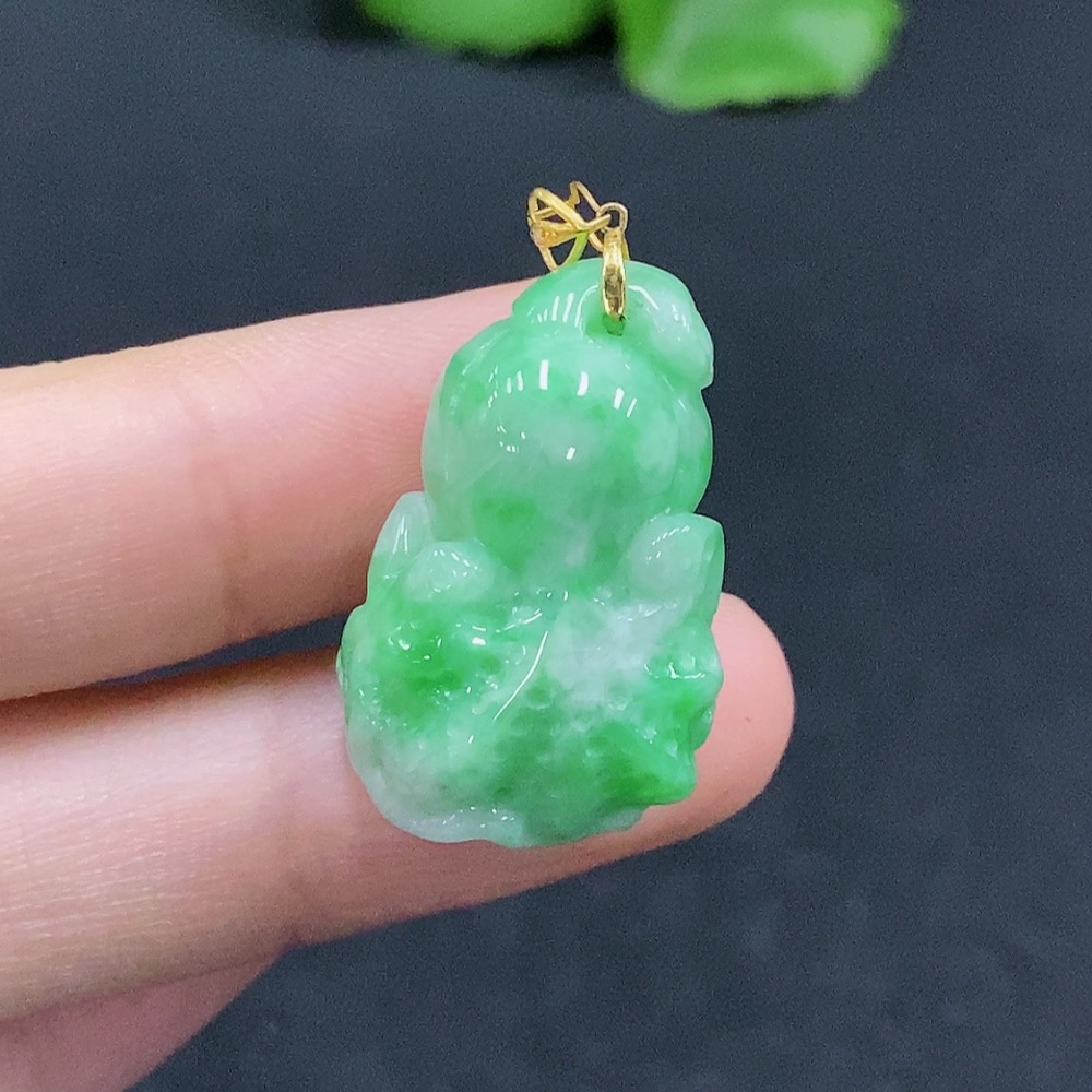 Jadeite Cabbage Pendant 18K Gold Total Weight Approx. 8.95g
