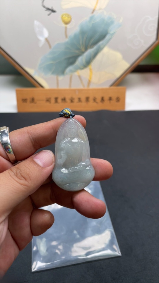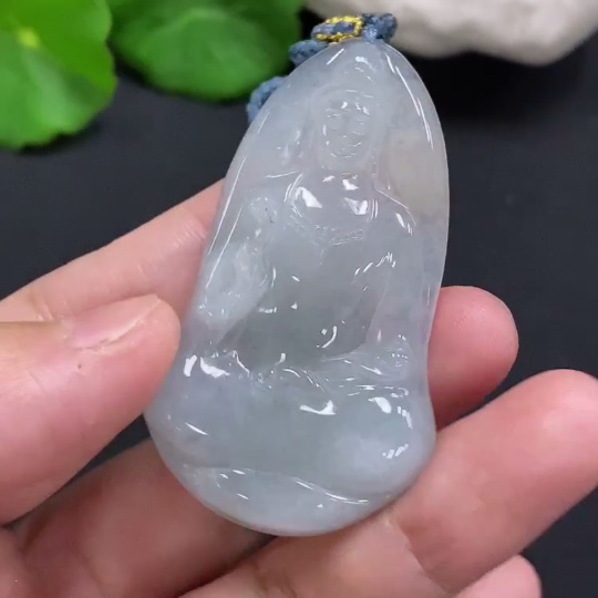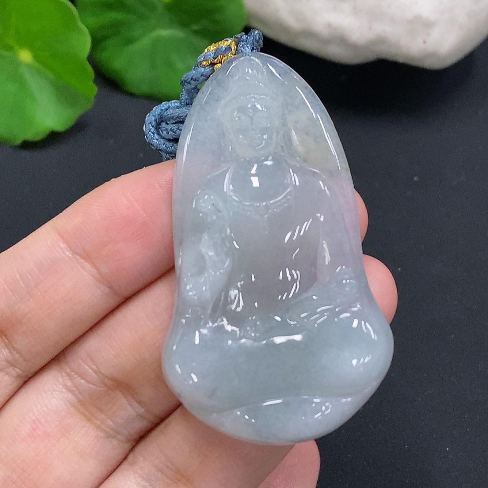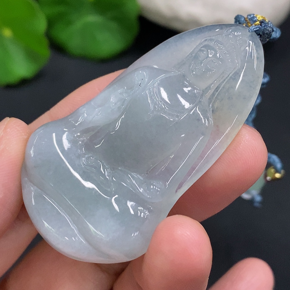 Jadeite Guanyin Pendant Total Weight Including Rope Approximately 21.3g