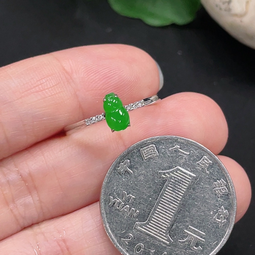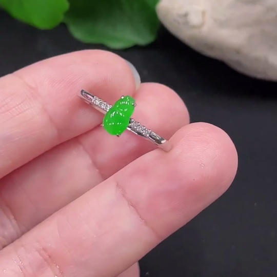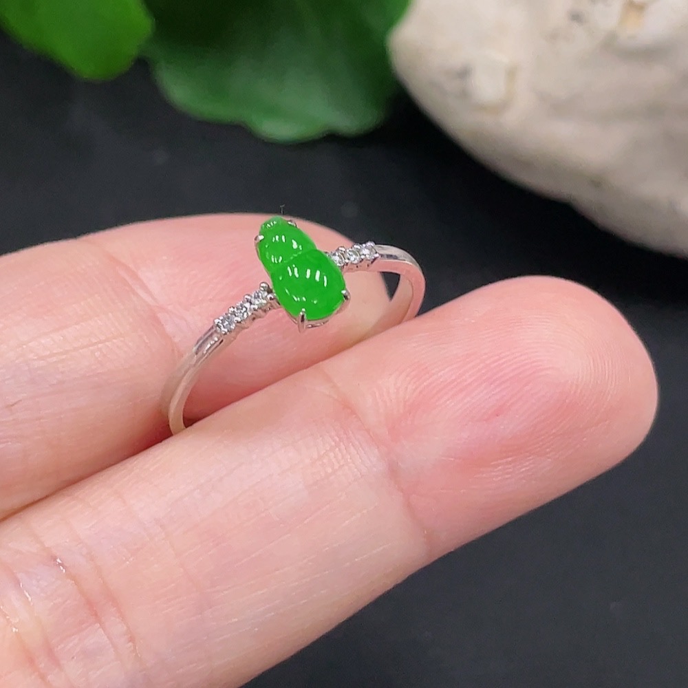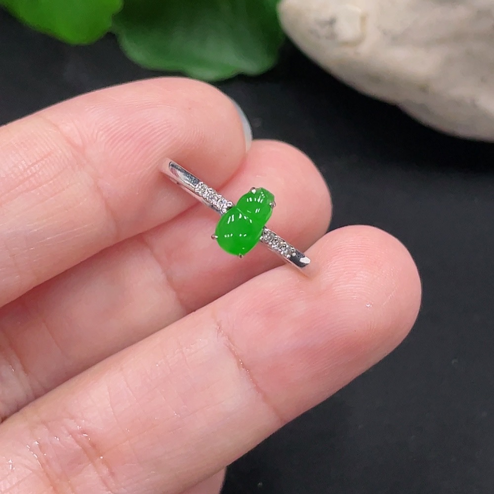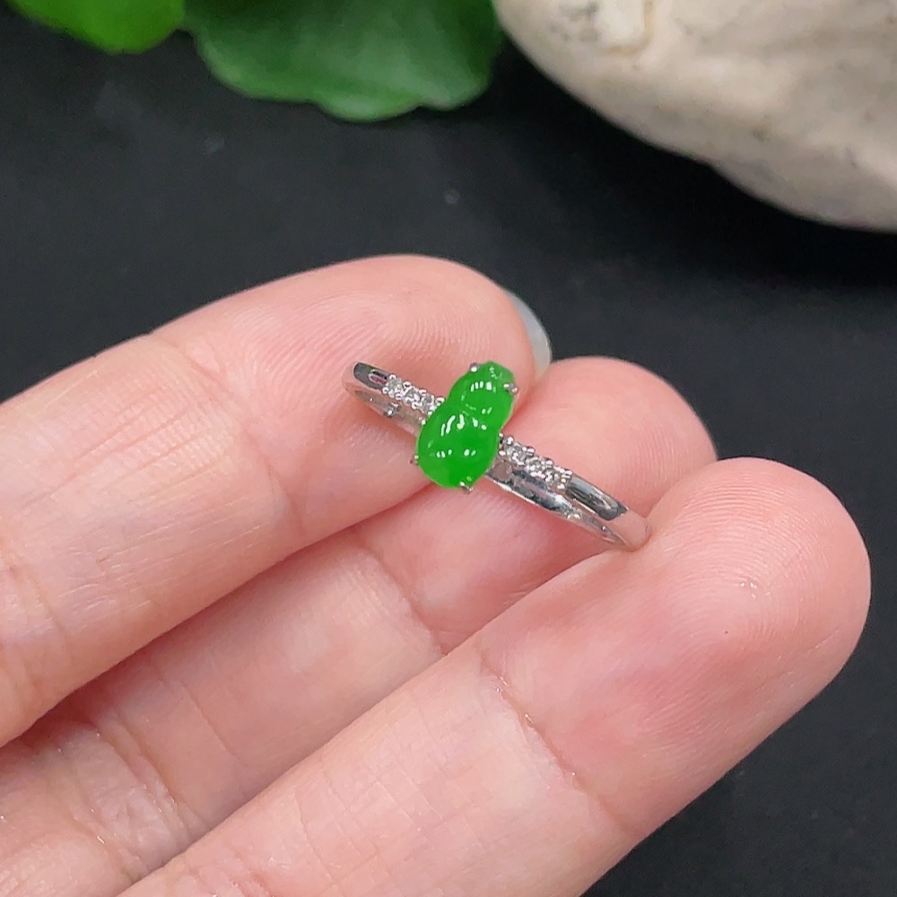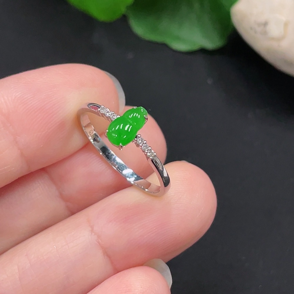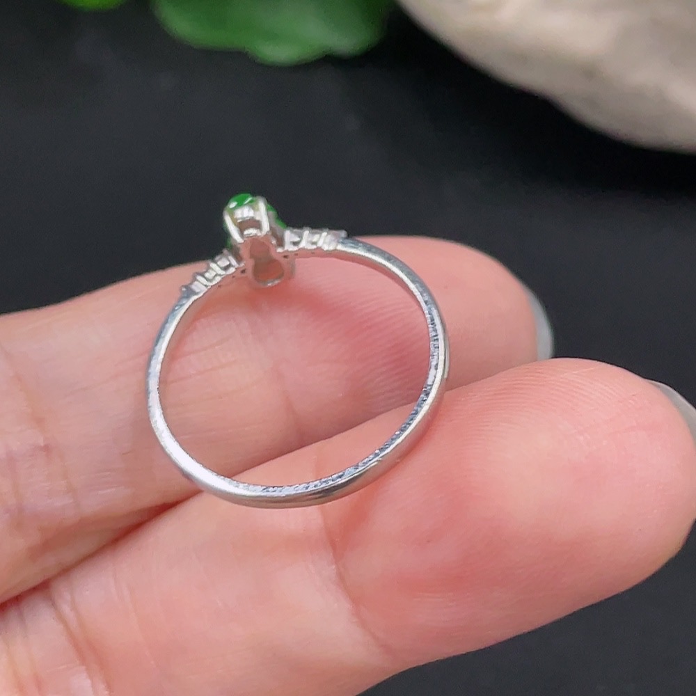 Jadeite Inlaid Ring Size 14 18K Gold Total Weight Approx. 1.5g (With Diamond Accents)