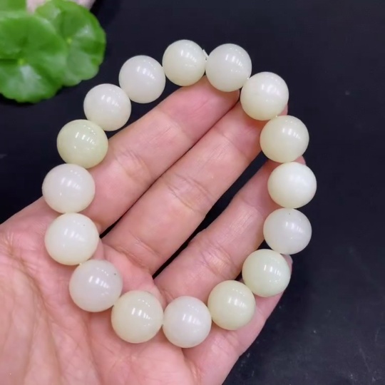 Hetian Jade Bracelet, Approx. 11.8 mm Beads, Total Weight Approx. 41.9g