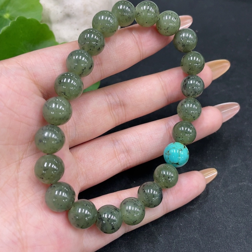 Hetian Jade Bracelet, Approx. 9.7mm, Non-Hetian Jade Beads, Total Weight Approx. 33.1g