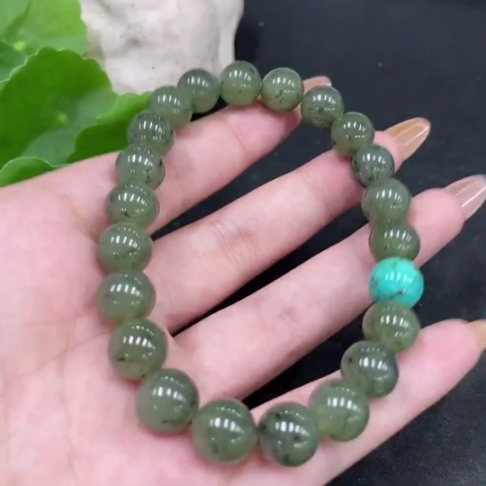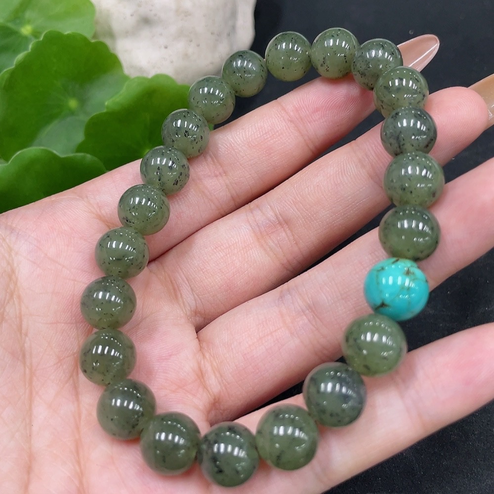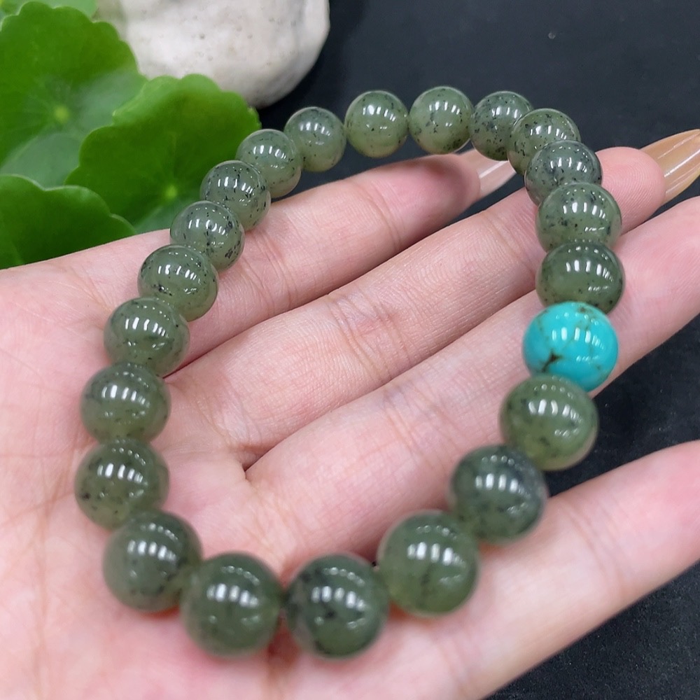 Hetian Jade Bracelet, Approx. 9.7mm, Non-Hetian Jade Beads, Total Weight Approx. 33.1g