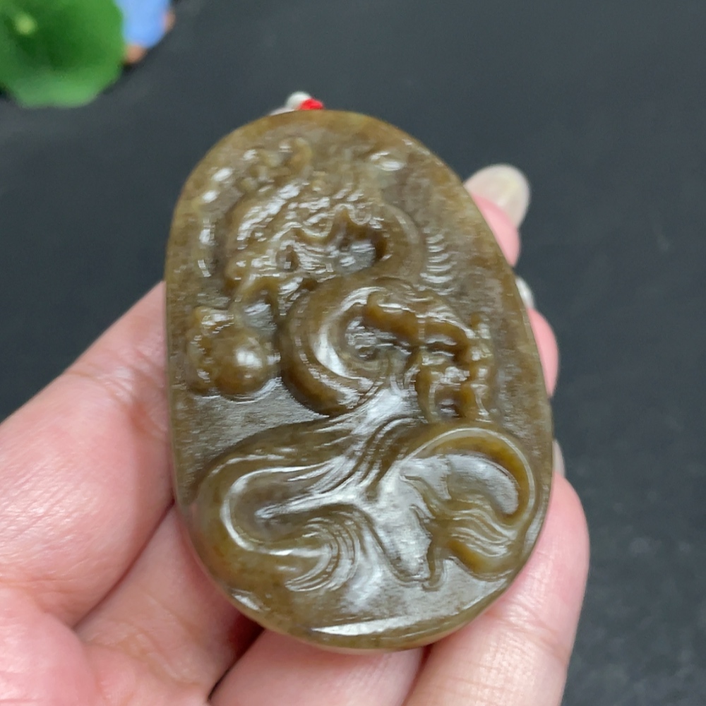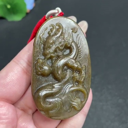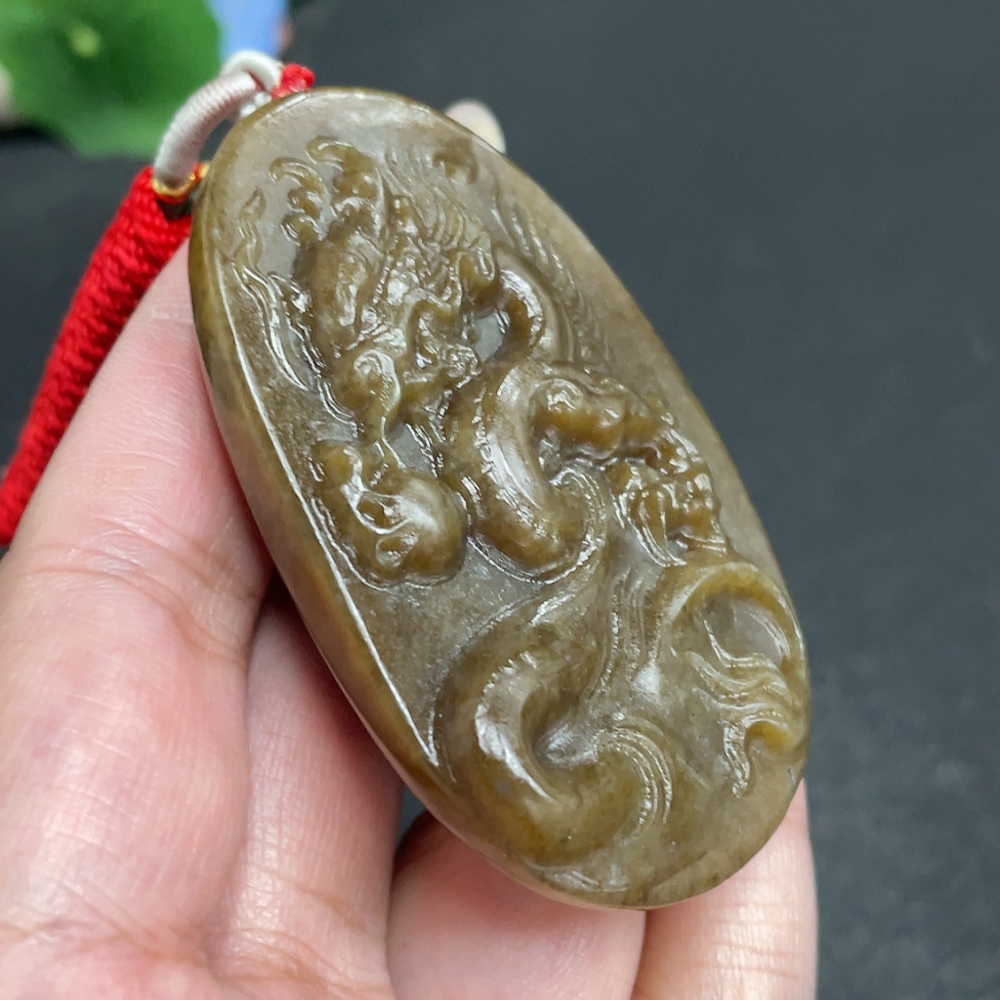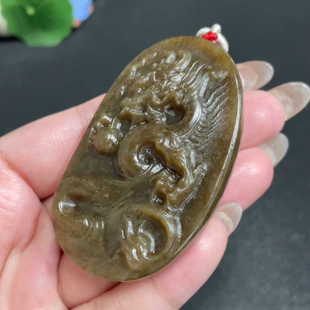 Hetian Jade Pendant Dragon Plaque Total Weight [with rope] 73.1g