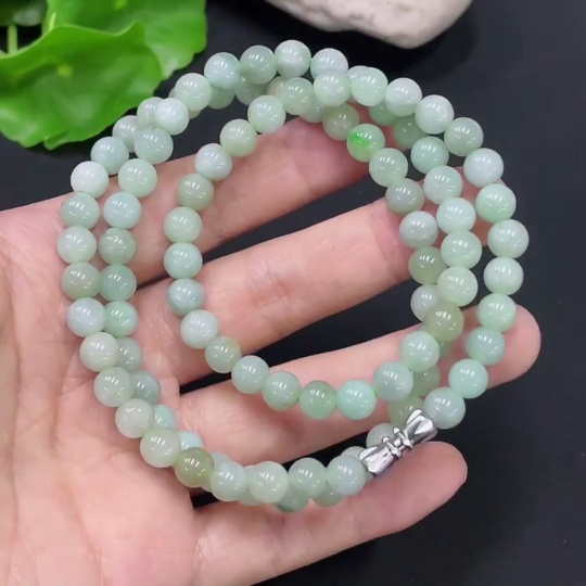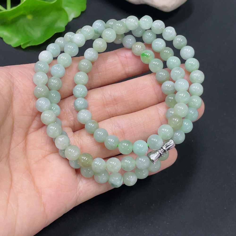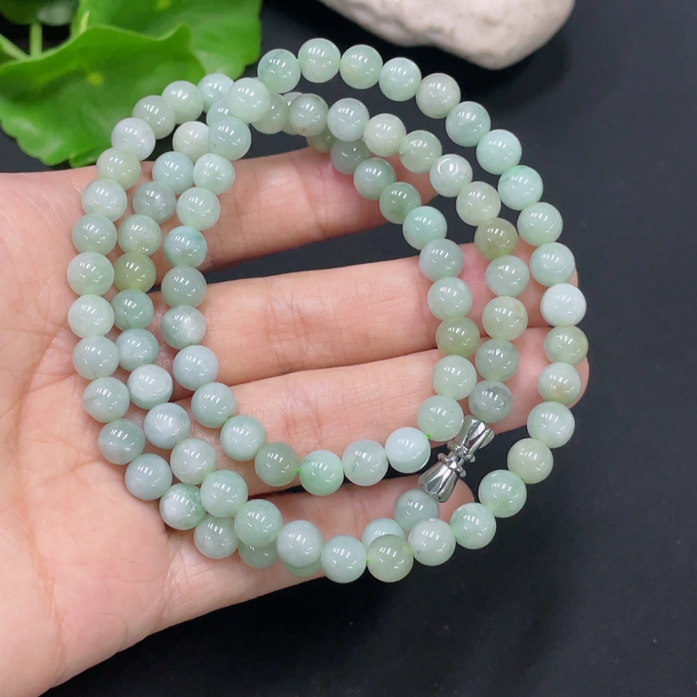 Jadeite Bead Necklace Non-Gold Total Weight Approx. 34.4g Size About 6mm