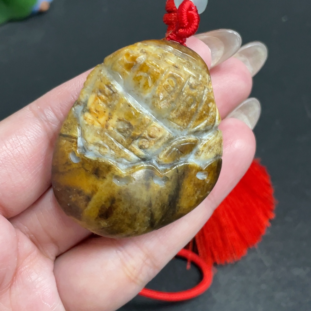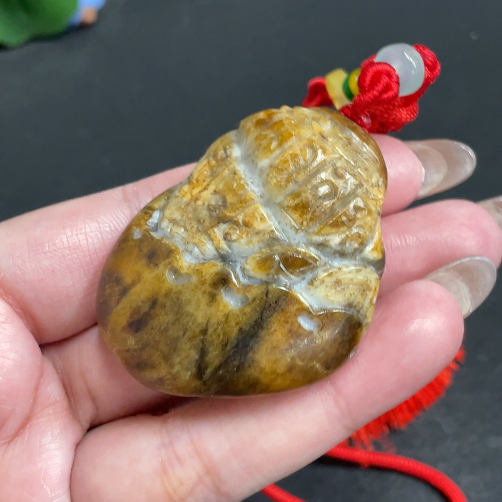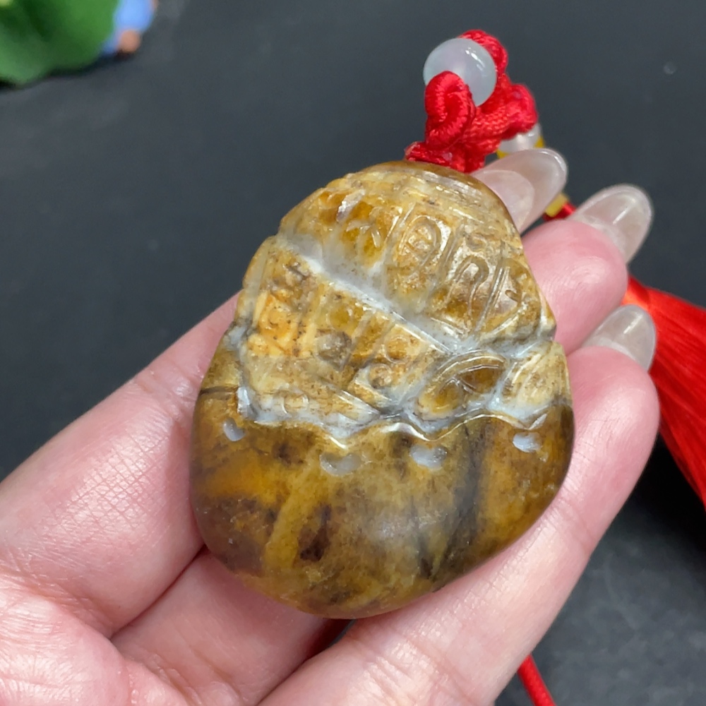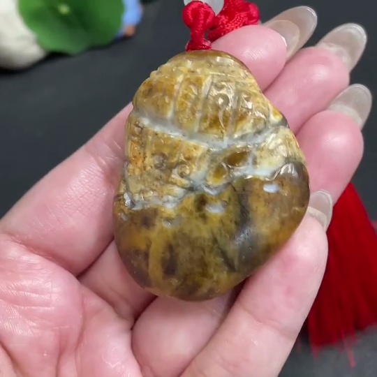 Hetian Jade Handheld Carving (Antique Style, Contains Other Mineral Components, Undetermined Skin Color Origin, Total Weight Approx. 61.7g [Including Rope])