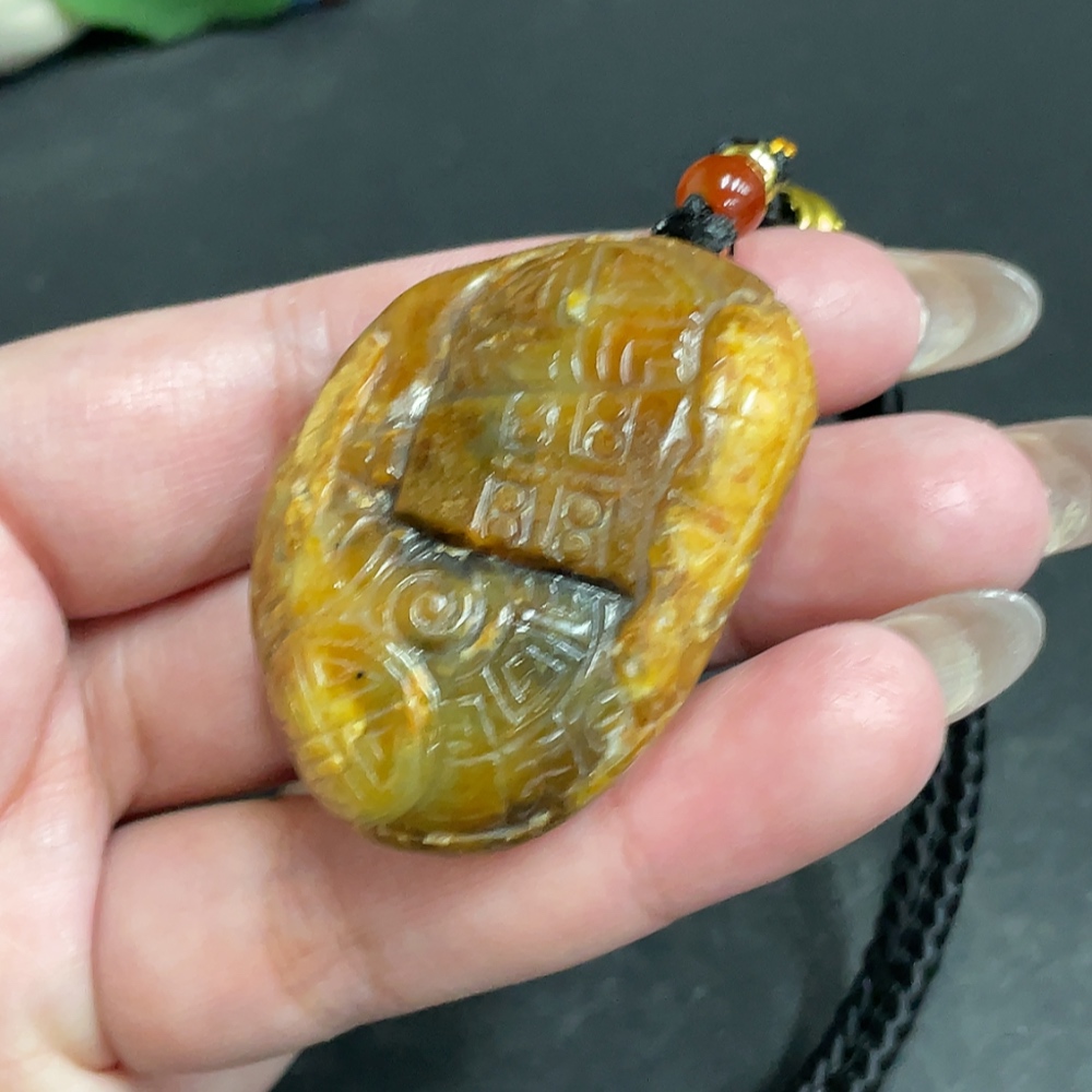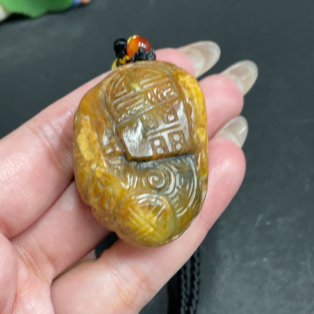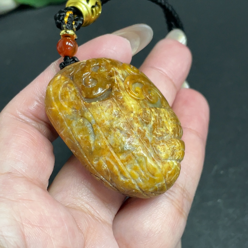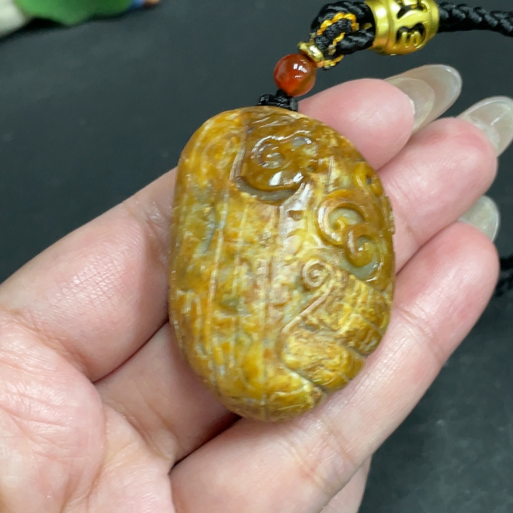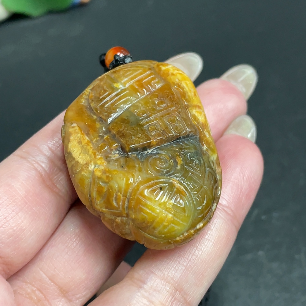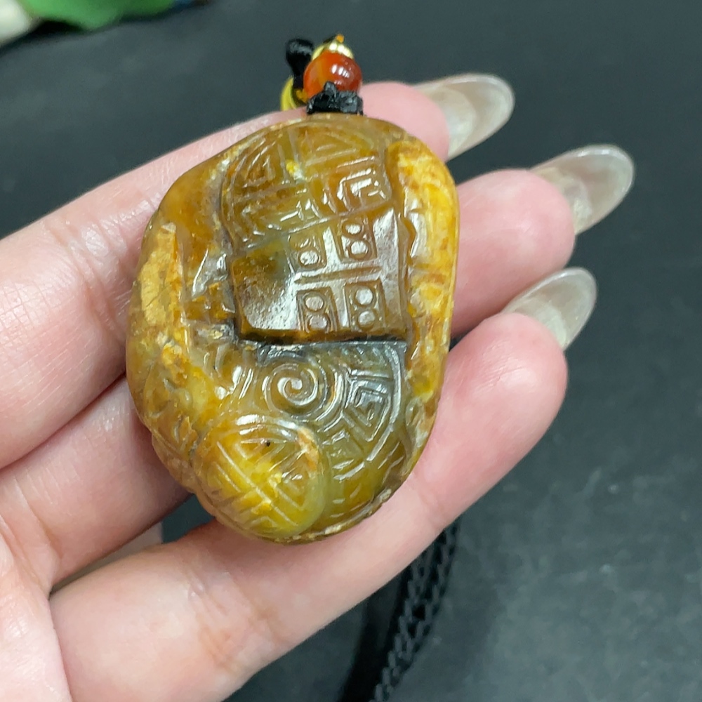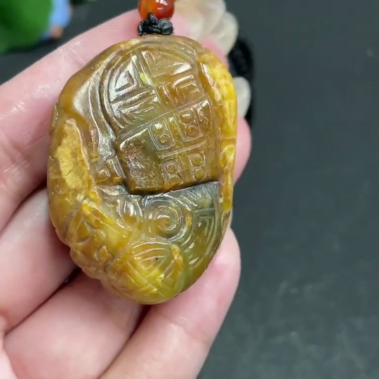 Hetian Jade Handheld Carving Antique-style Piece with Other Mineral Components Undetermined Skin Color Origin Total Weight Approx. [Including String] 50.9g