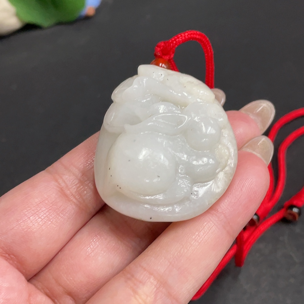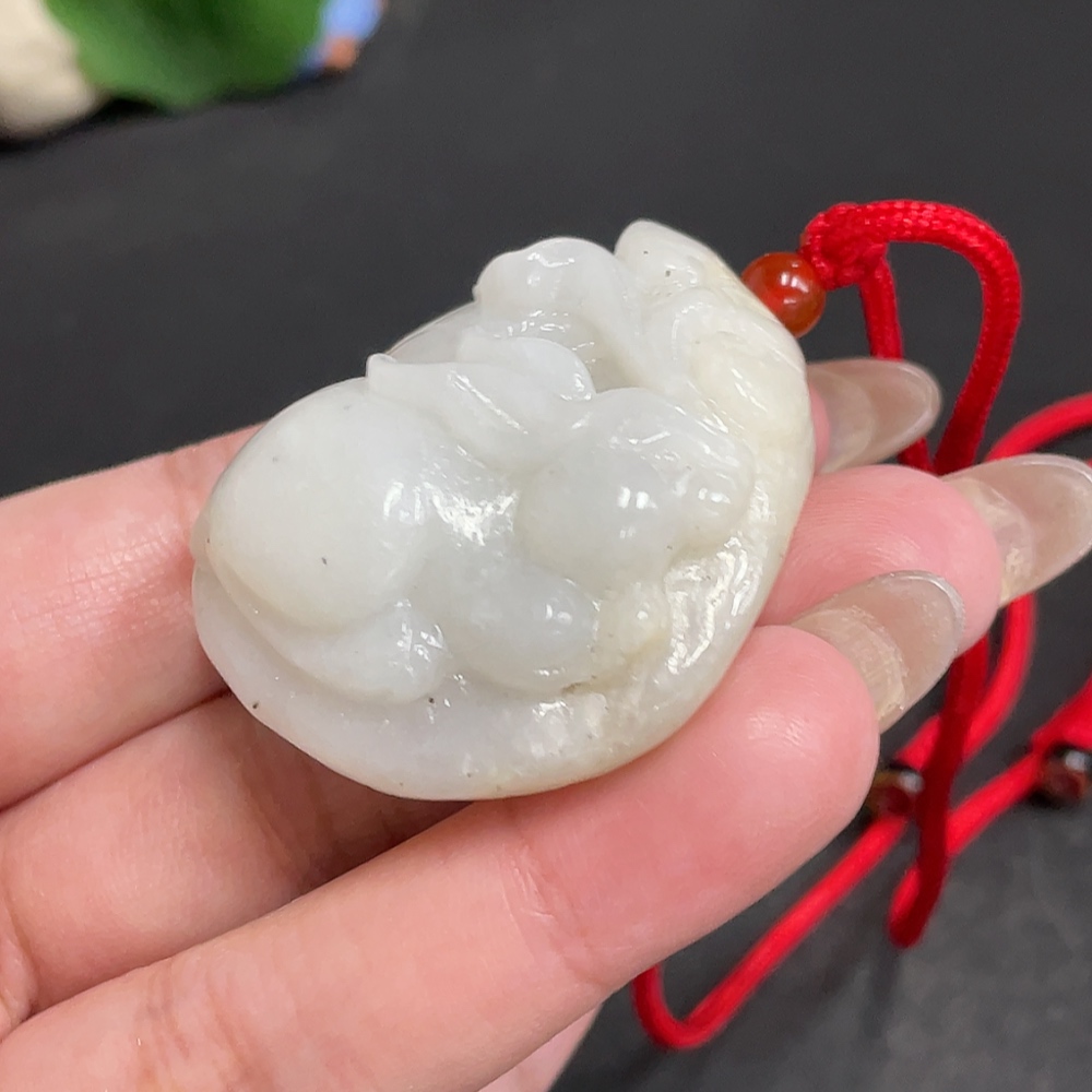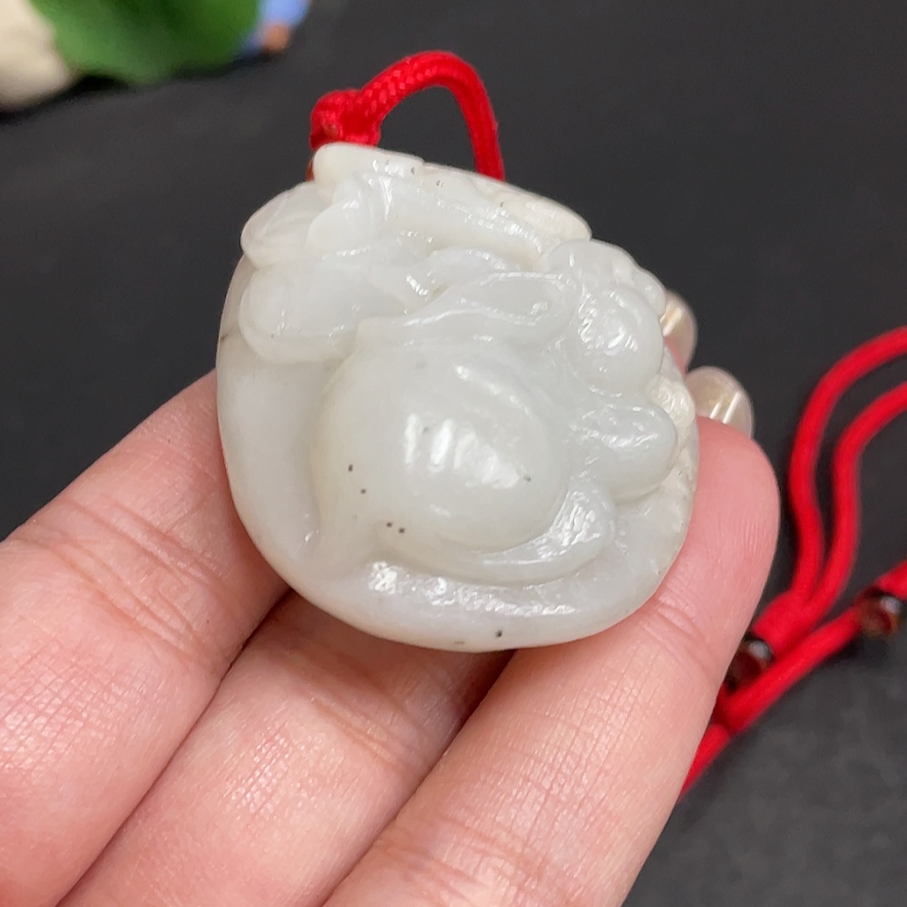 Hetian Jade Pendant Rabbit Containing Other Mineral Components Undetermined Skin Color Origin Total Weight Approximately [Including Rope] 47.5g