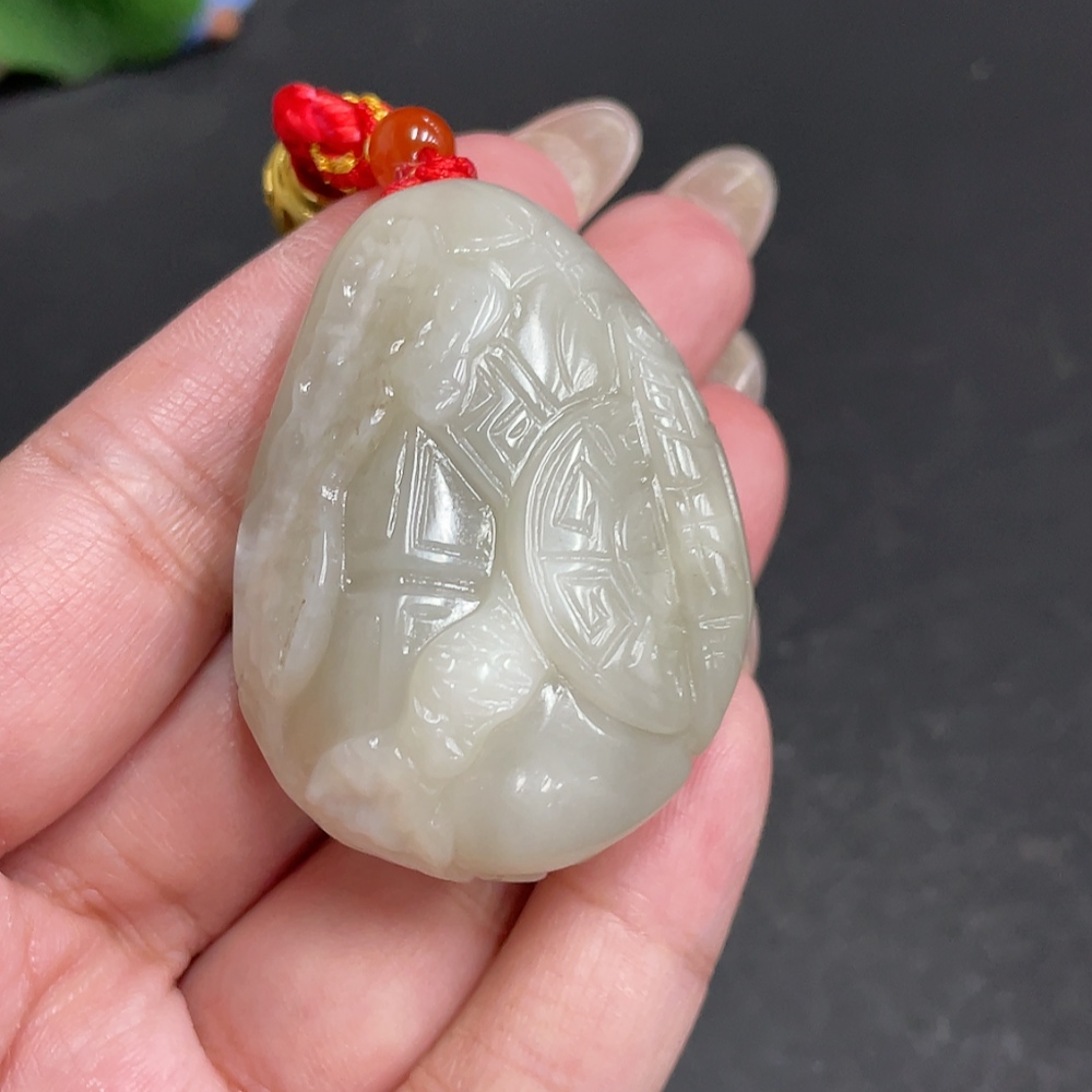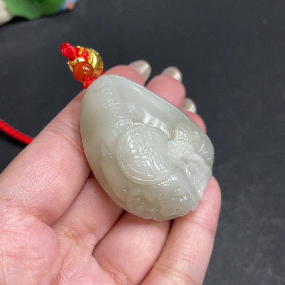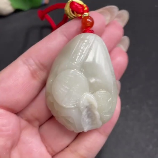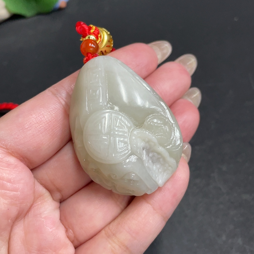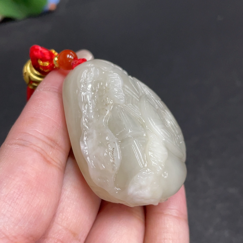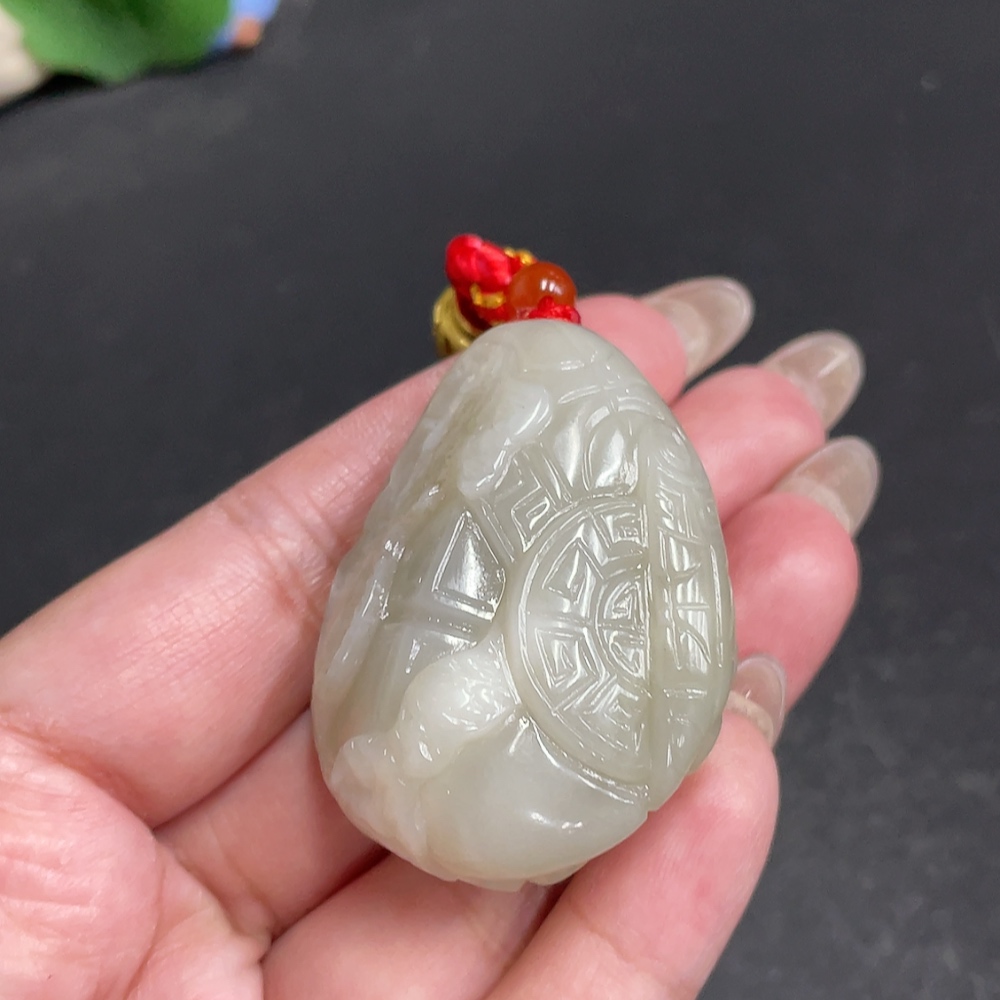 Hetian Jade Handheld Carving Antique Style Piece Total Weight Approx. [with rope] 60.1g