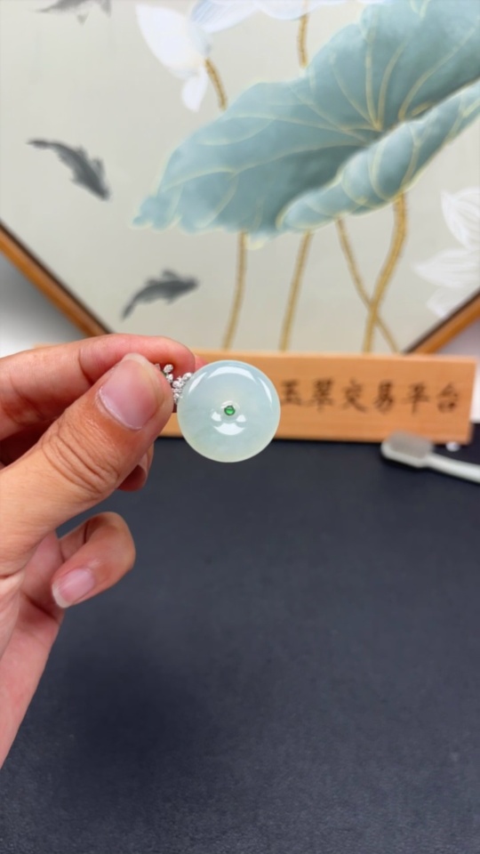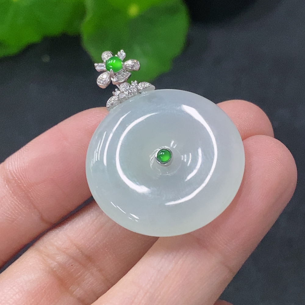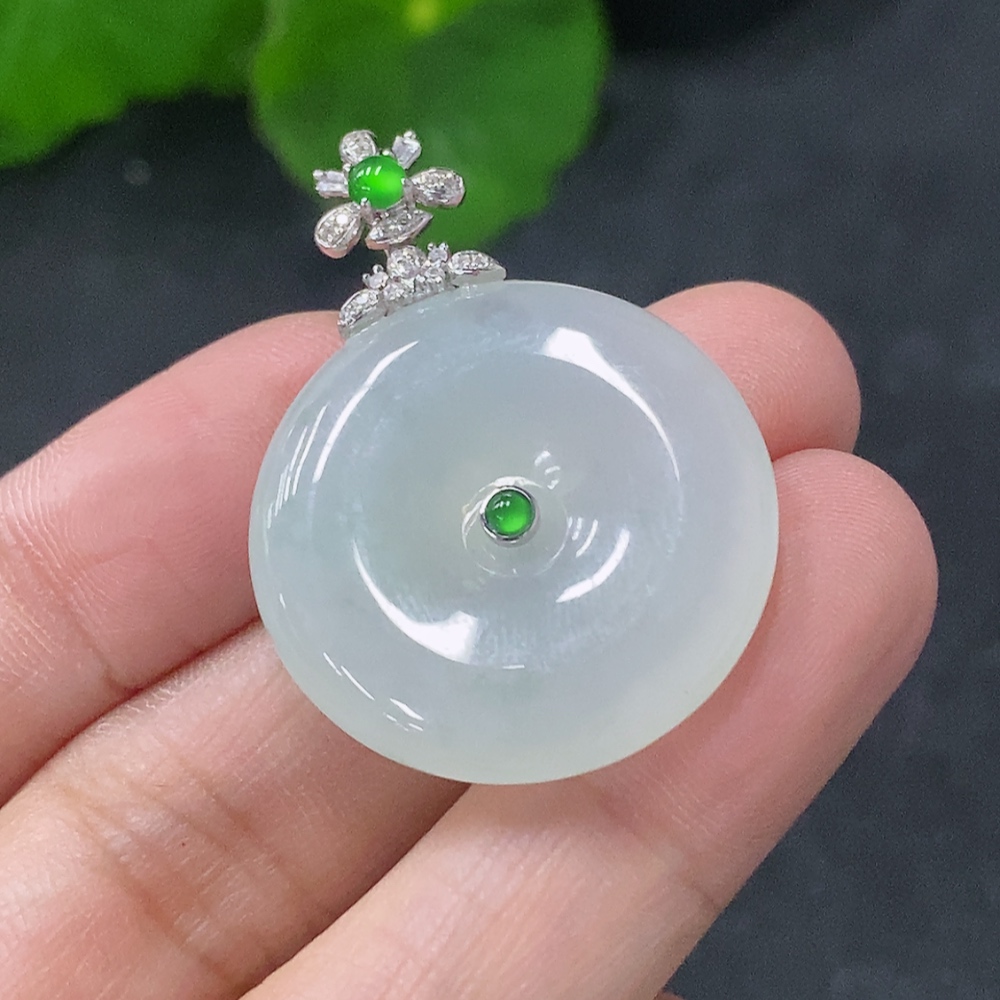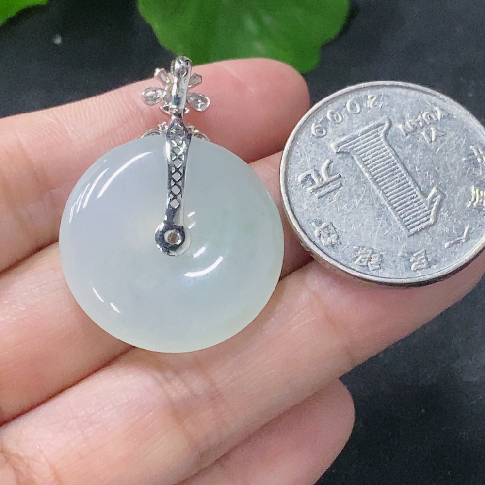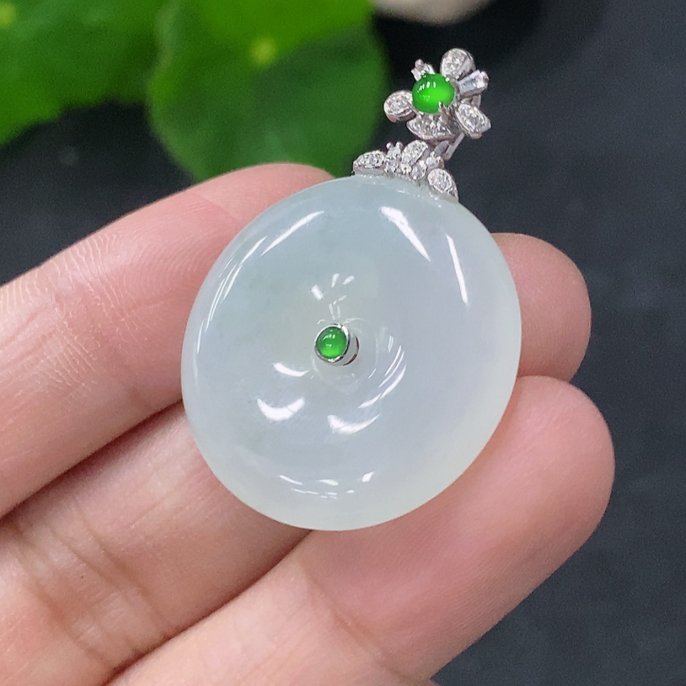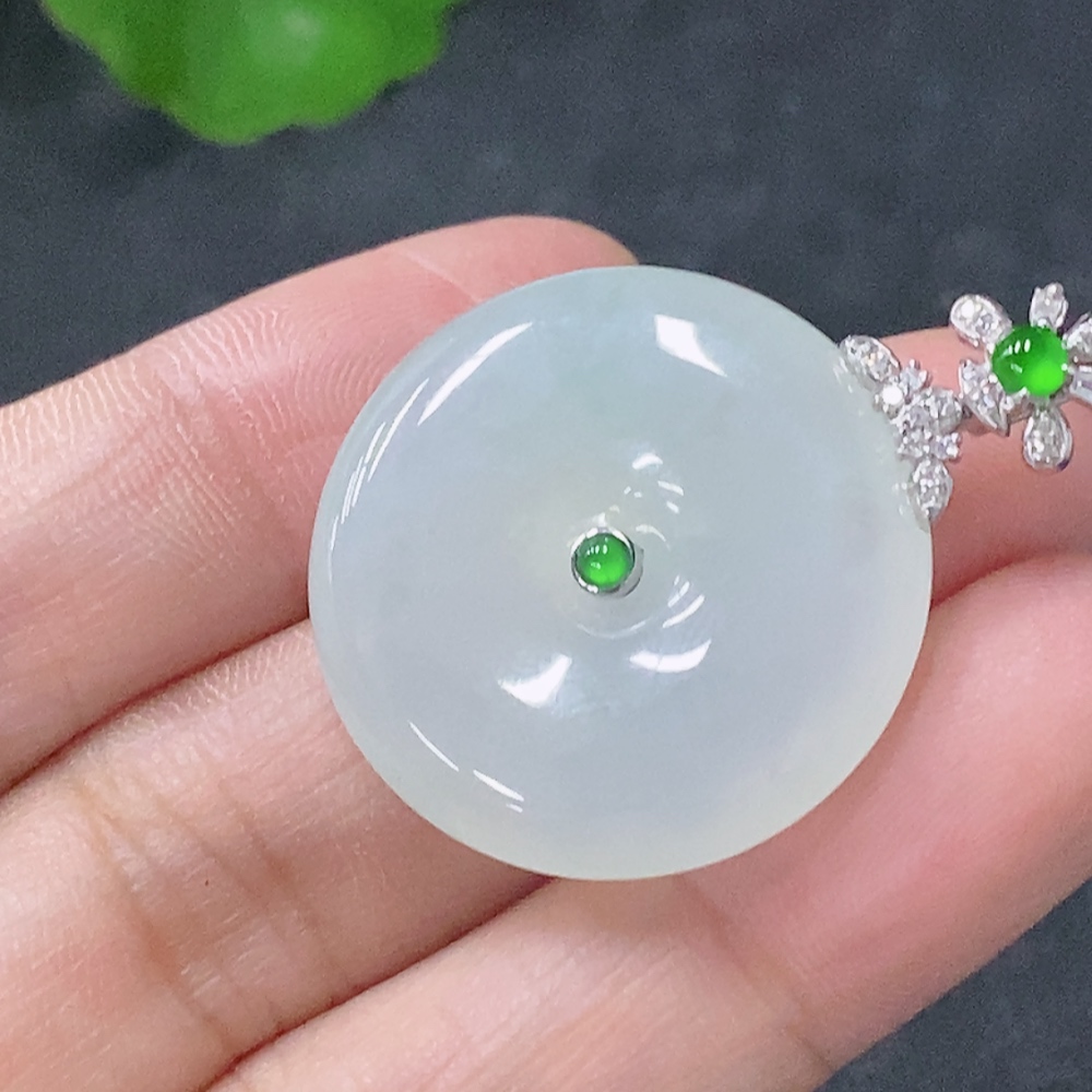 Jadeite Pendant Peace Knot with 18k Gold and Diamond Accents, Total Weight Approx. 7.94g