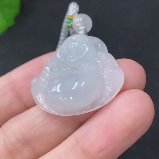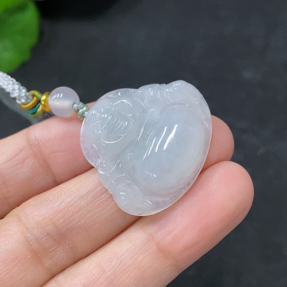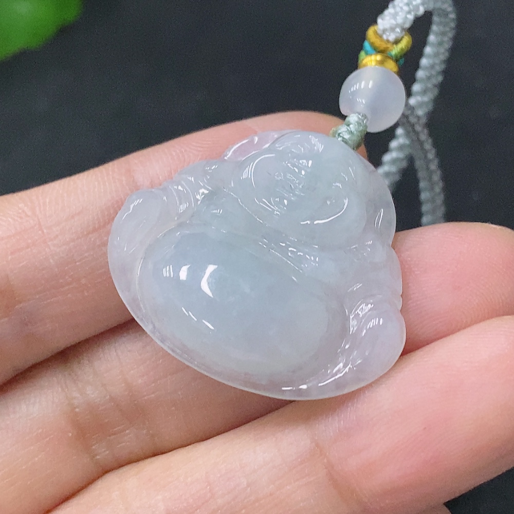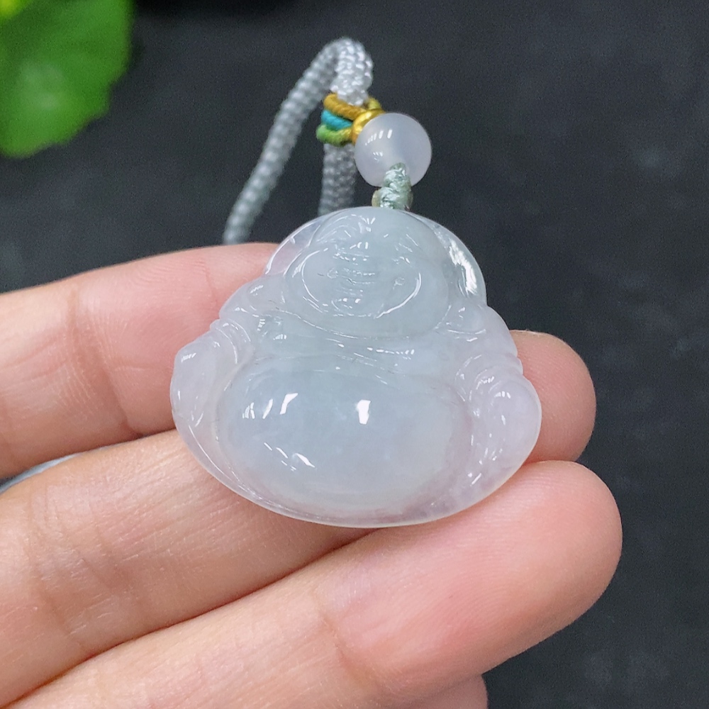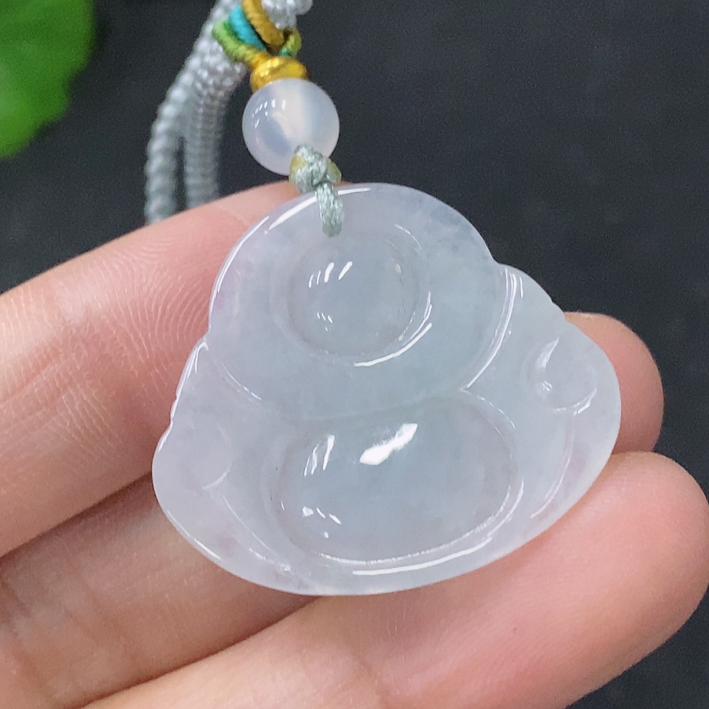 Jadeite Pendant Buddha, Total Weight Approx. 7.8g Including Cord, Beads Non-A