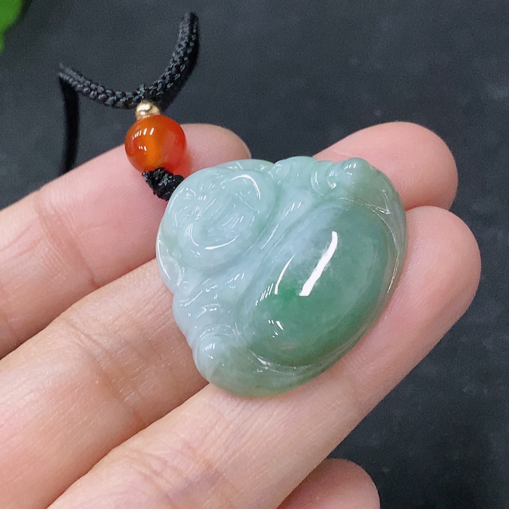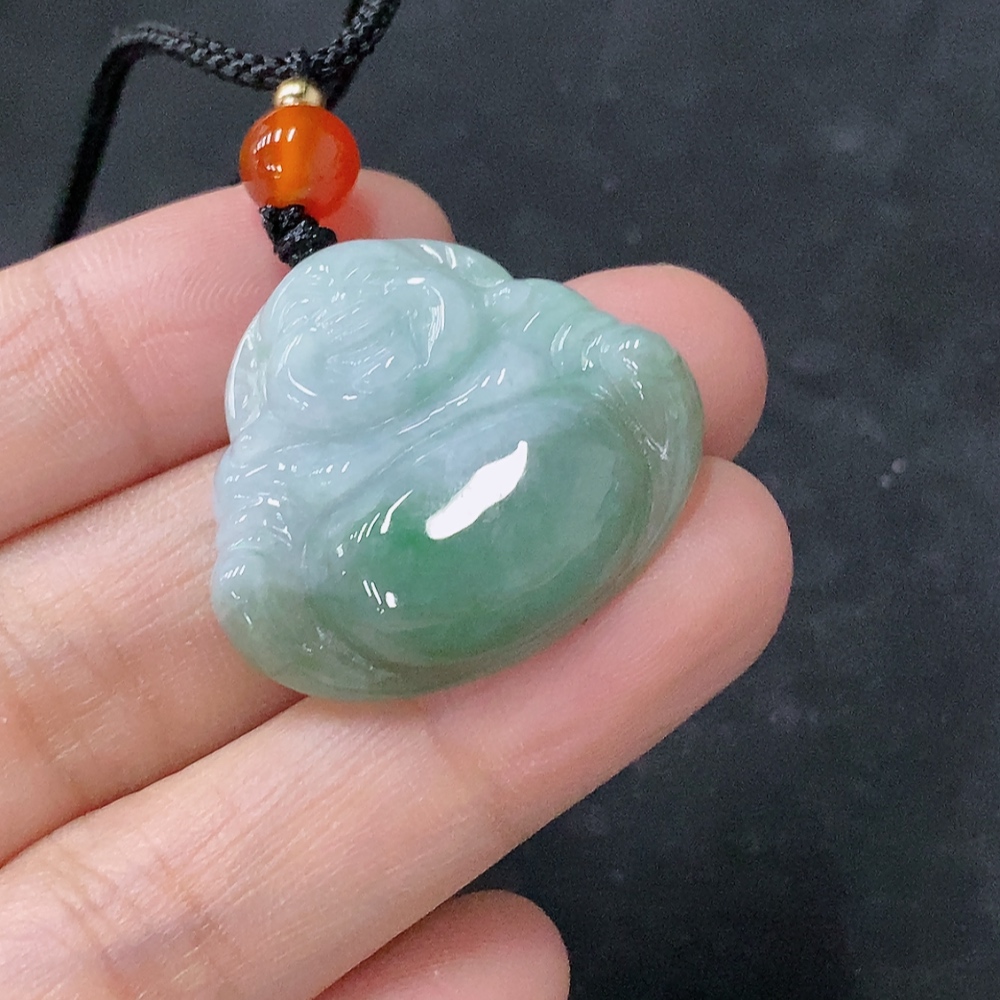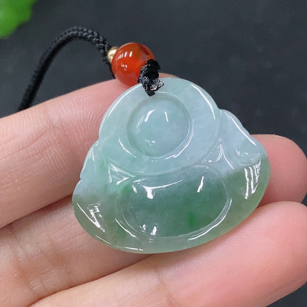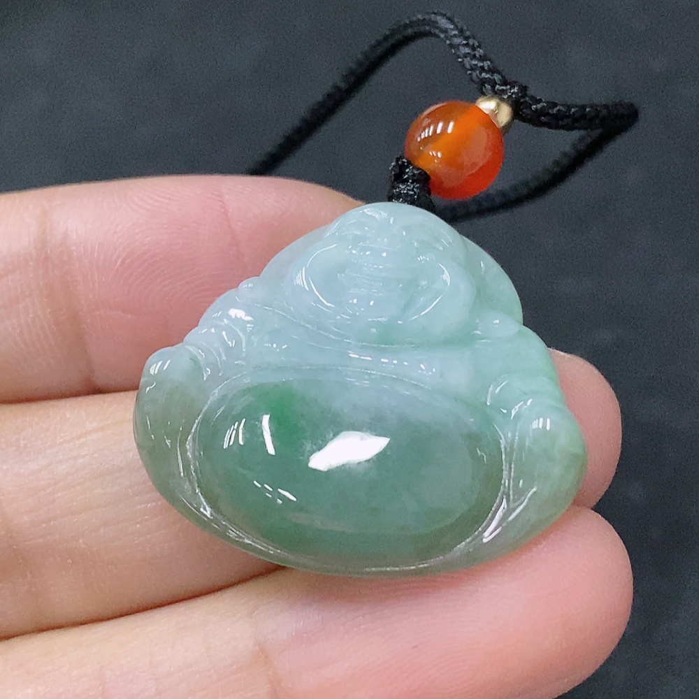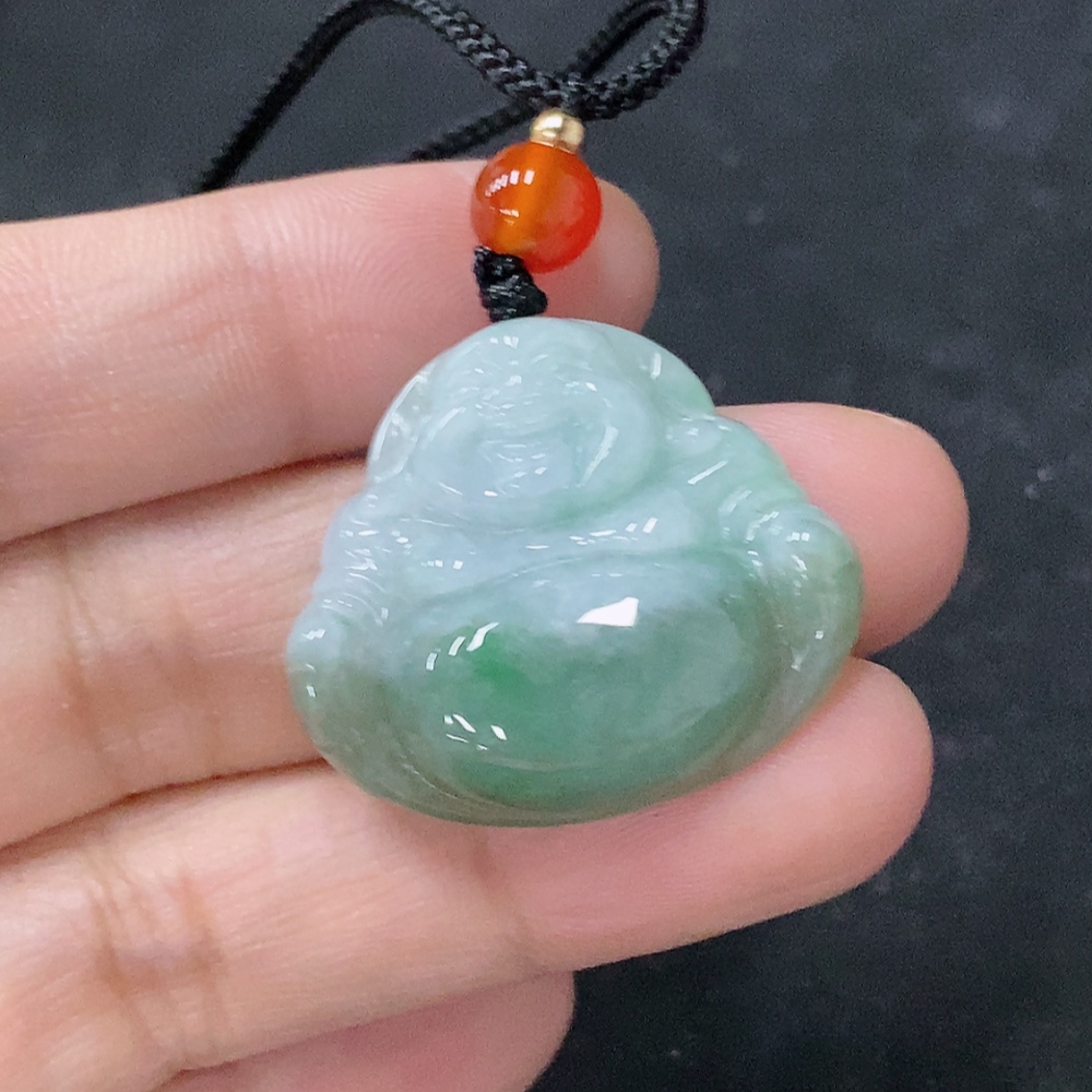 Jadeite Pendant Buddha, Total Weight Approximately 7.97g Including Rope, With Non-Grade A Beads
