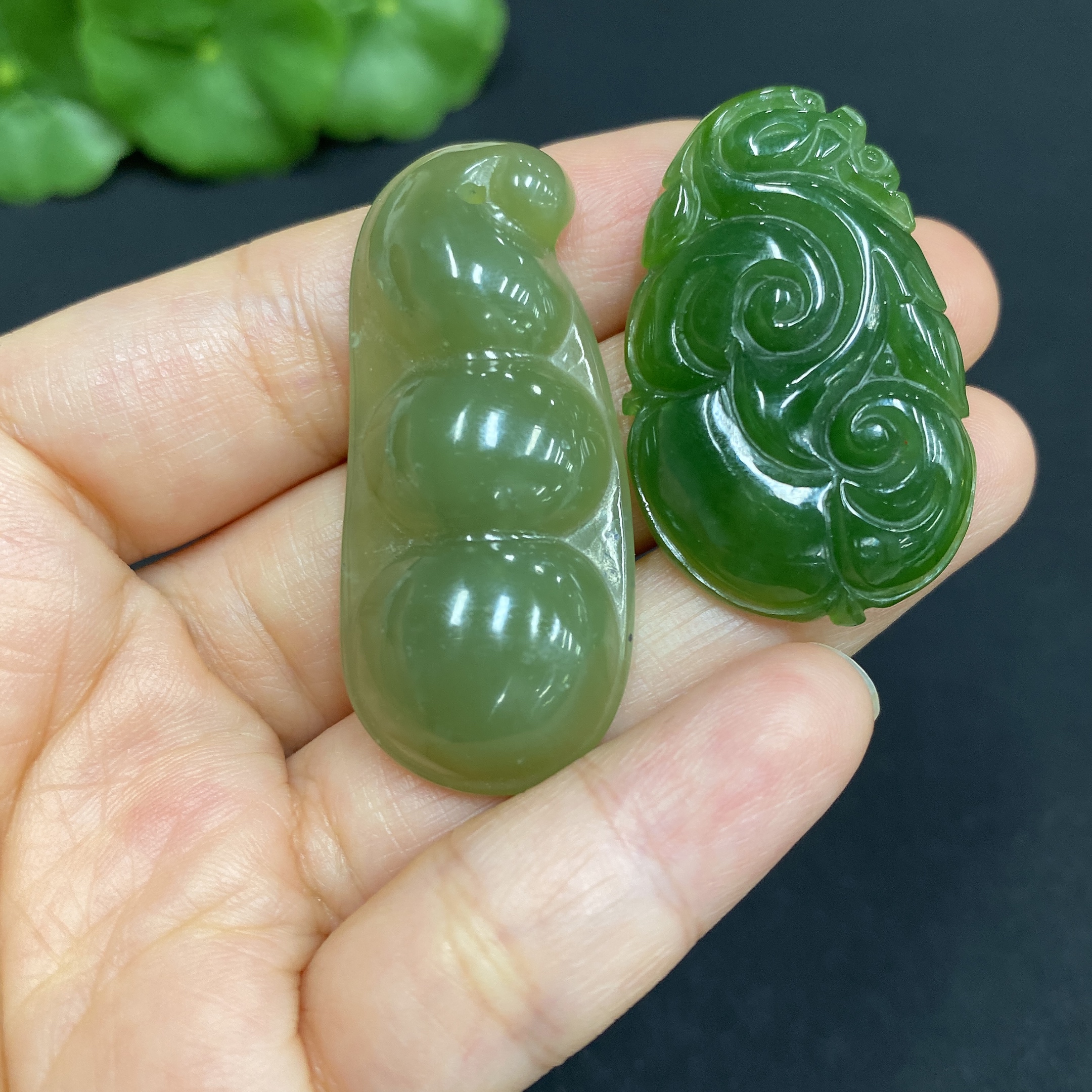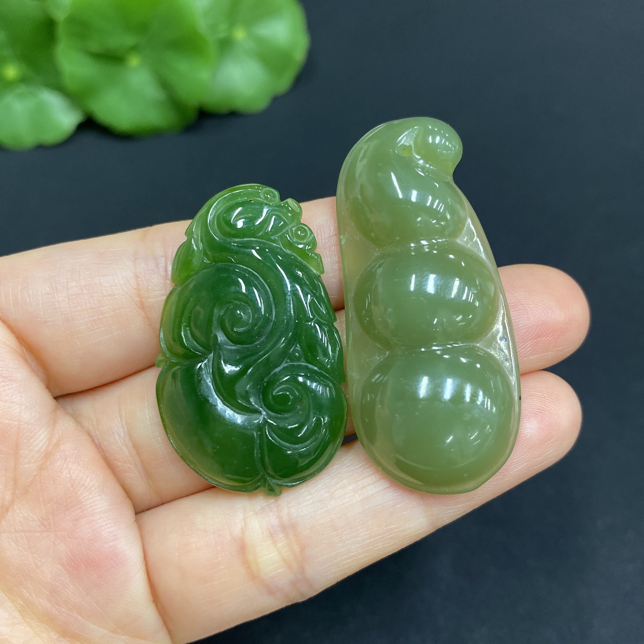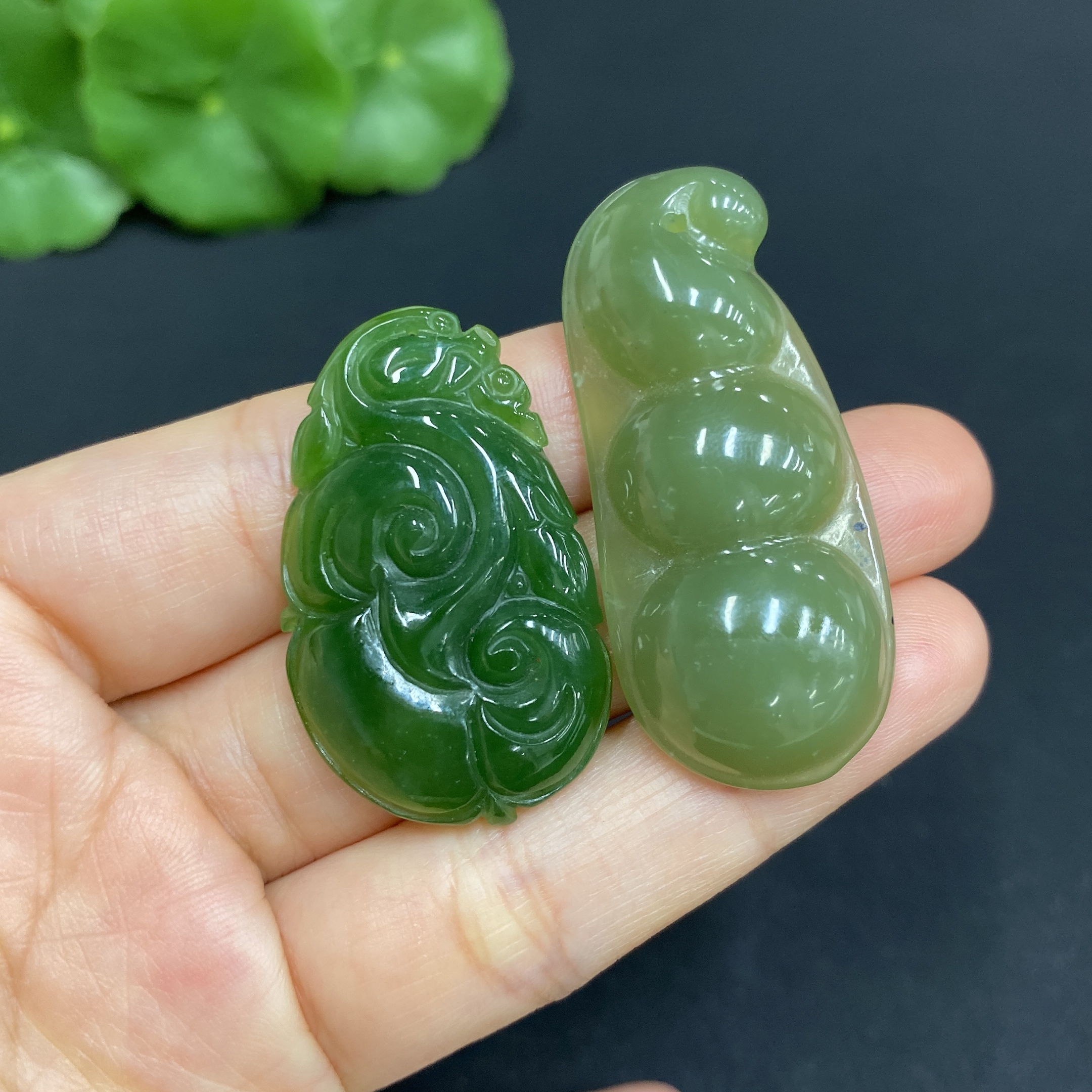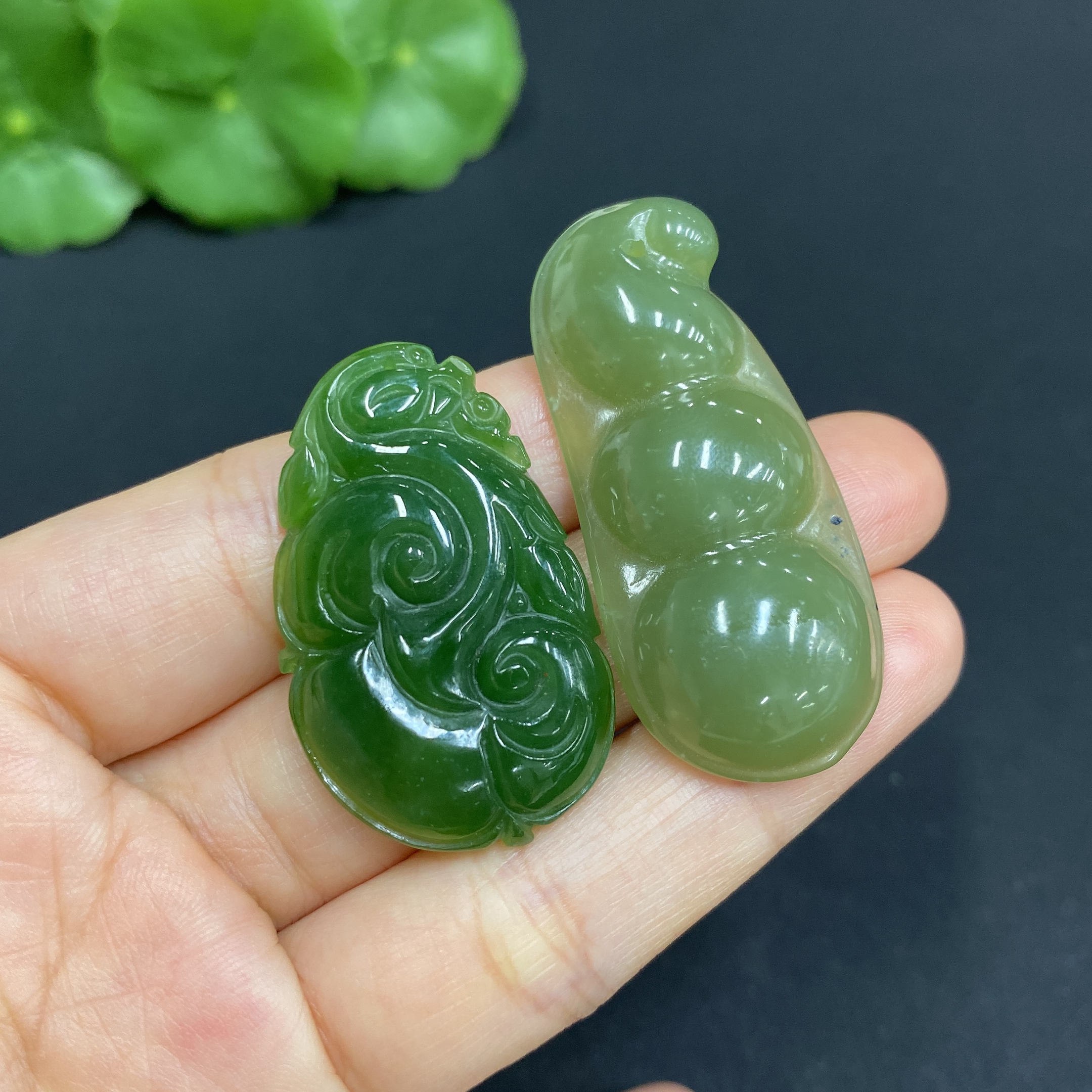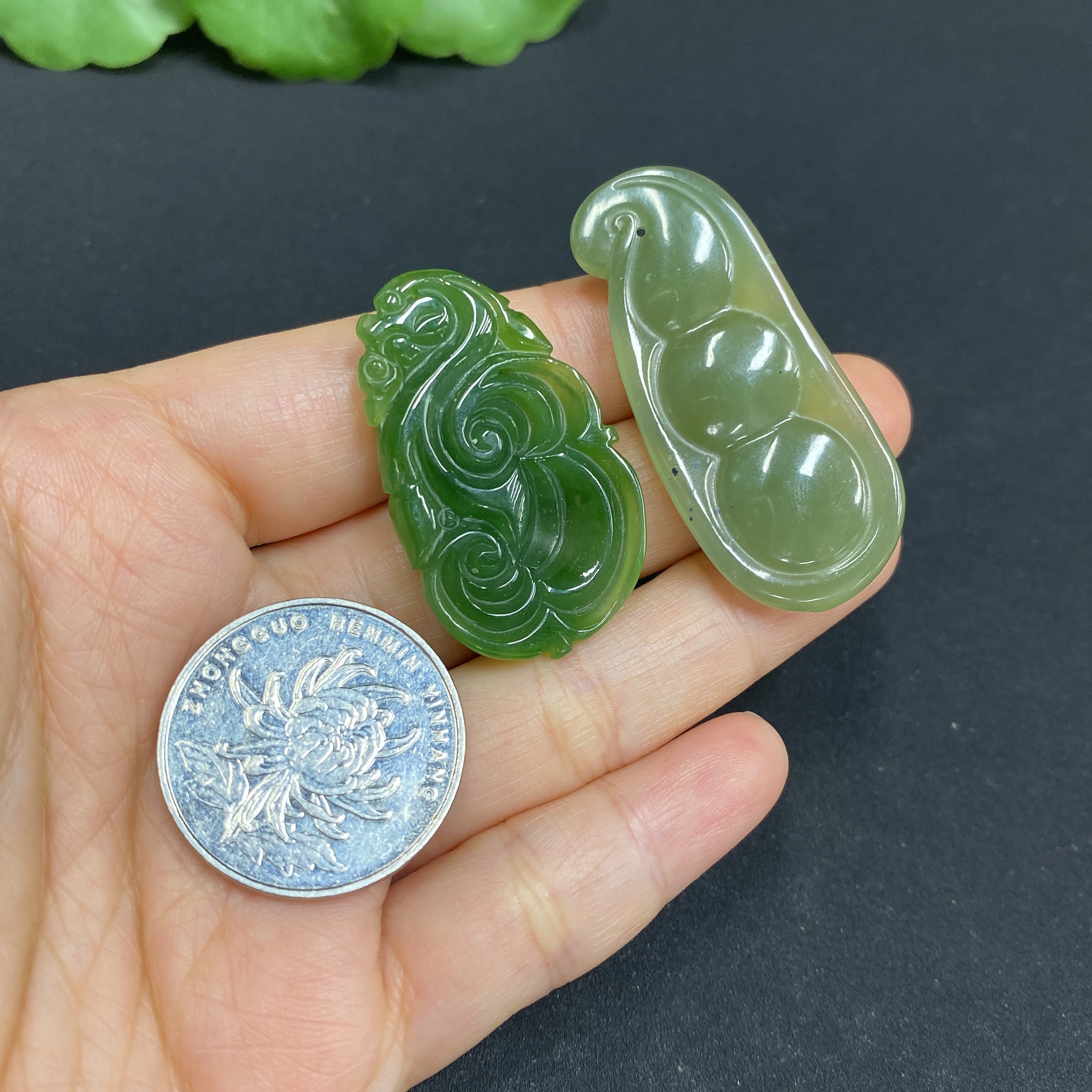Hetian Jade Pendant Ruyi + Lucky Bean Total Weight: Approx. 15.5g