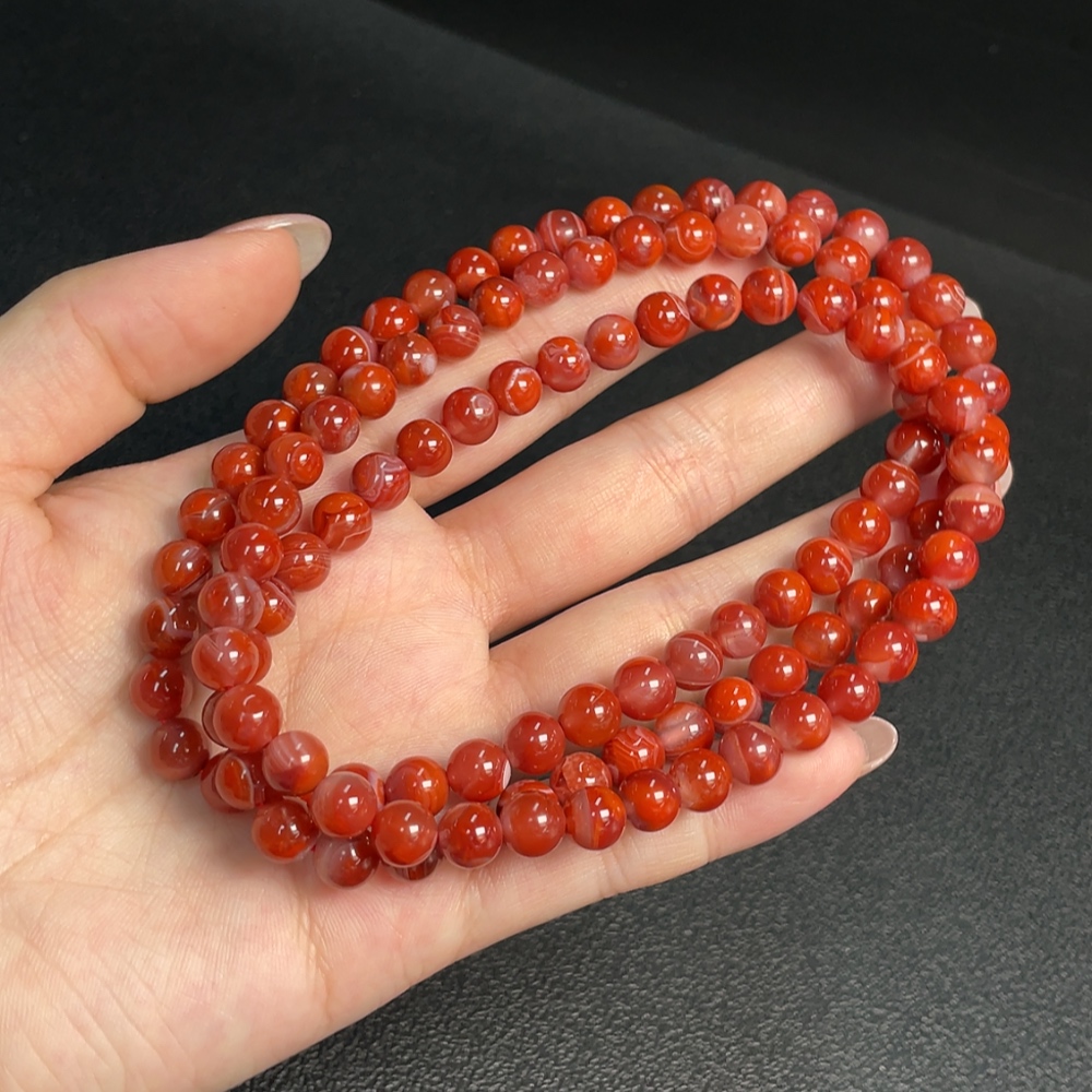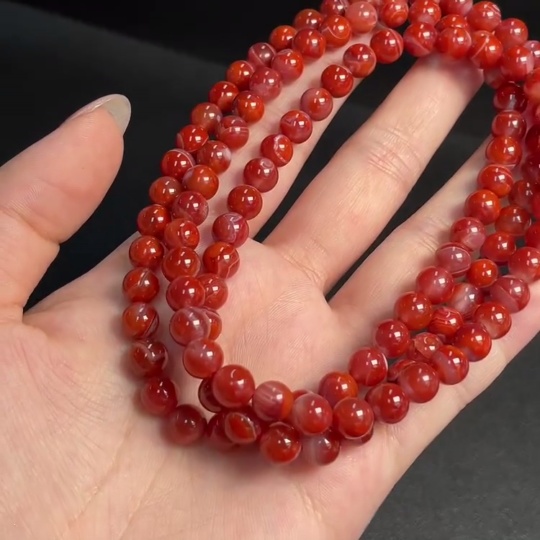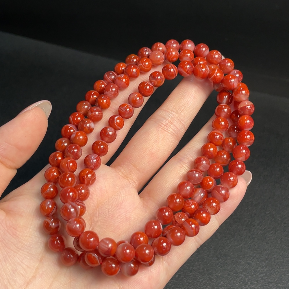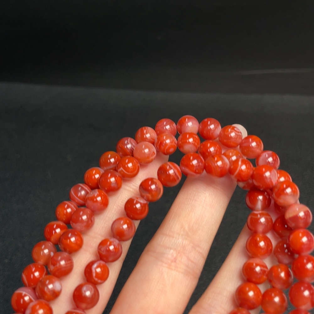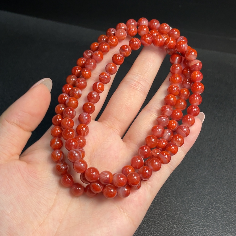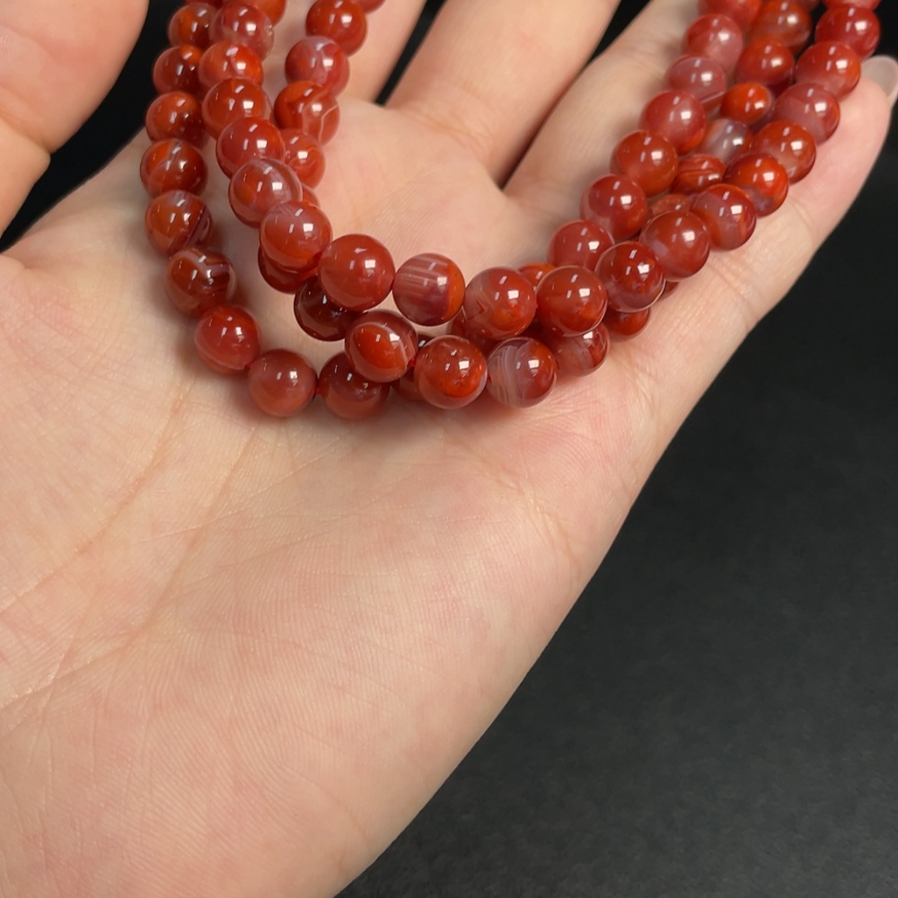 South Red Agate Bead Necklace with Visible Organic Matter, Total Weight Approx. 54.11g, Bead Size ~6.9mm