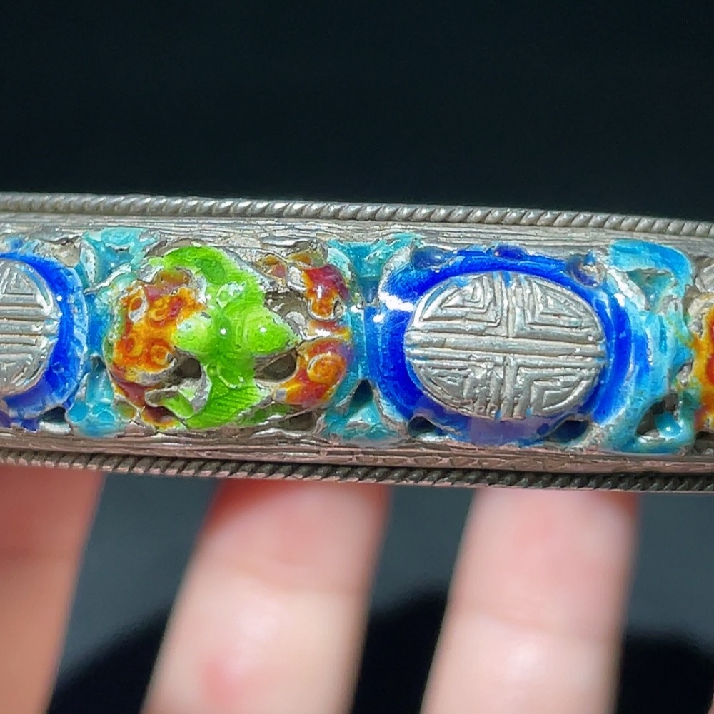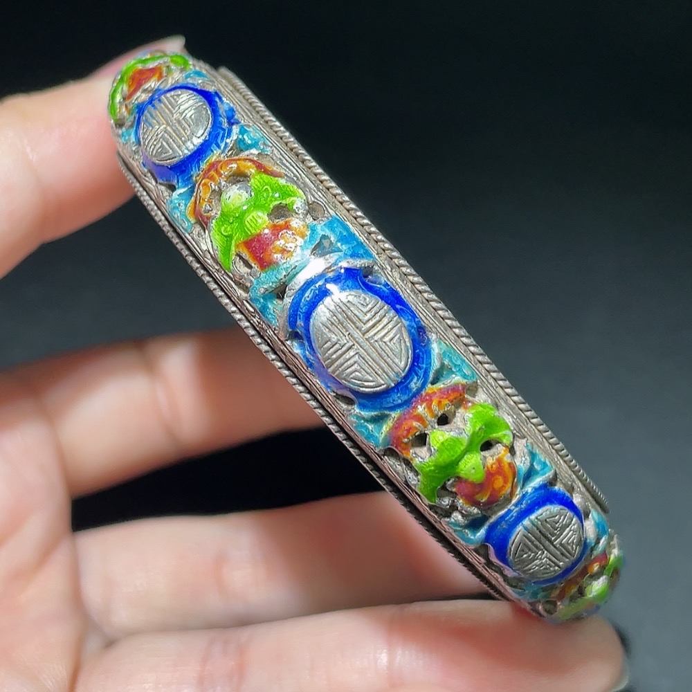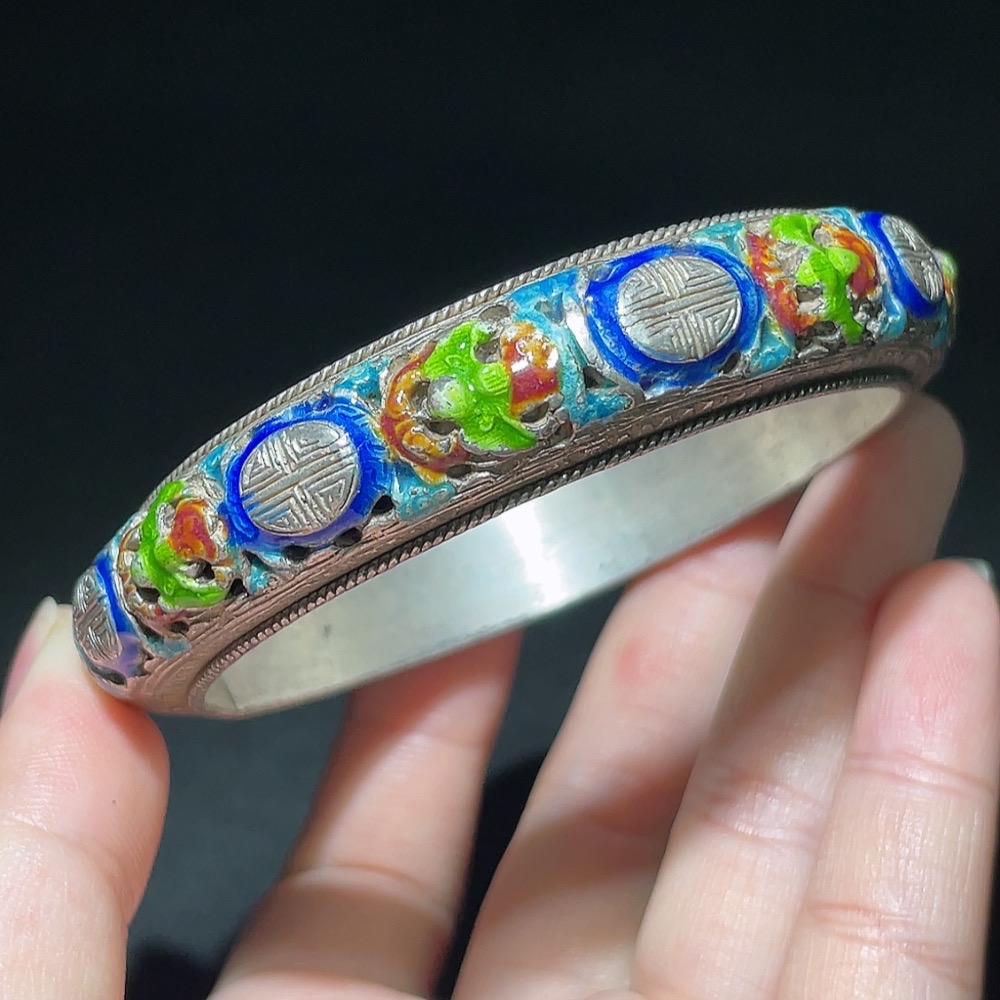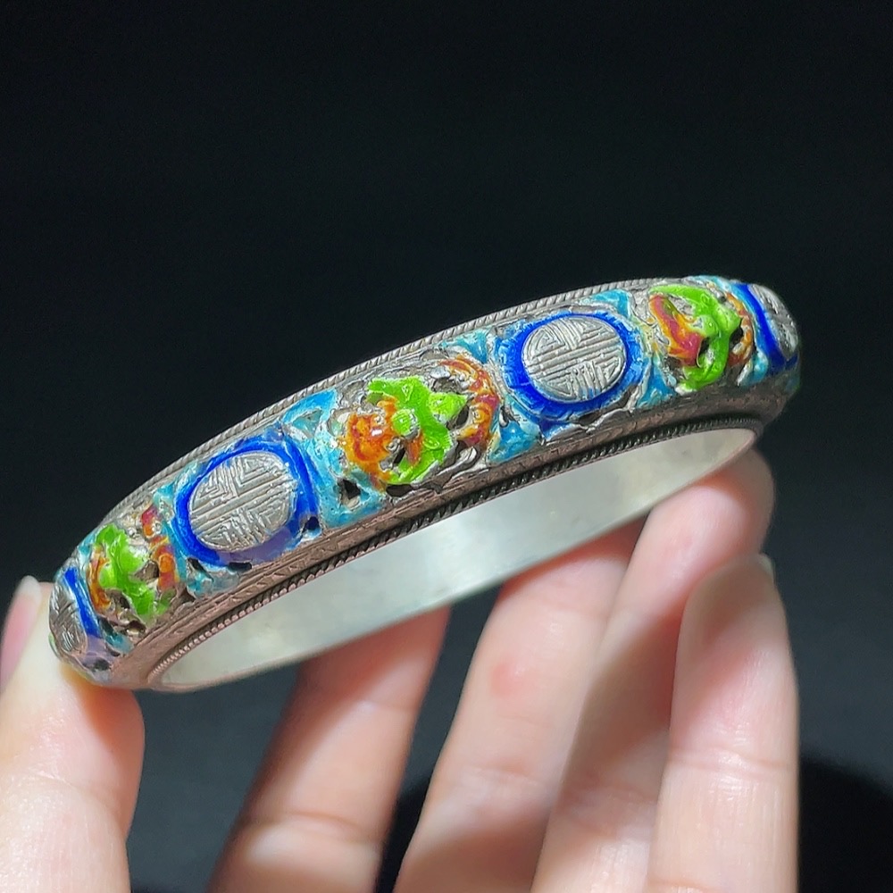 Qing Dynasty Cloisonné Transparent Enamel Openwork Auspicious Longevity Silver Bracelet (Miscellaneous)