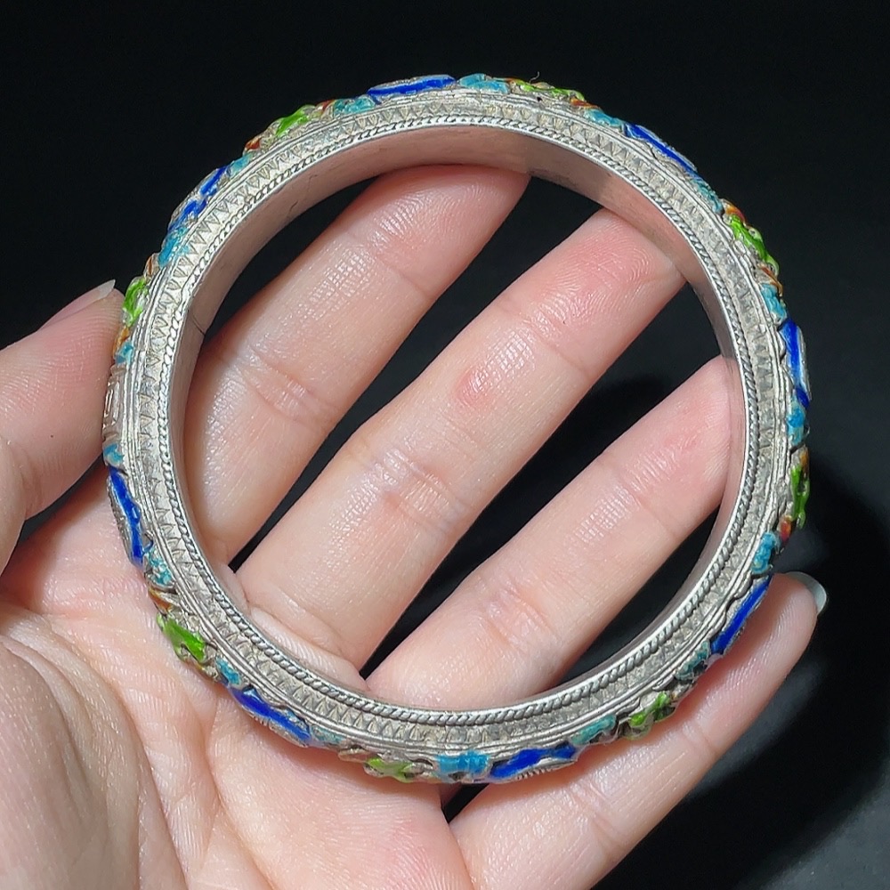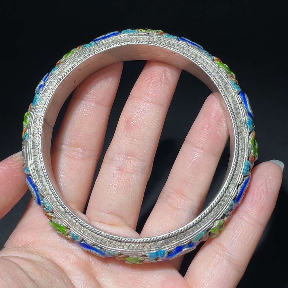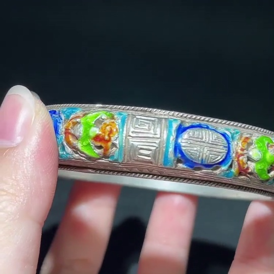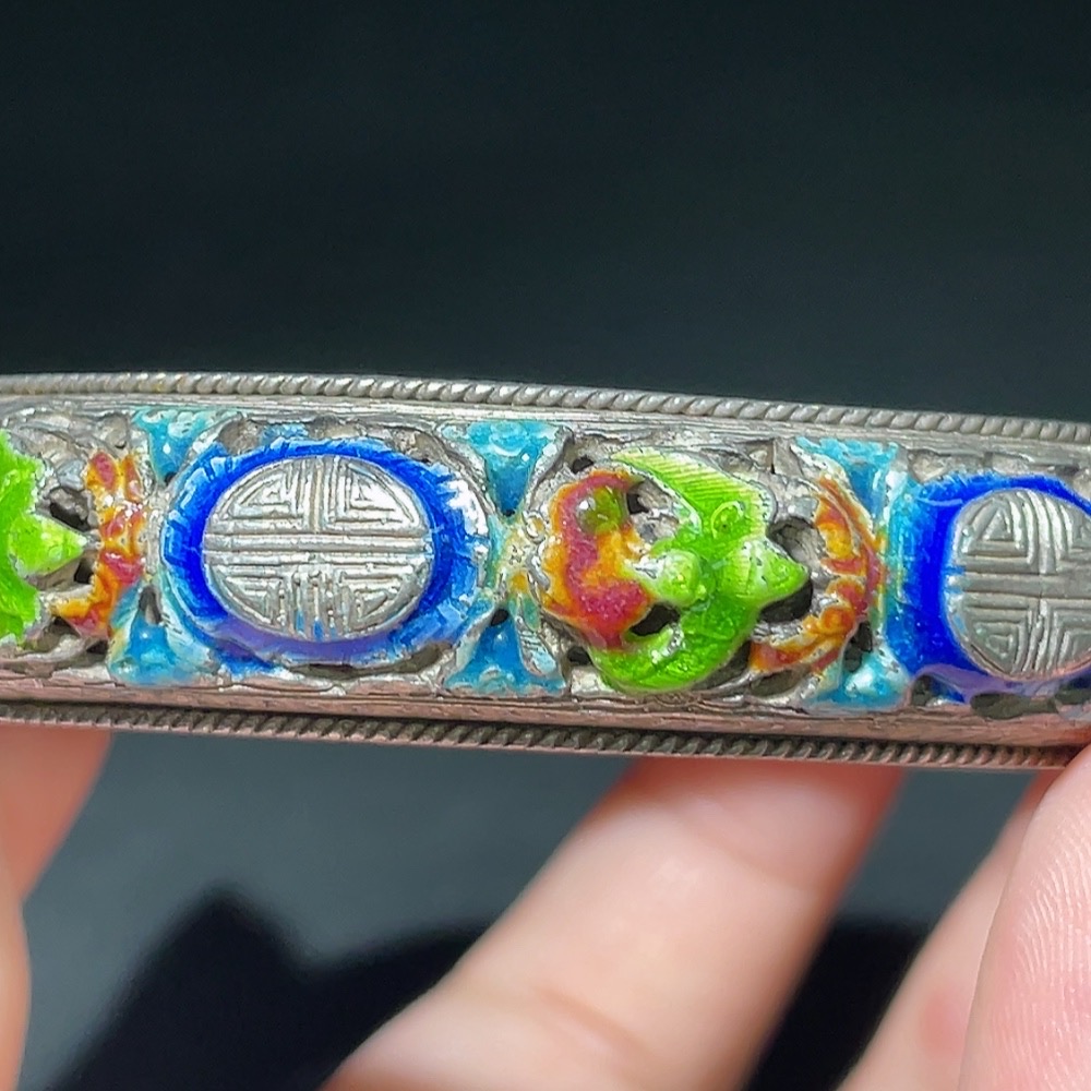 Qing Dynasty Cloisonné Transparent Enamel Openwork Auspicious Longevity Silver Bracelet (Miscellaneous)