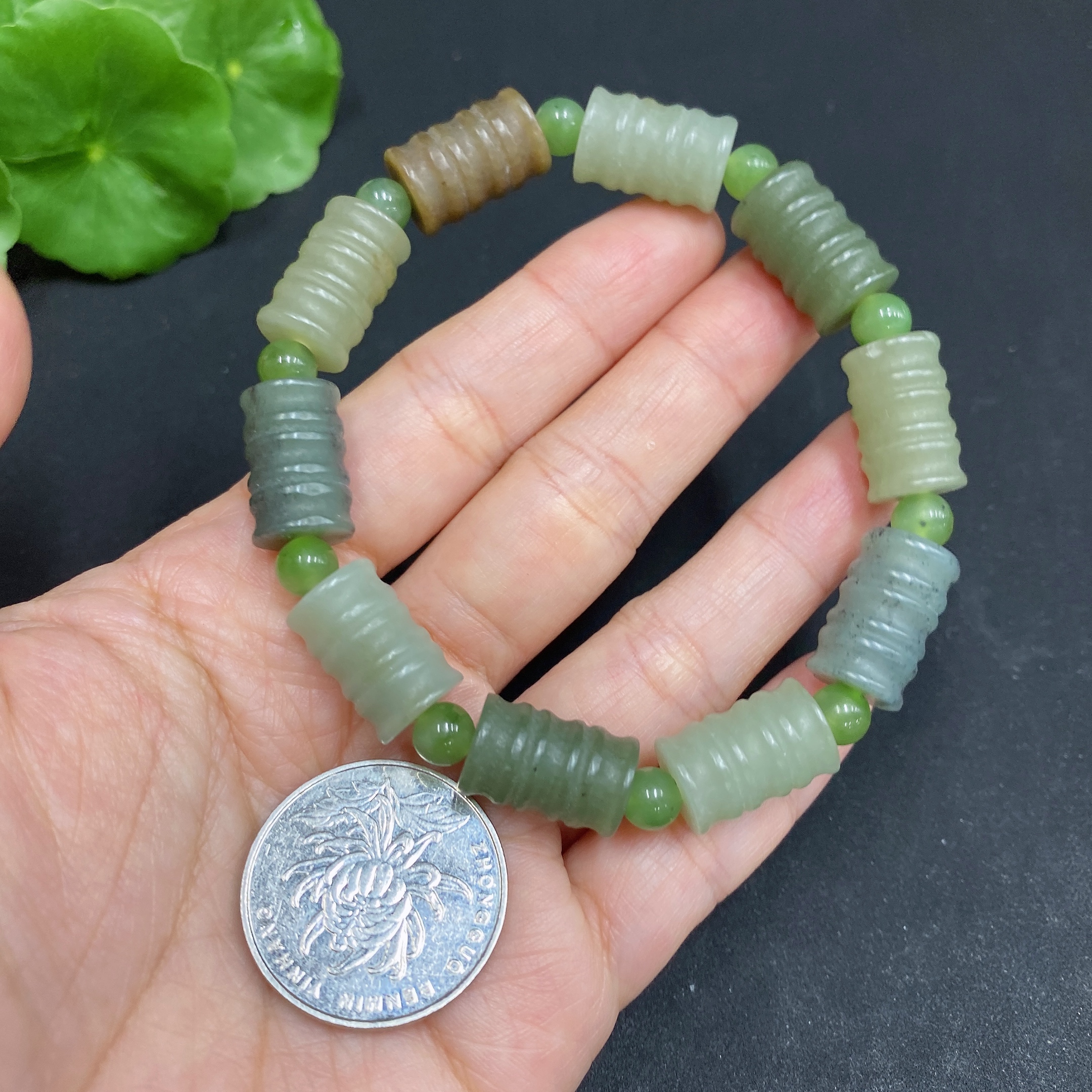 Hetian Jade Bead Bracelet, approx. 9.6mm, total weight about 35.5g