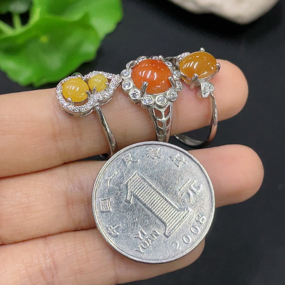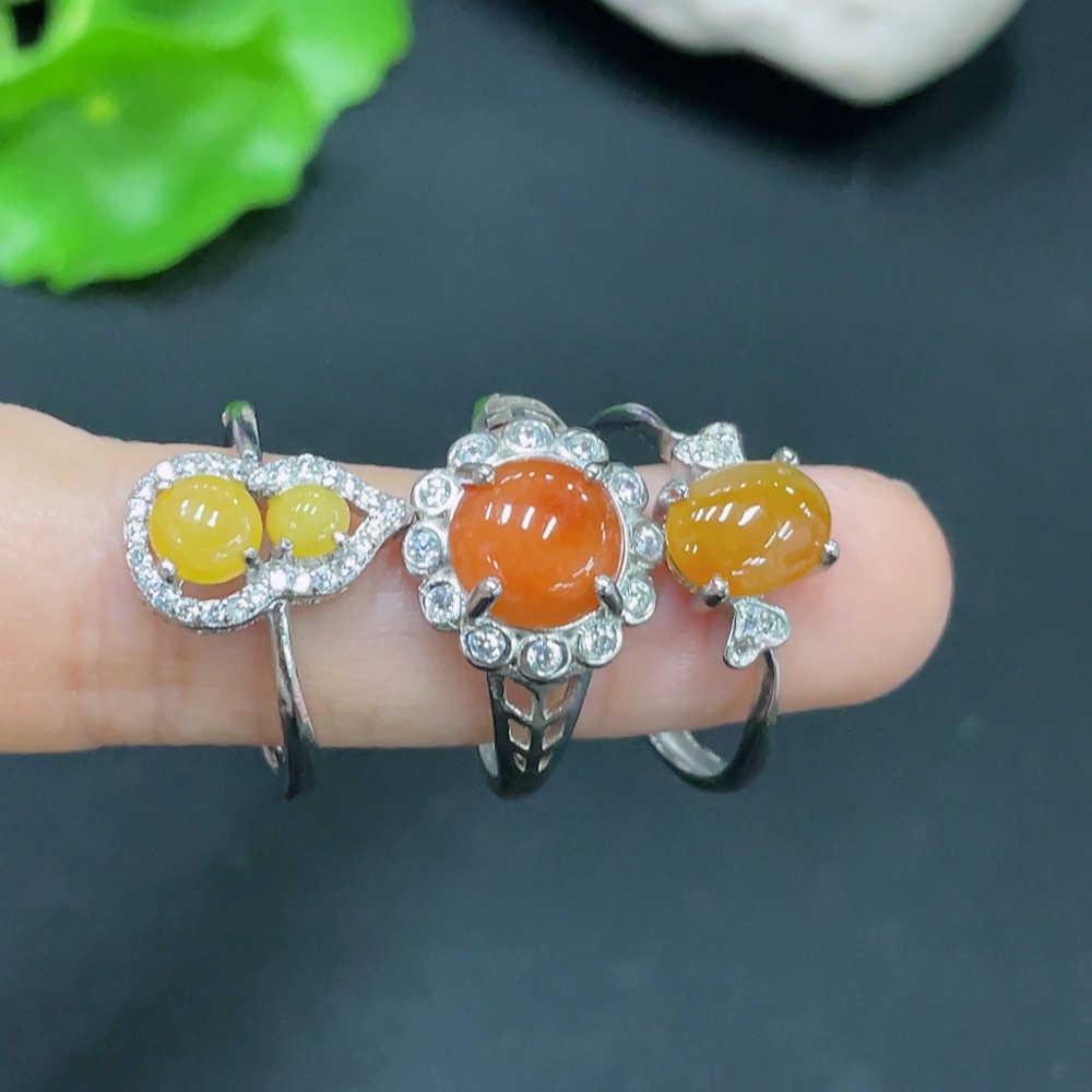 Jadeite Inlaid Piece Non-Gold Adjustable Sell as a Lot Color Origin Undetermined