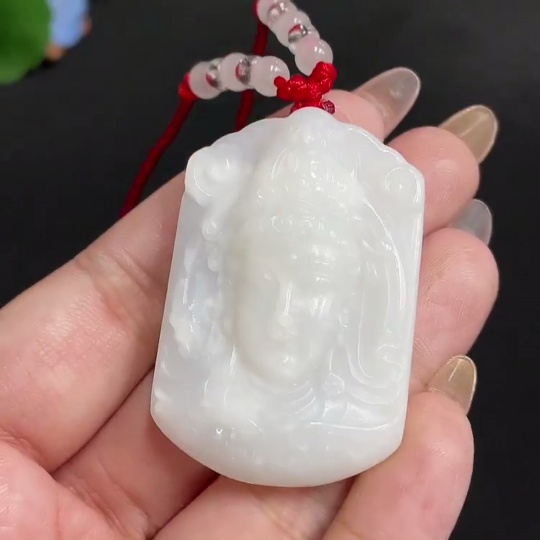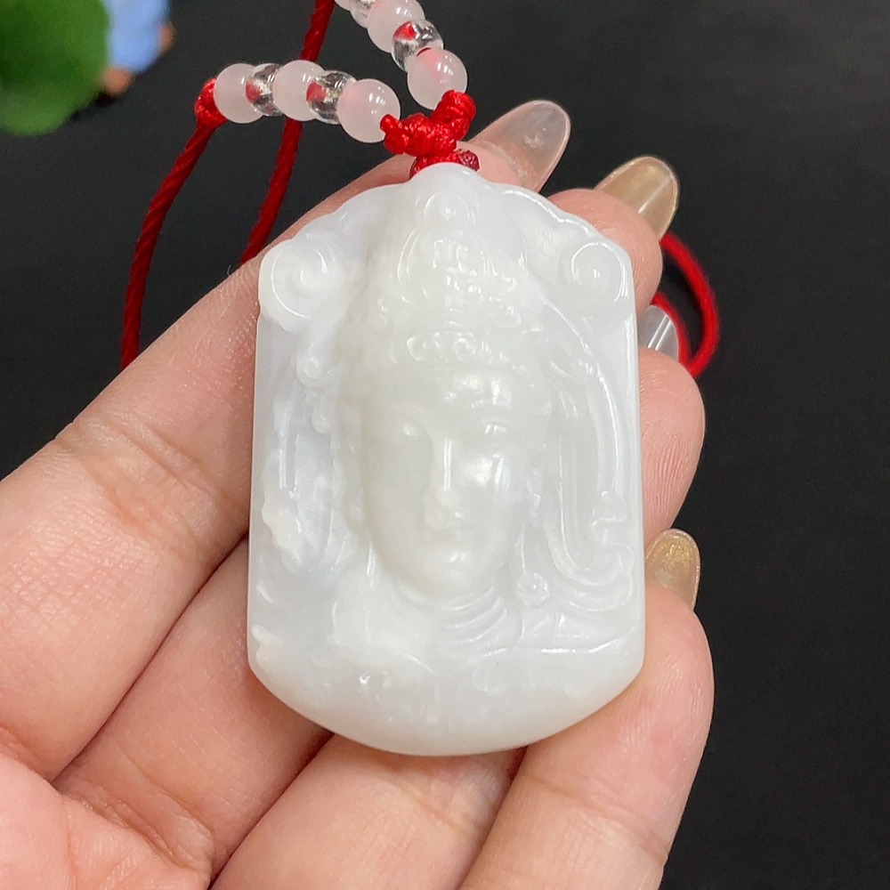 Hetian Jade Pendant Guanyin with Non-Hetian Jade Beads Total Weight Approx. [with Rope] 31.6g