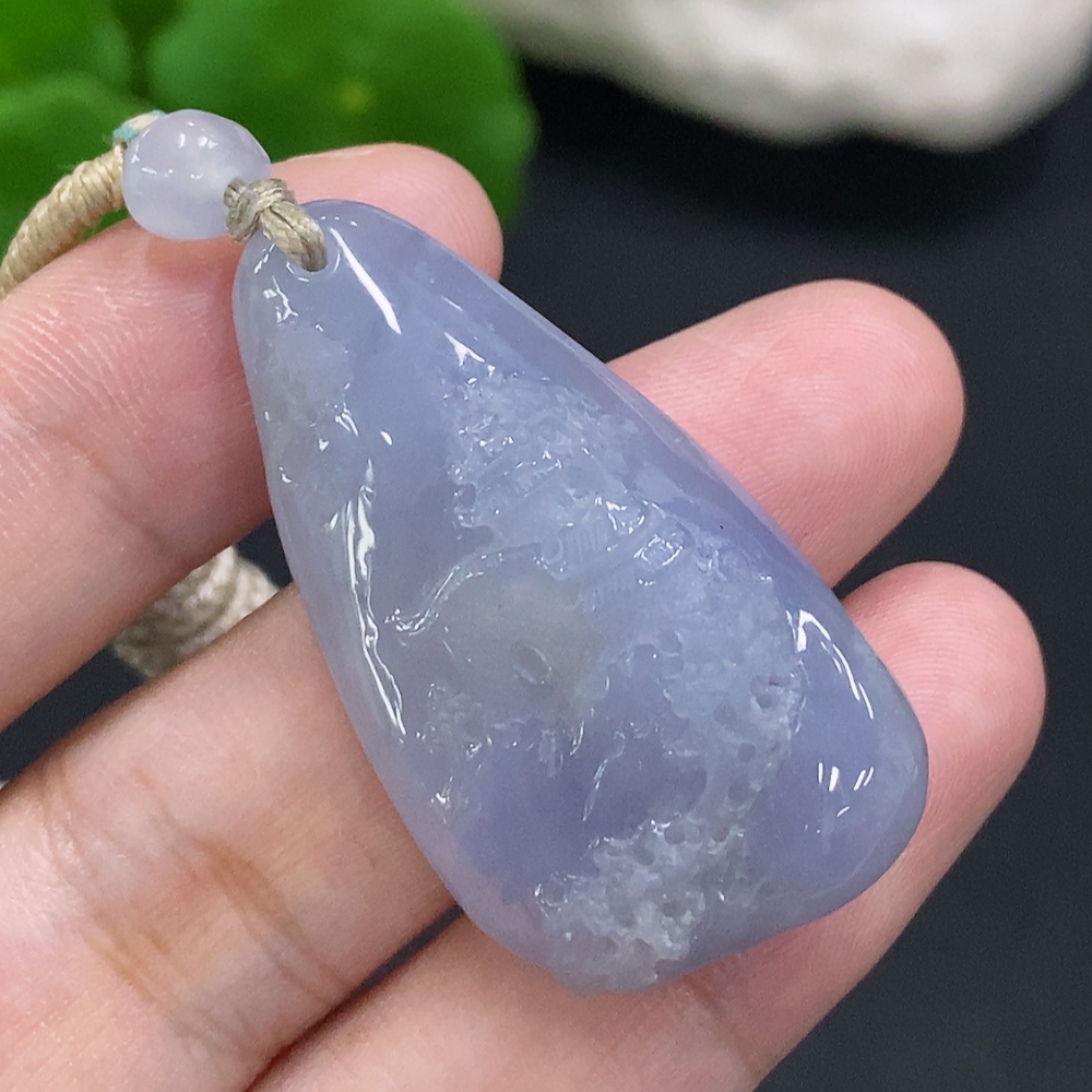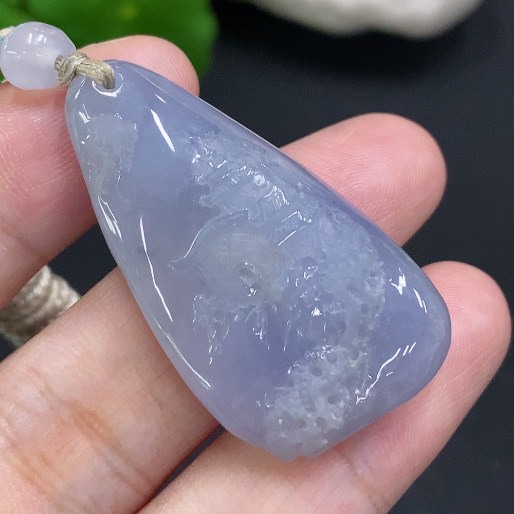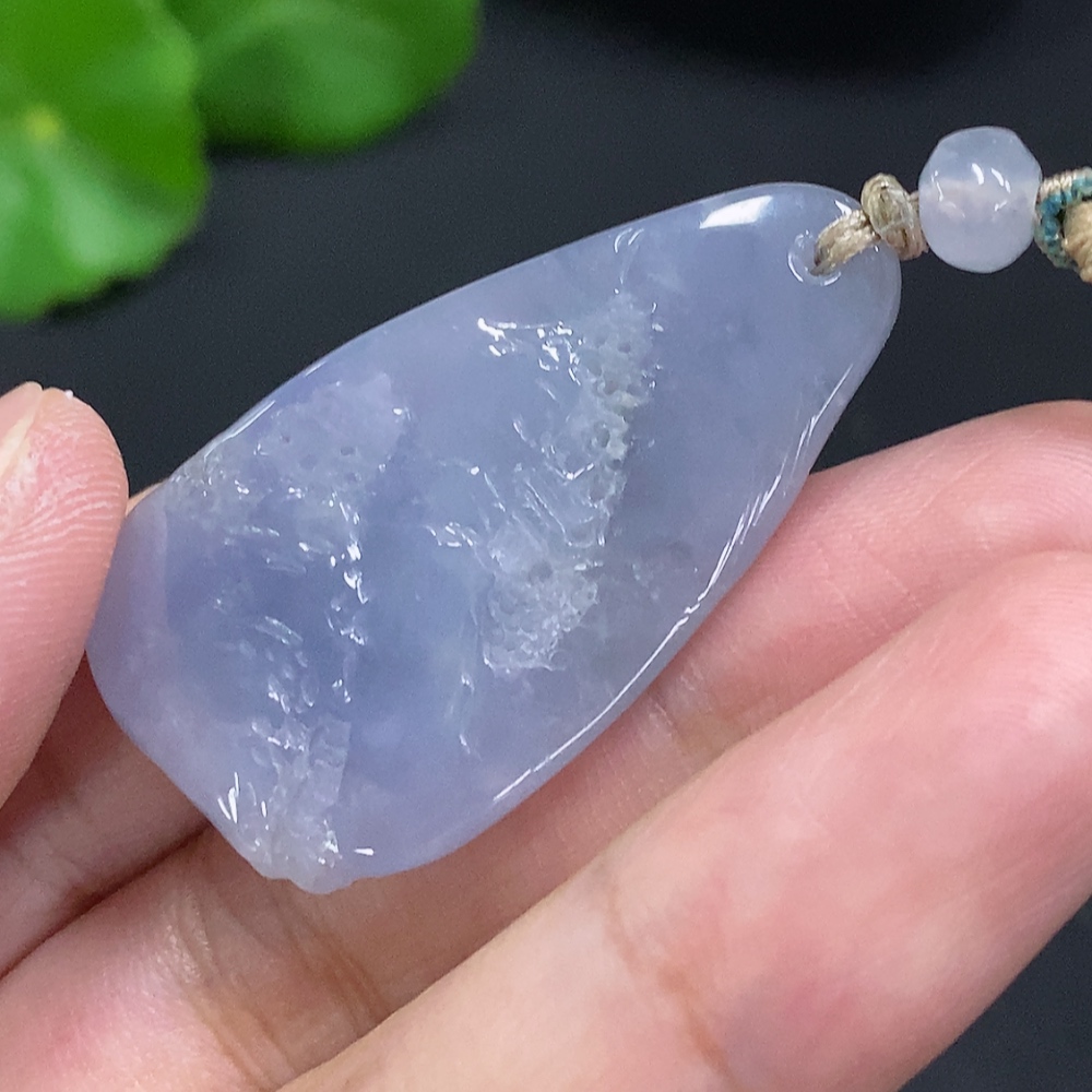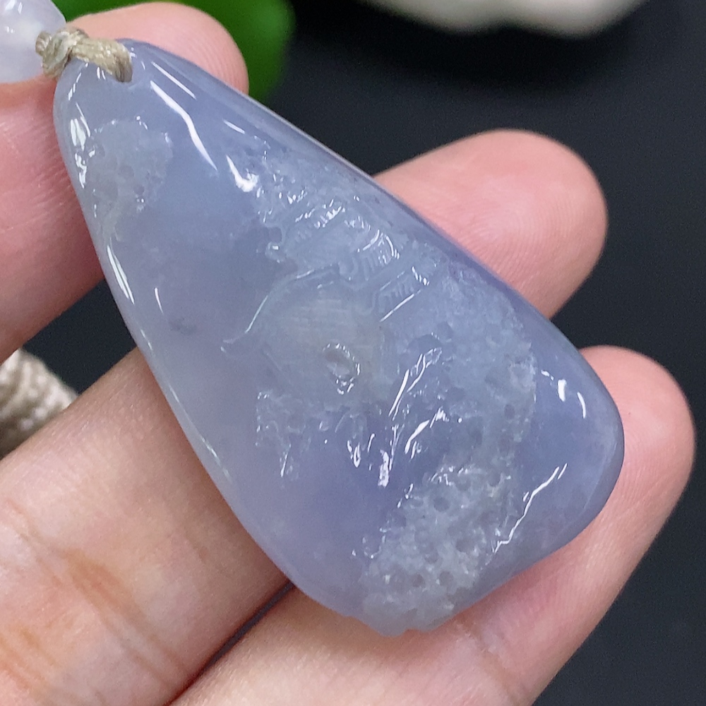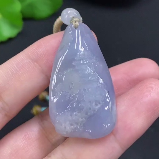 Jadeite Landscape Pendant, Total Weight Including Rope Approximately 14.1g