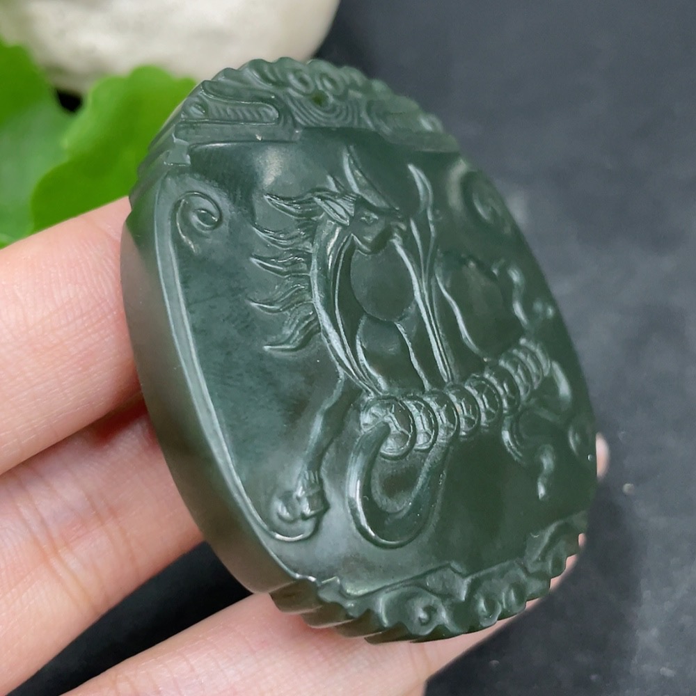 Hetian Jade Pendant "Wealth on Horseback" Total Weight Approx. 49.3g