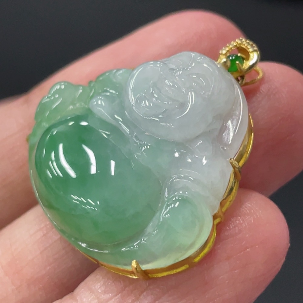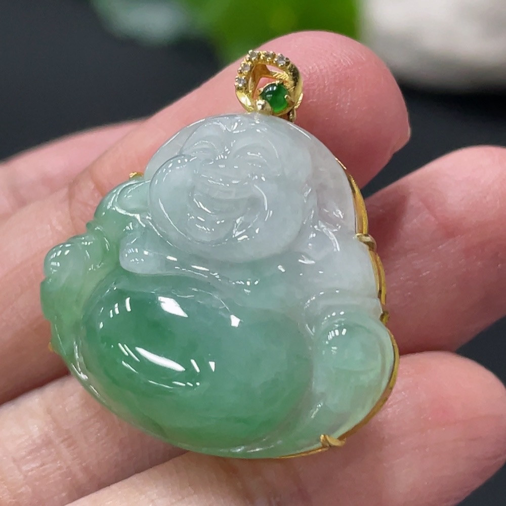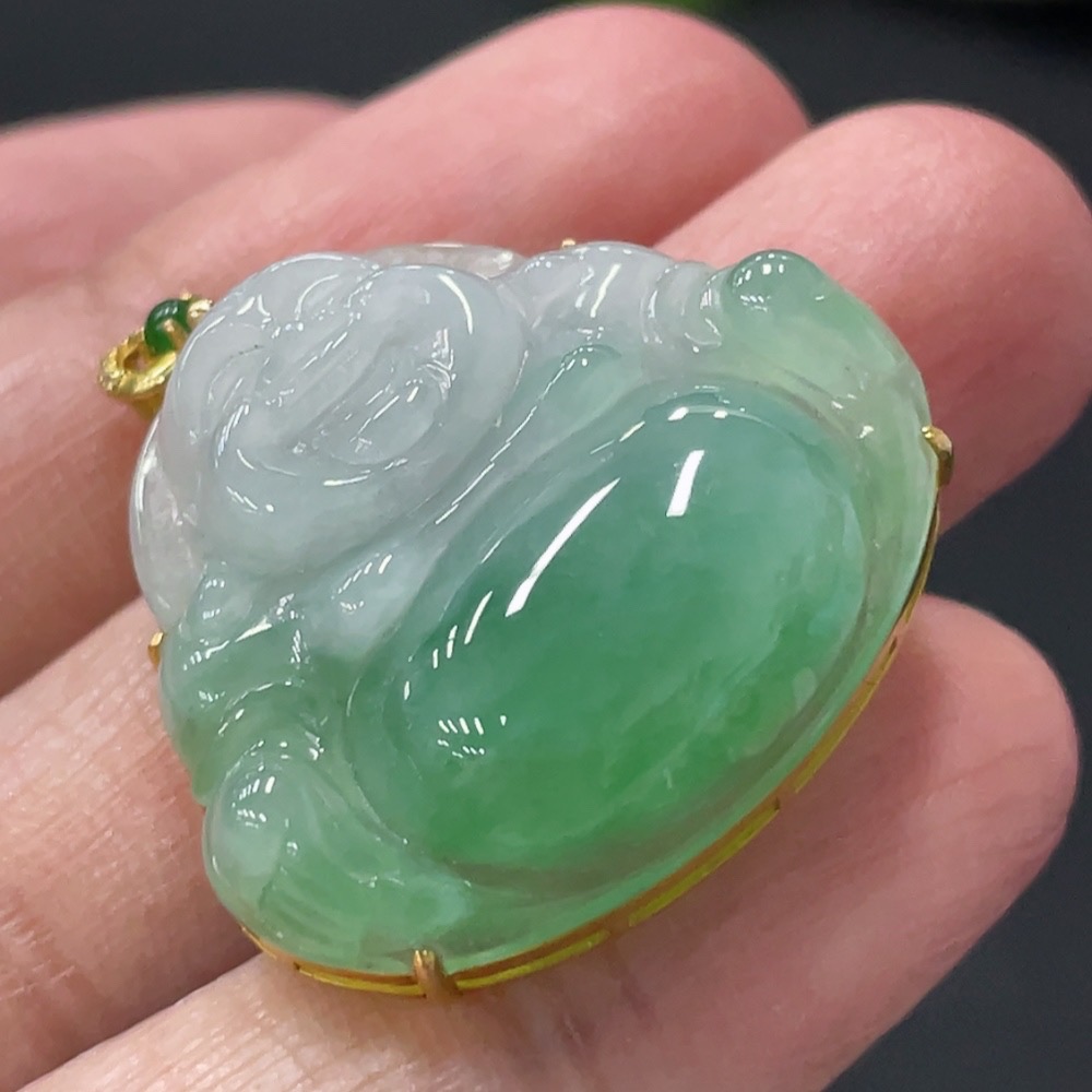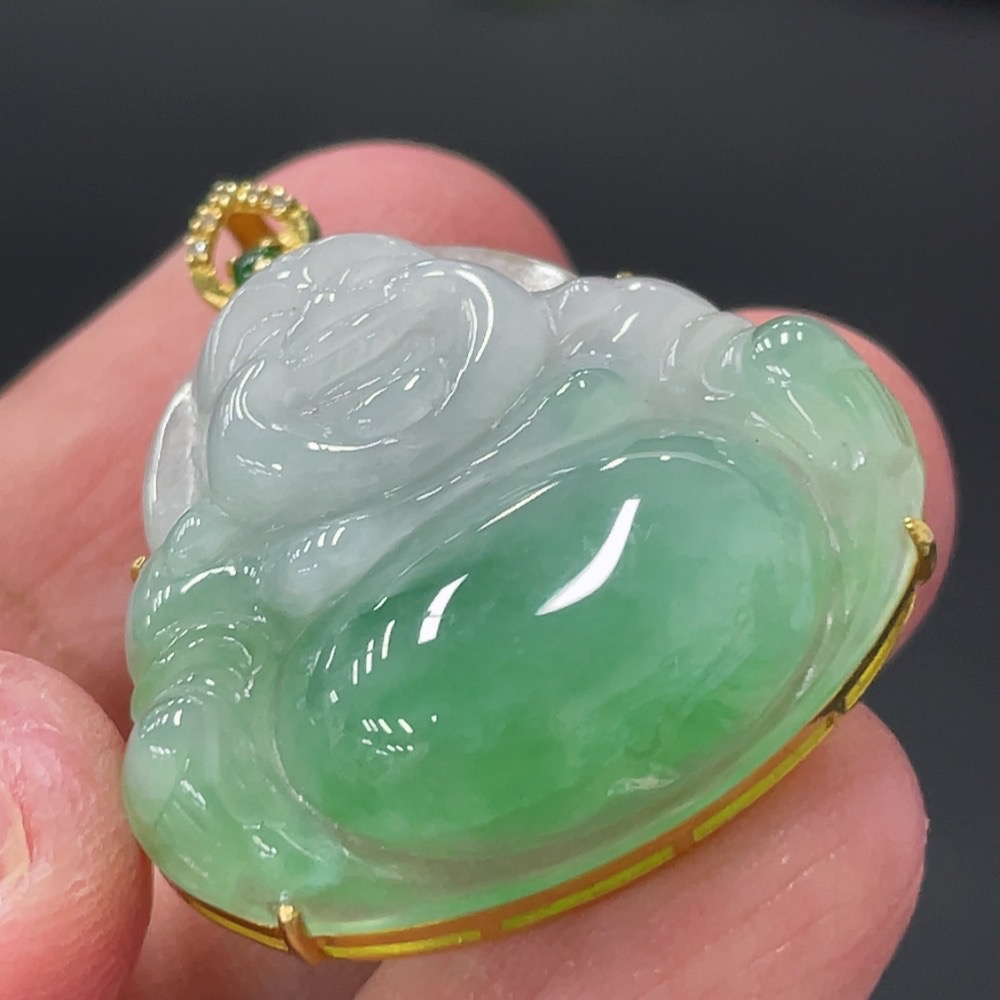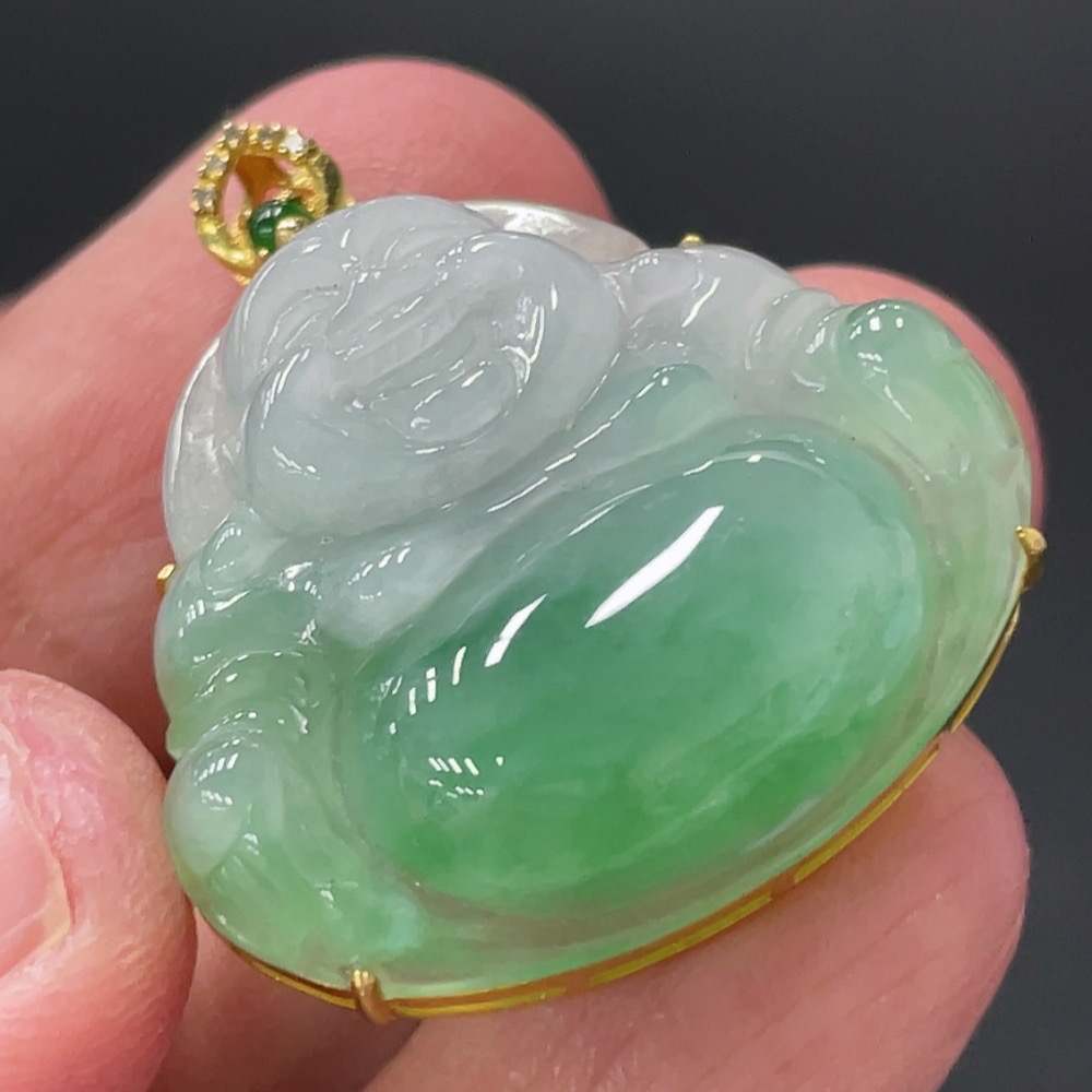 Jadeite Buddha Pendant with 18K Gold and Diamond Accents, Total Weight Approx. 6g