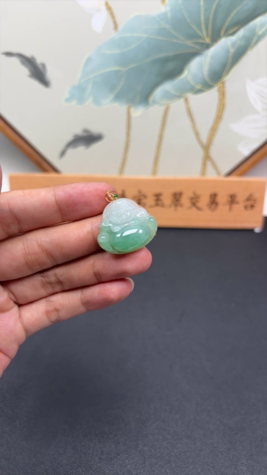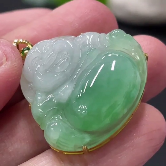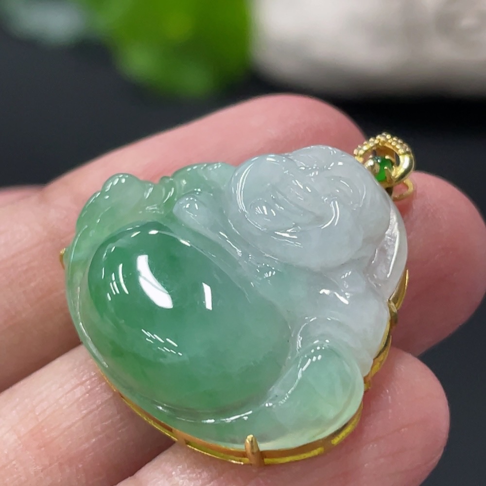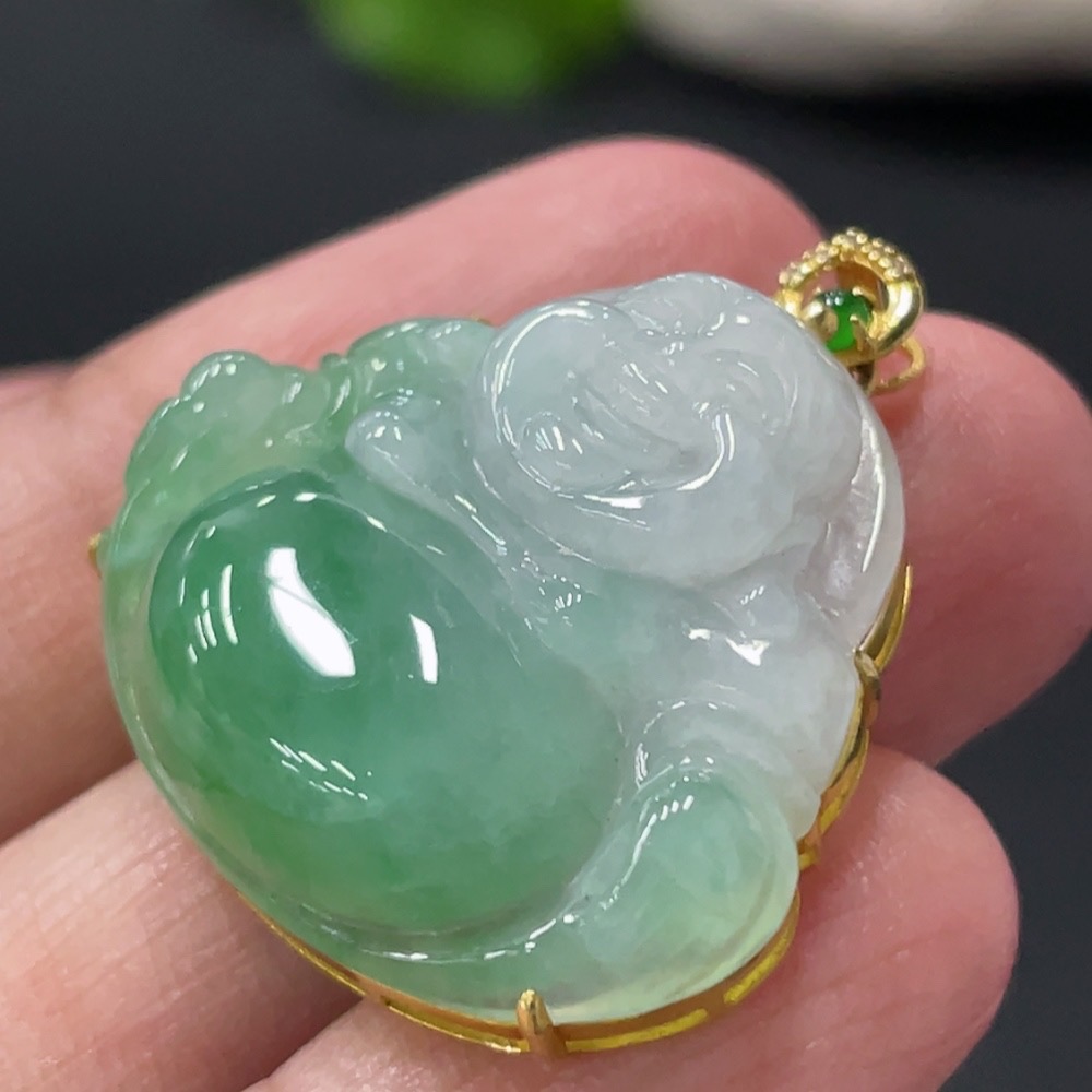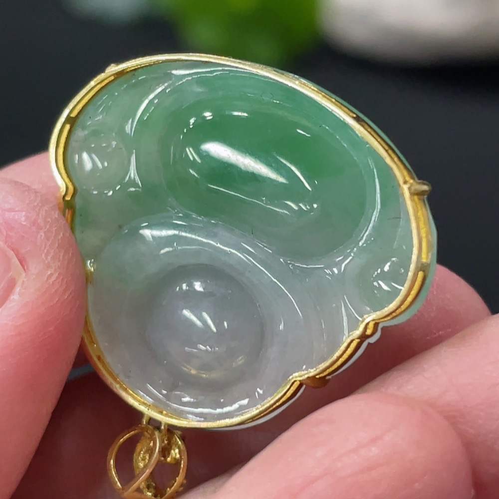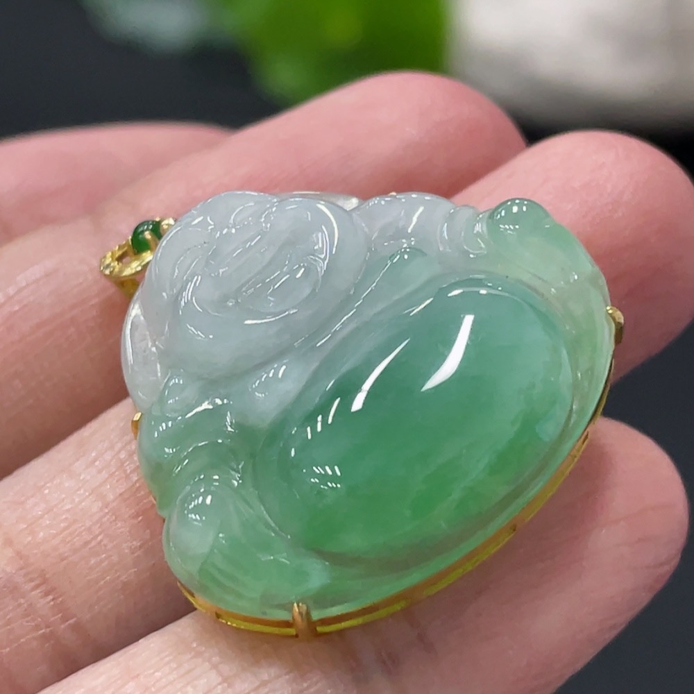 Jadeite Buddha Pendant with 18K Gold and Diamond Accents, Total Weight Approx. 6g