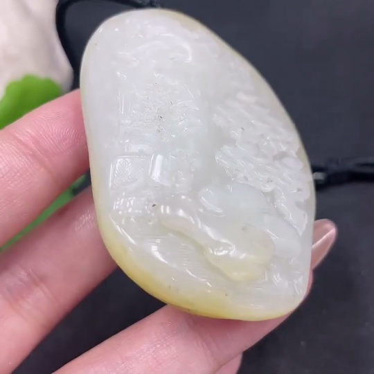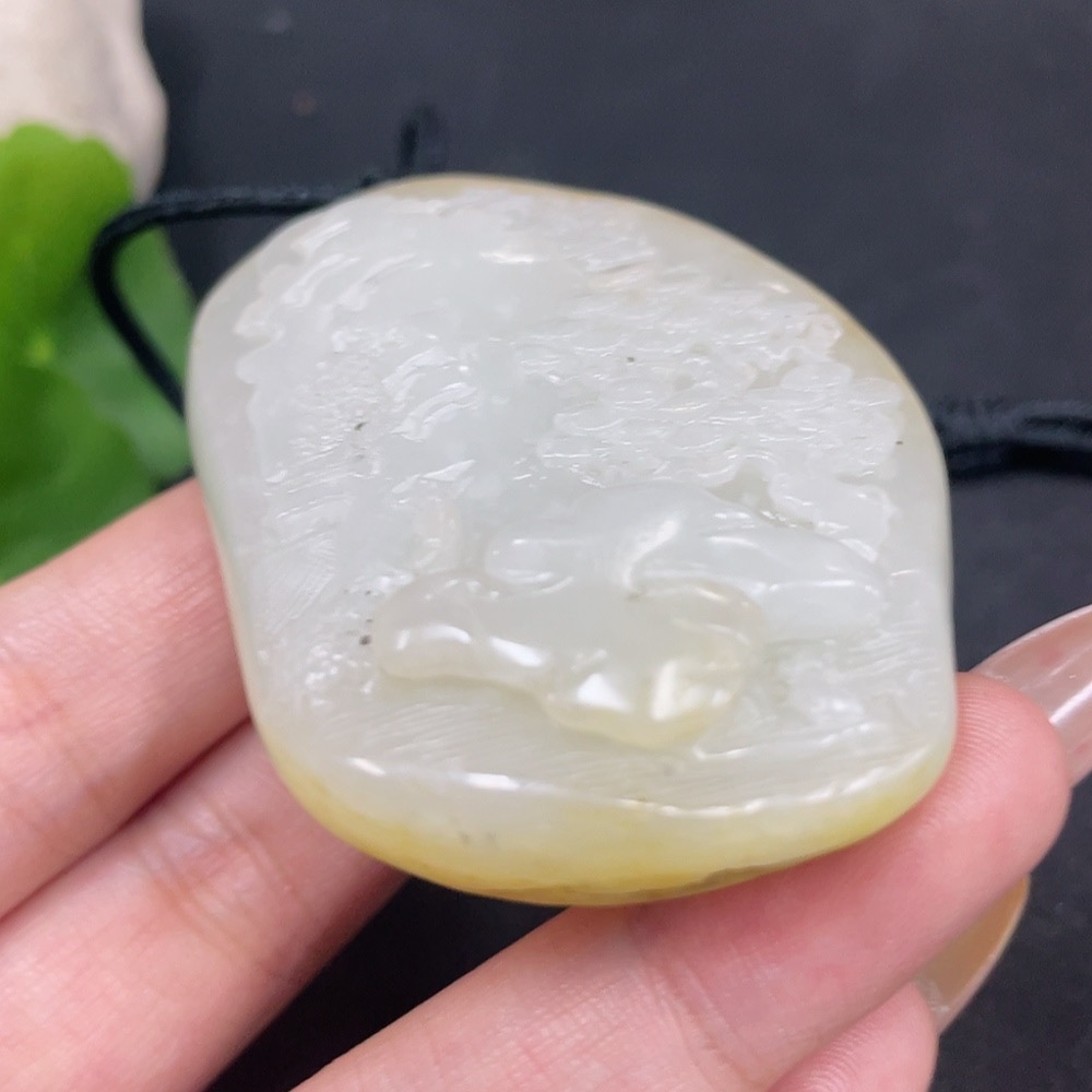 Trezaar - Hetian Jade Seed Material Pendant - Landscape - Containing Other Mineral Components - Undetermined Skin Color Origin - Total Weight (Including Cord): Approximately 74.3g