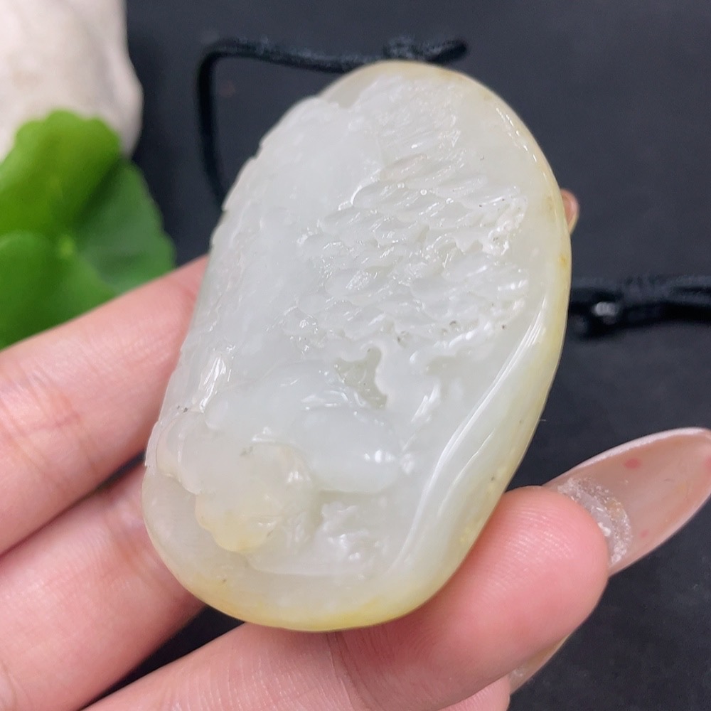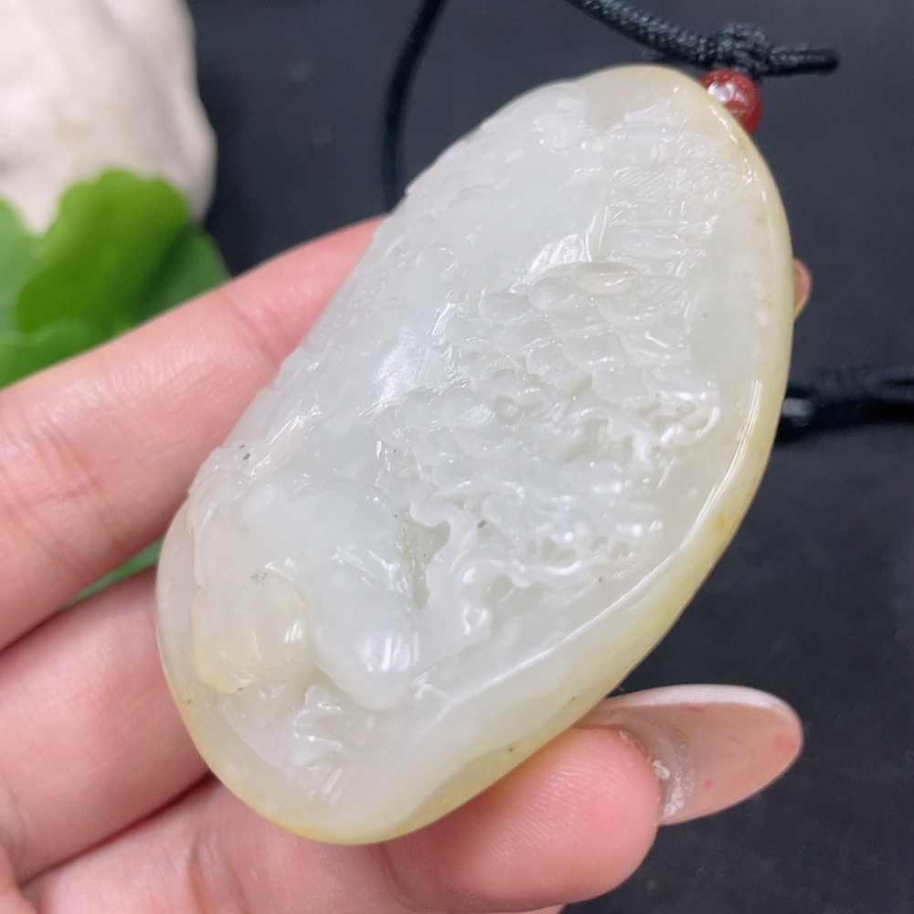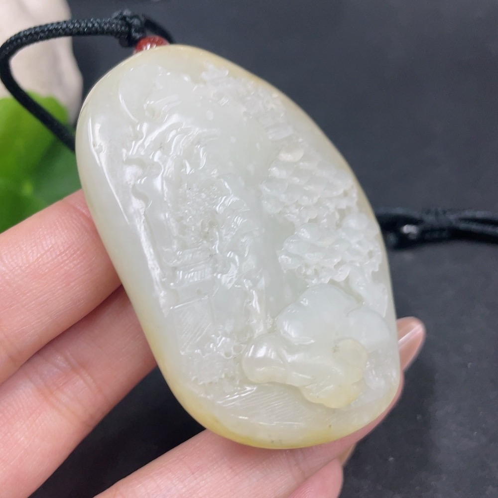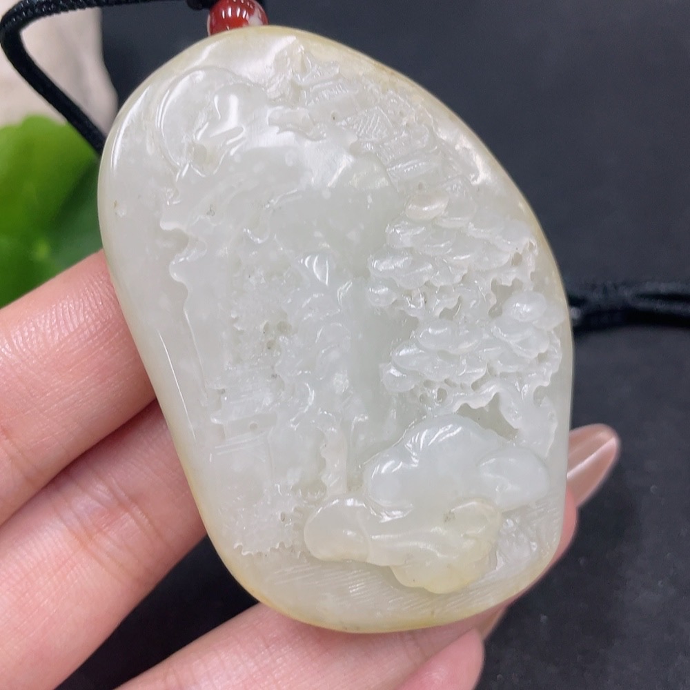 Hetian Jade Seed Material Pendant - Landscape - Containing Other Mineral Components - Undetermined Skin Color Origin - Total Weight (Including Cord): Approximately 74.3g