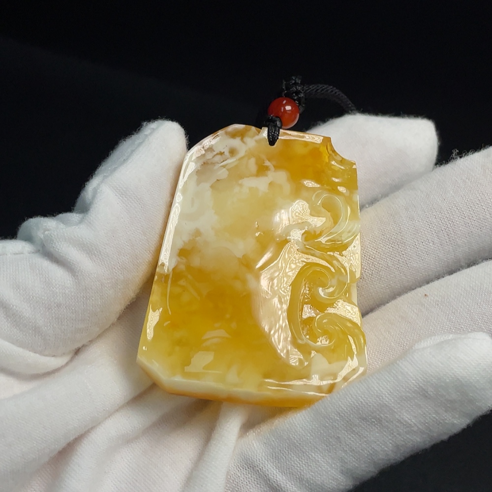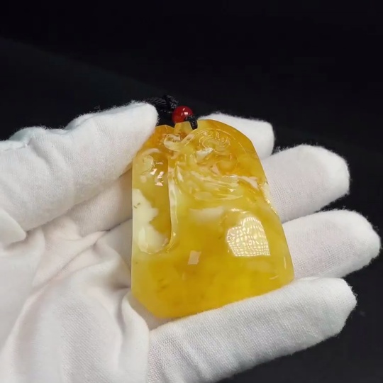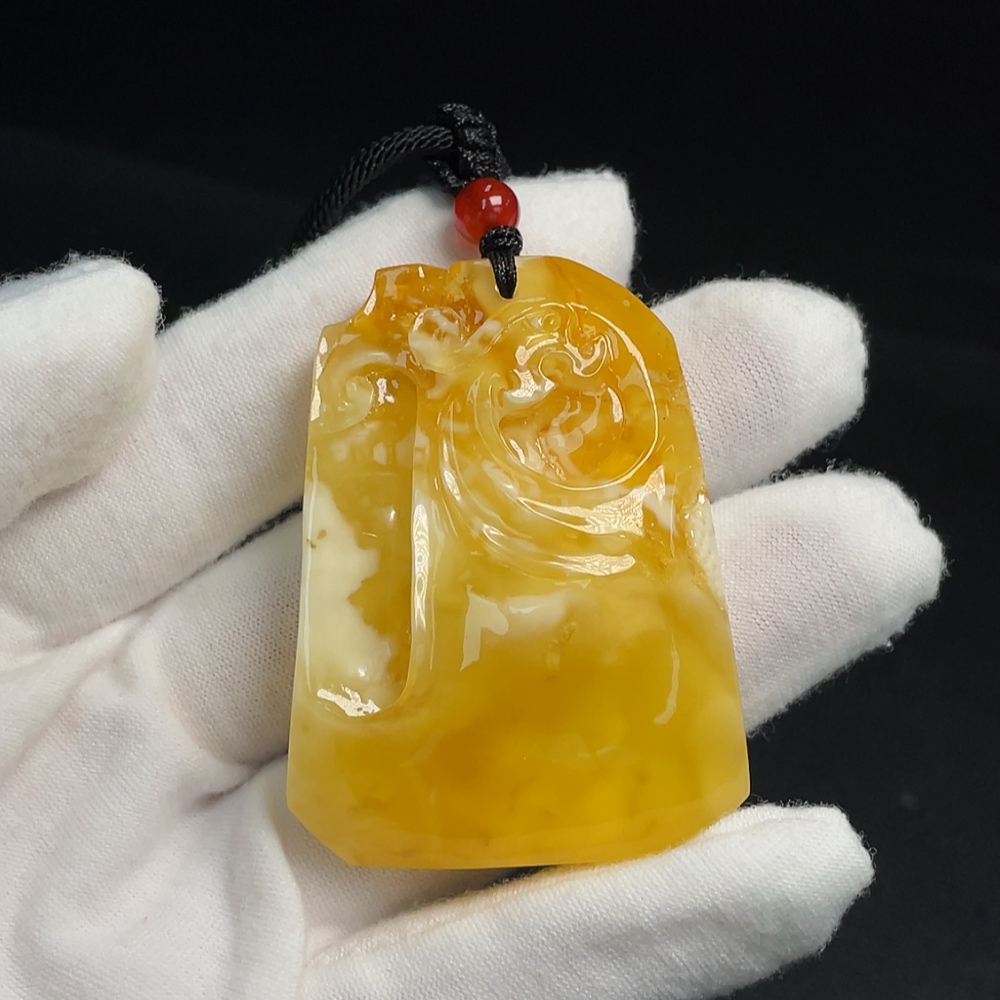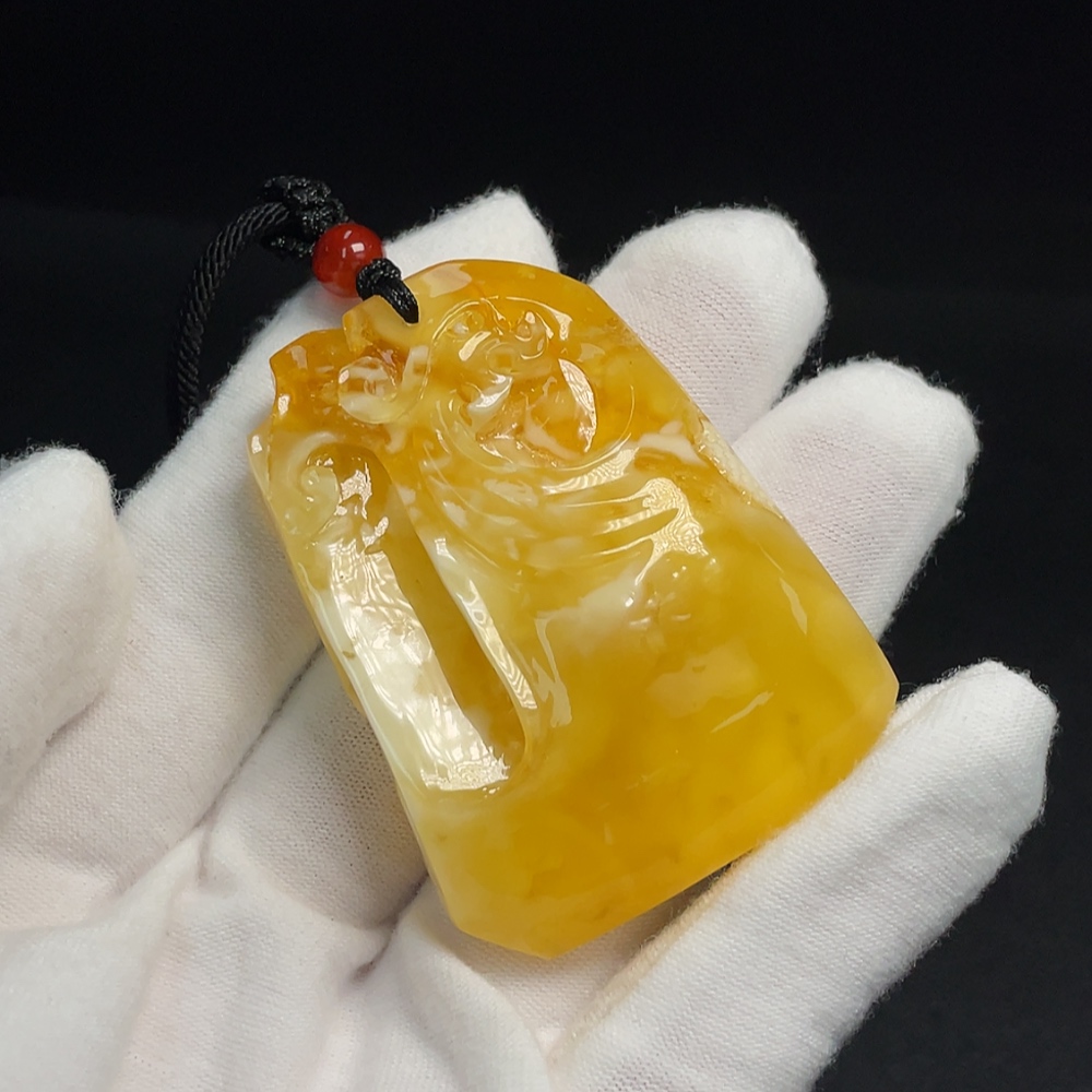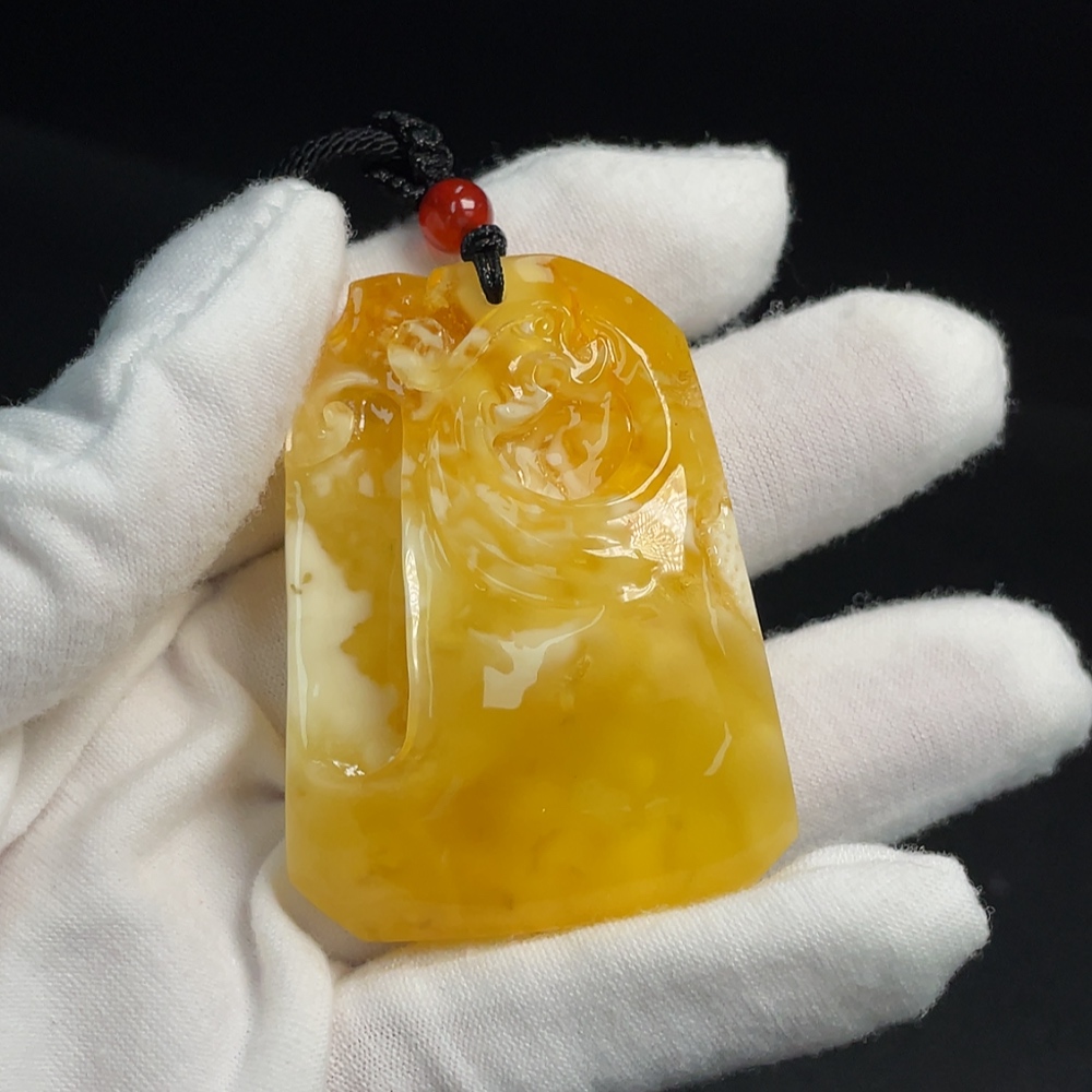 Amber Beeswax Pendant with Colorless Coating, Total Weight Approx. 22.66g Including Rope