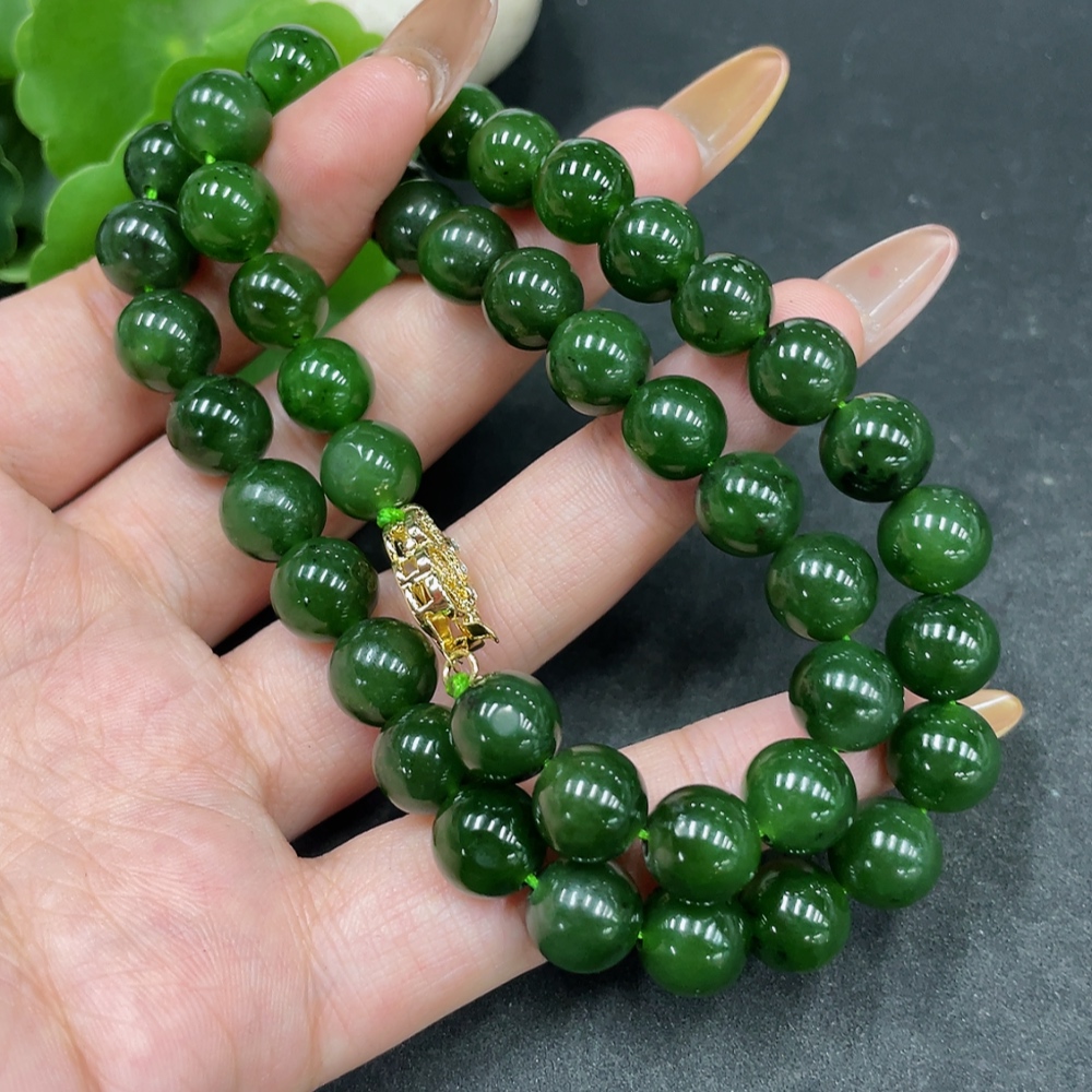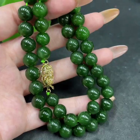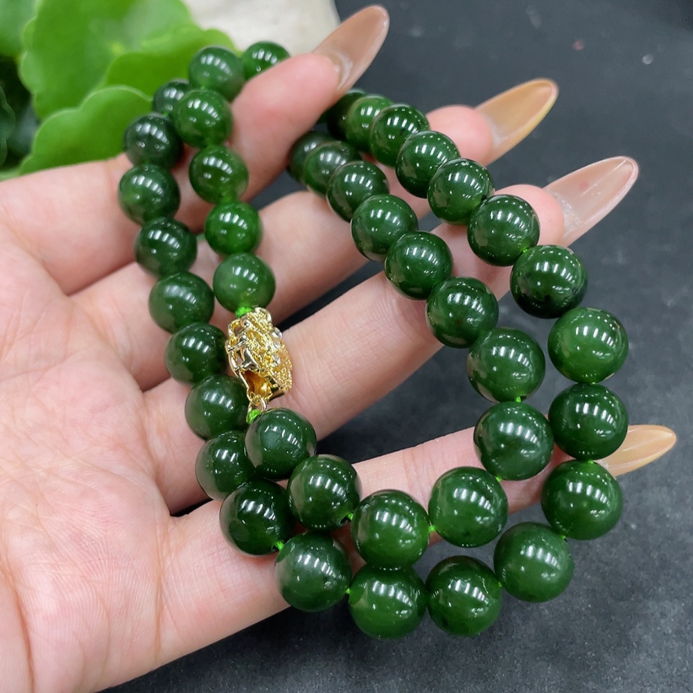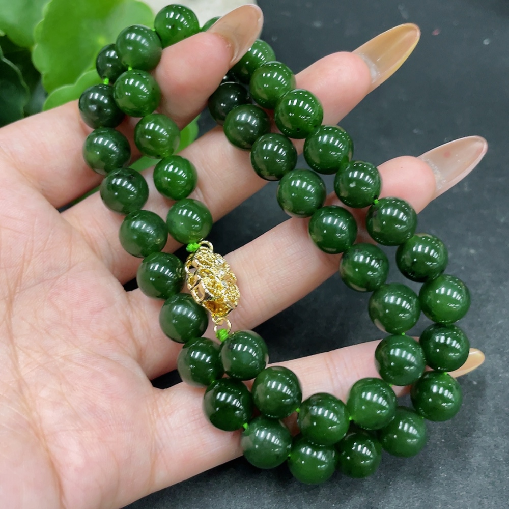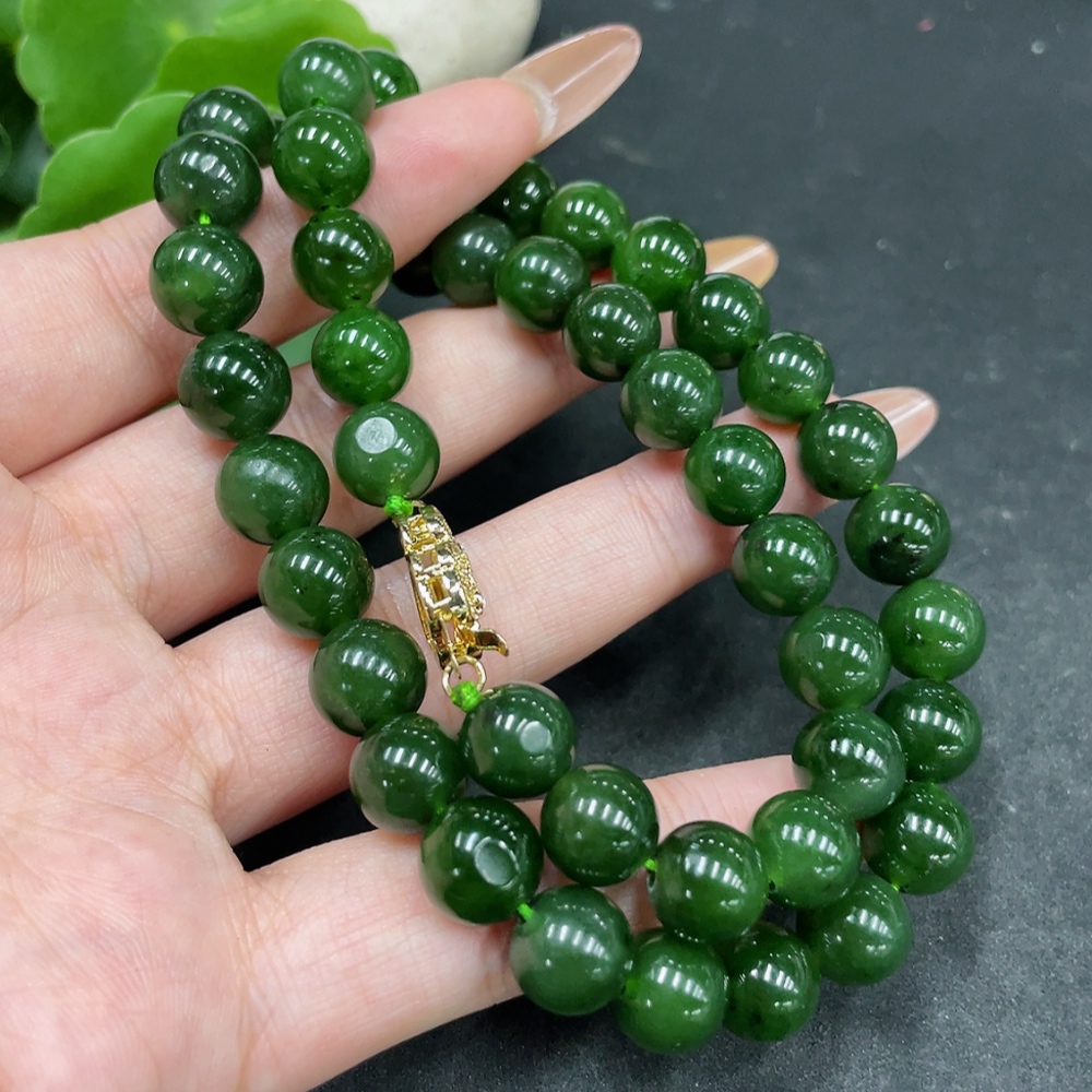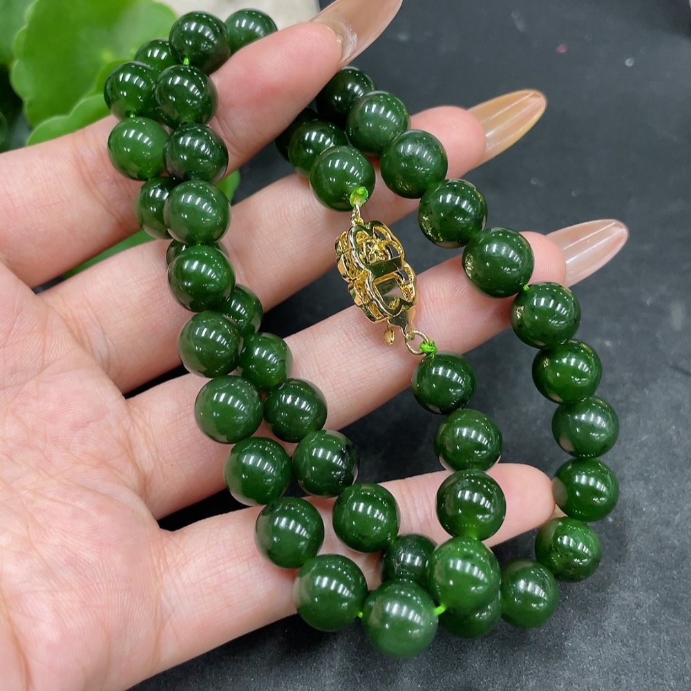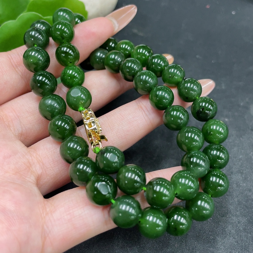 Hetian Jade Bead Necklace Approx. 8.7mm Non-Gold-Inlaid Total Weight Approx. 62.3g