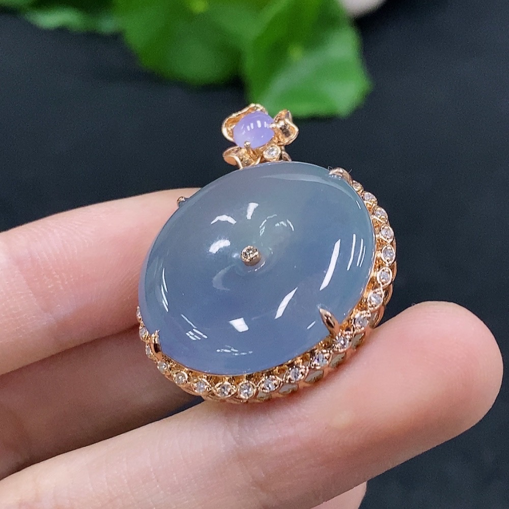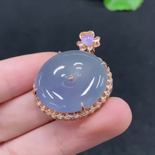 Jadeite Safety Buckle Inlaid Pendant 18K Gold Total Weight Approx. 11.06g with Diamond Accents