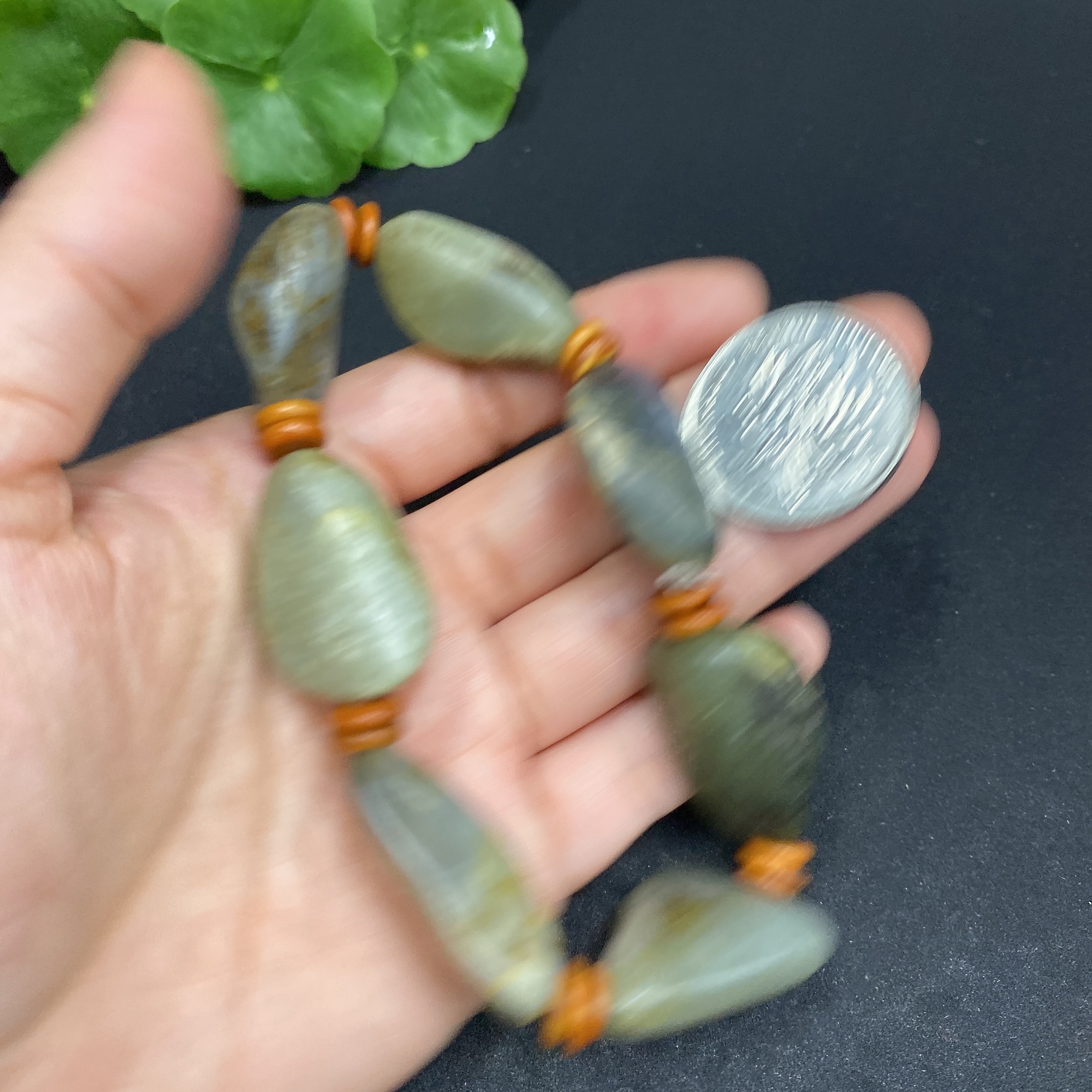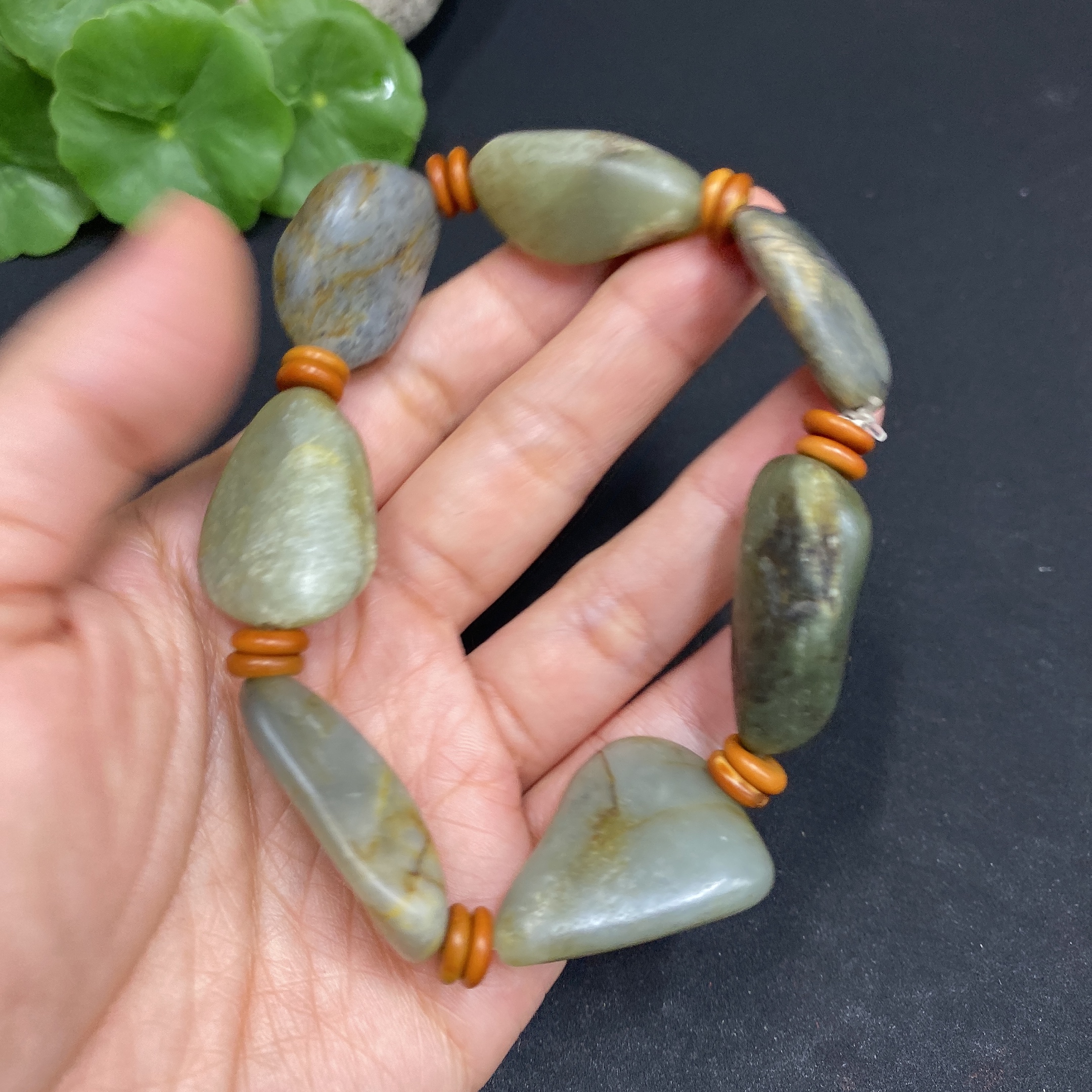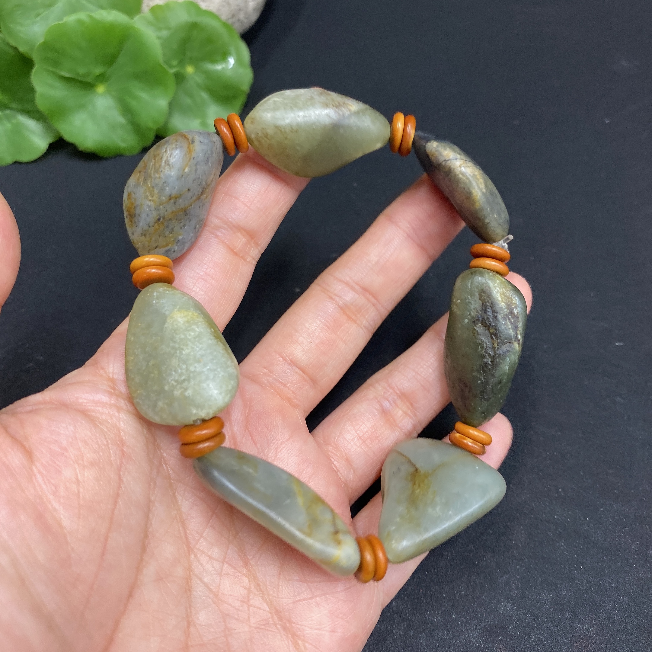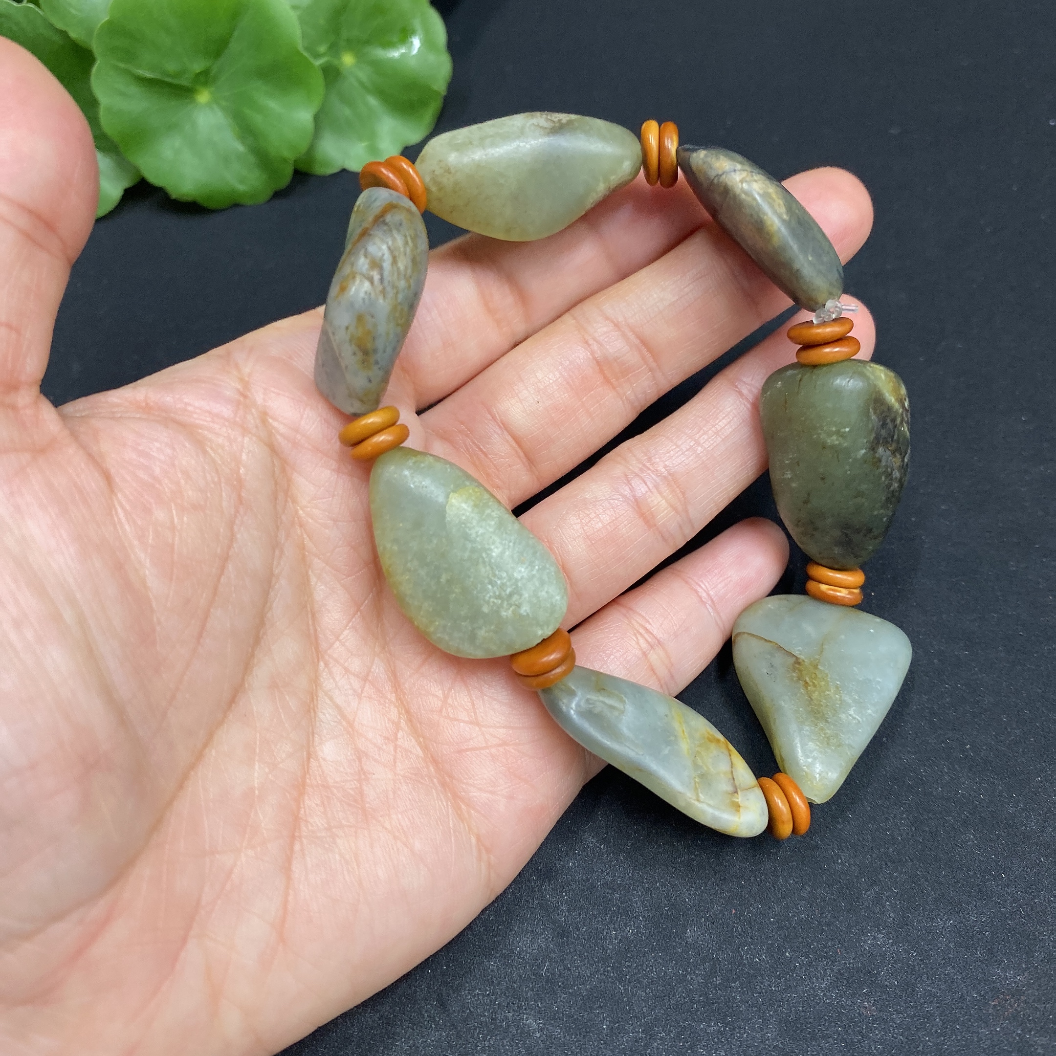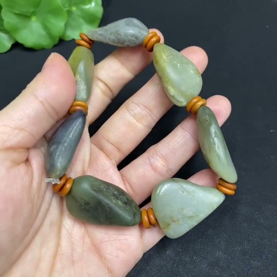 Hetian Jade Bracelet, Undetermined Skin Color Origin, Non-Hetian Jade Beads, Contains Other Mineral Components, Total Weight Approximately 58.1g