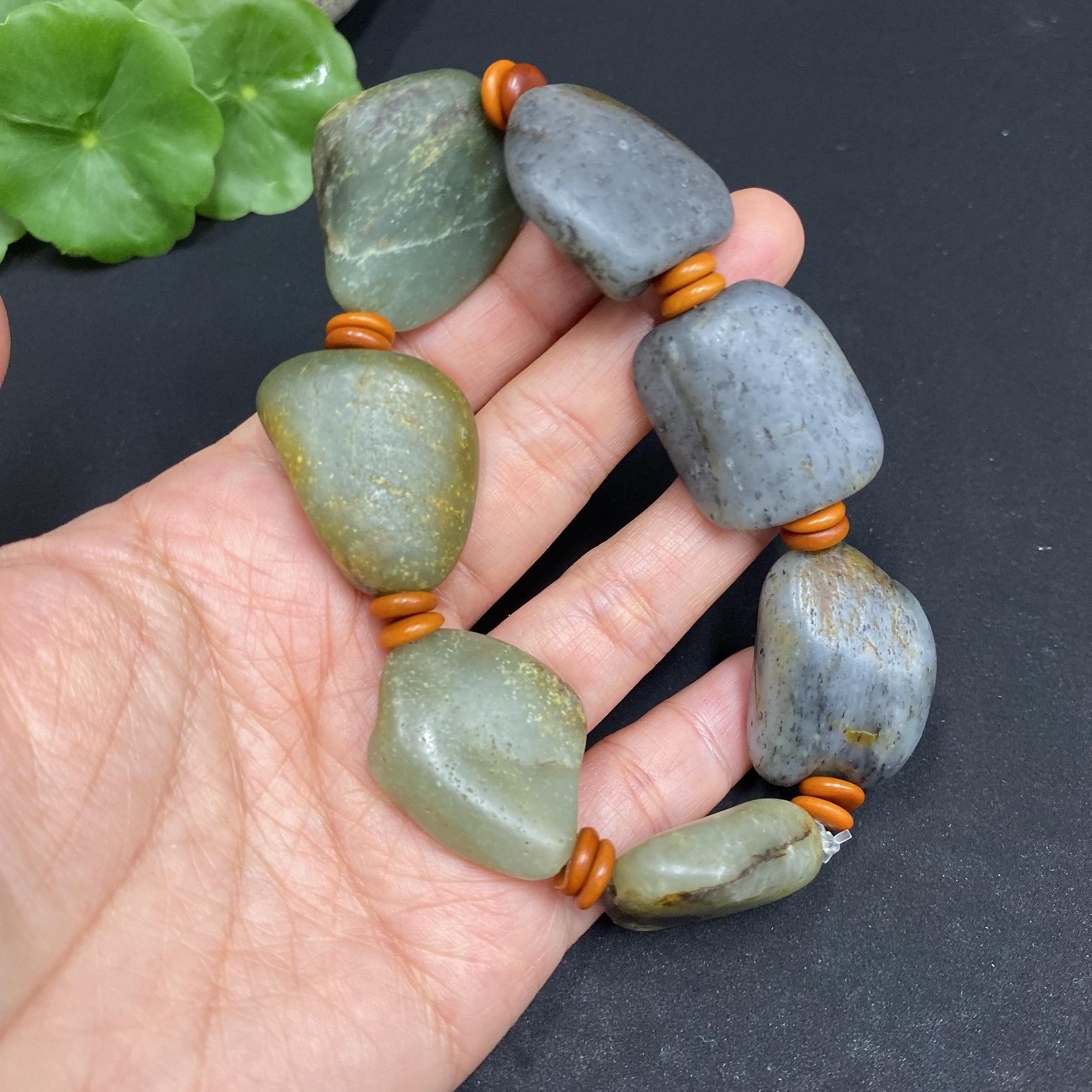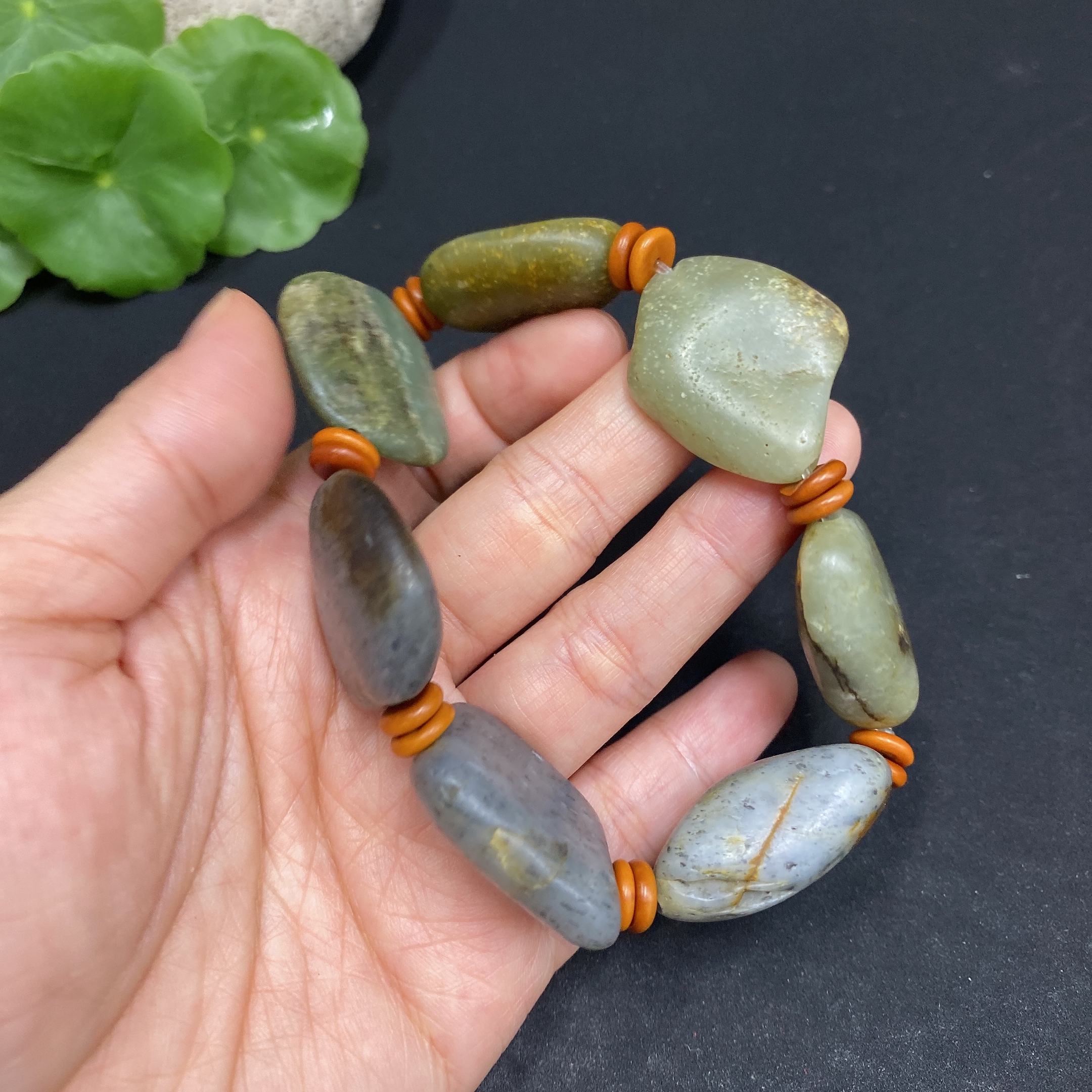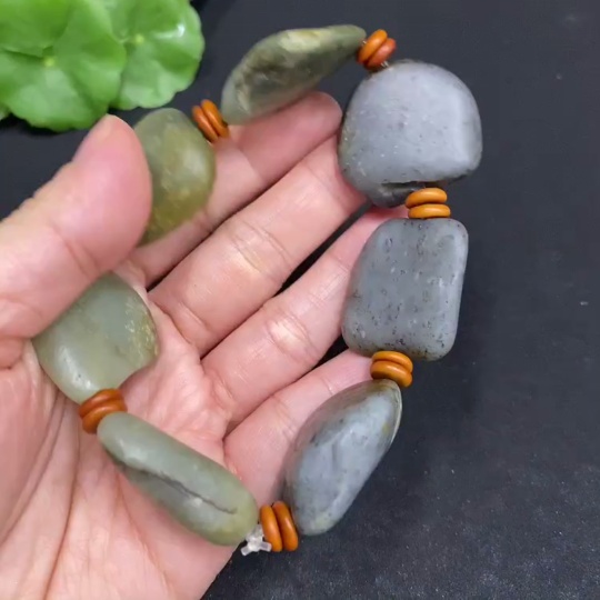 Hetian Jade Bracelet (Undetermined Skin Color Origin, Non-Hetian Jade Beads Included, Contains Other Mineral Components, Total Weight Approx. 77.3g)