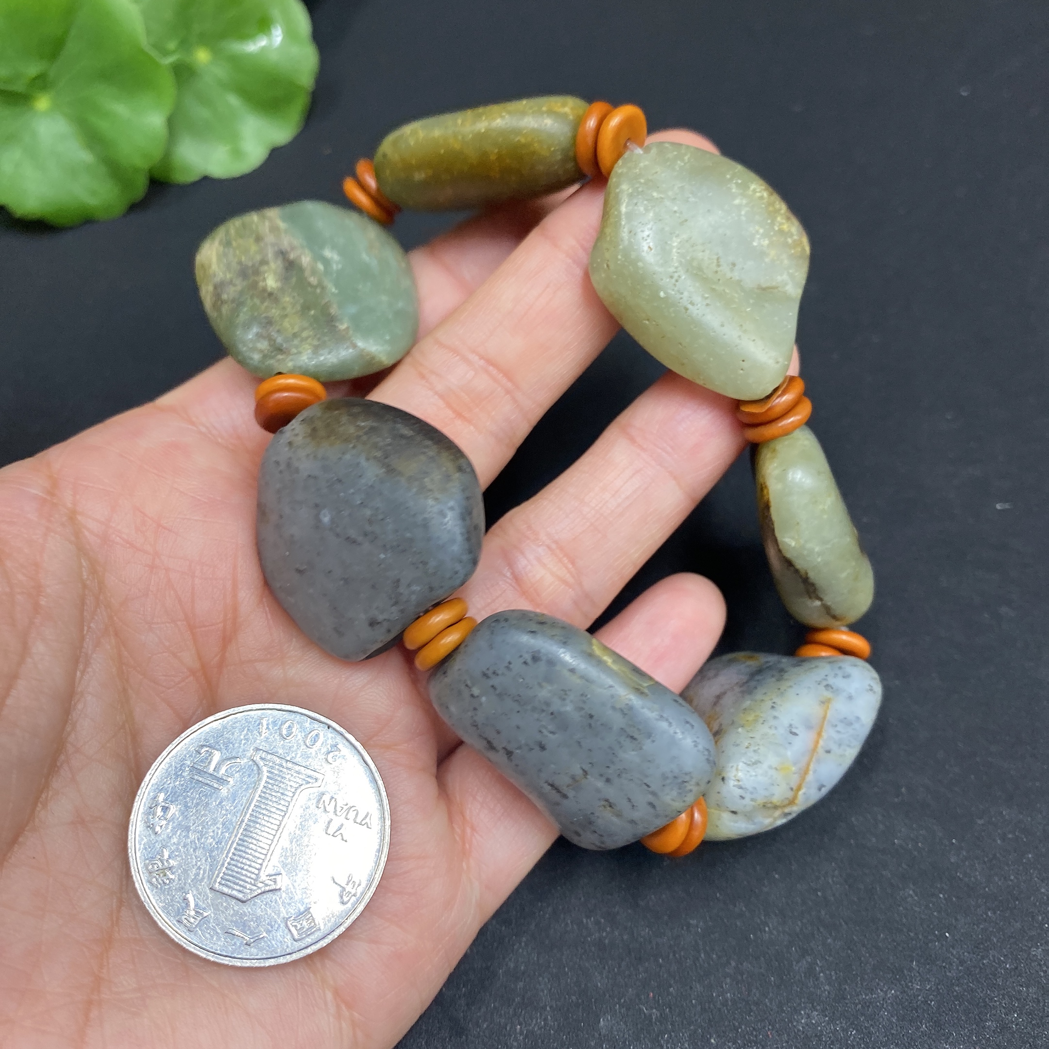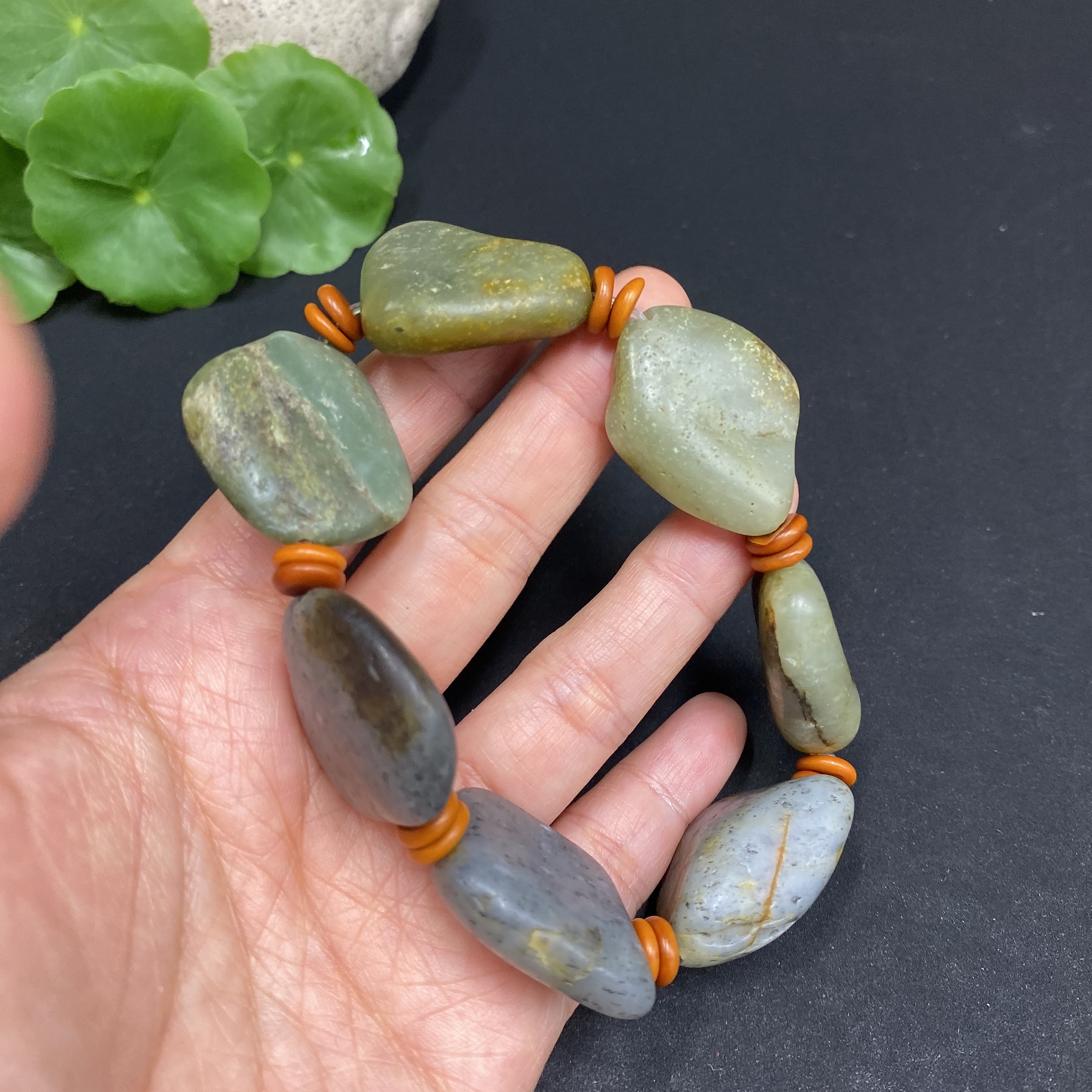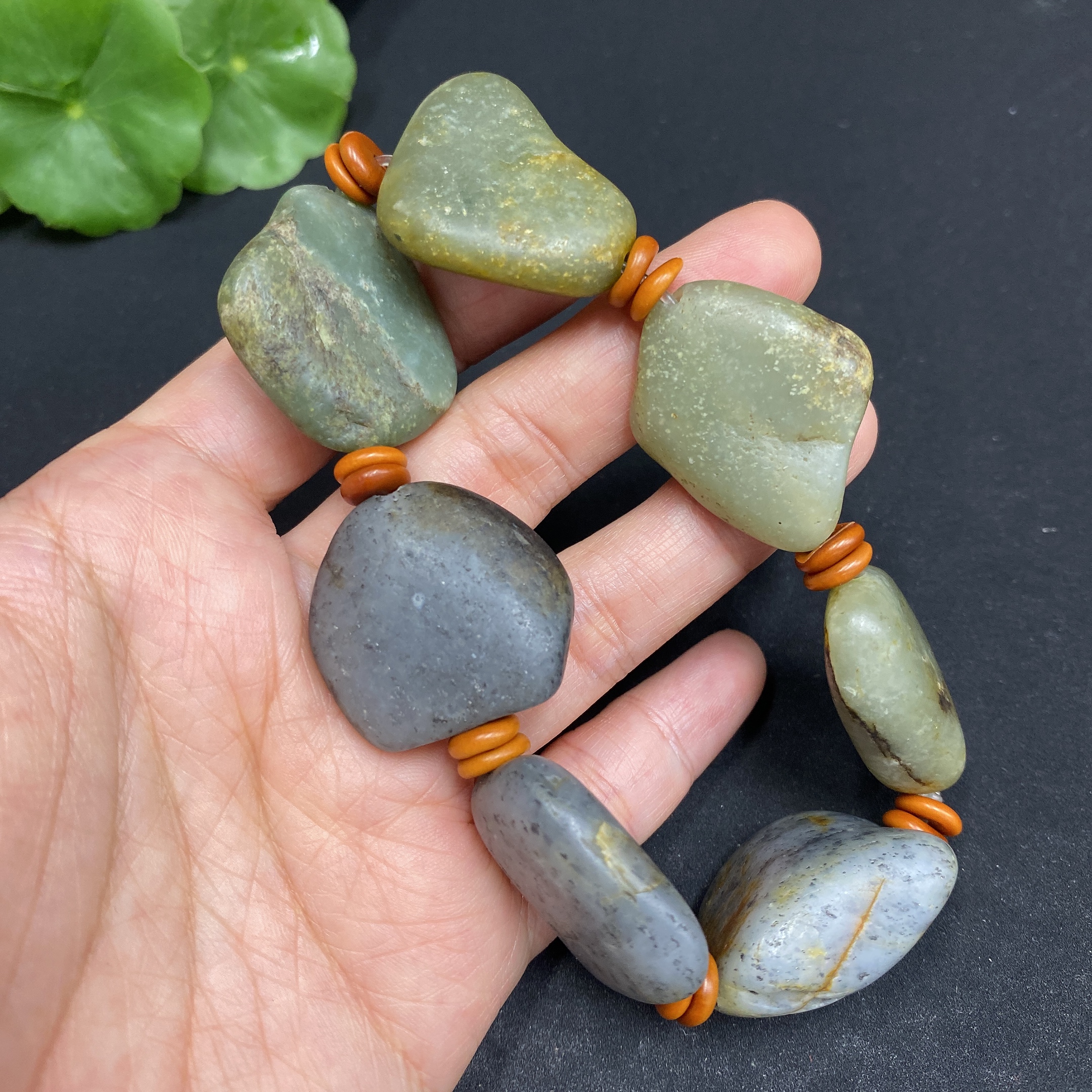 Hetian Jade Bracelet (Undetermined Skin Color Origin, Non-Hetian Jade Beads Included, Contains Other Mineral Components, Total Weight Approx. 77.3g)