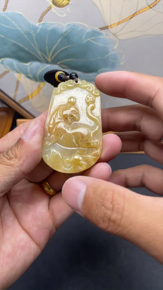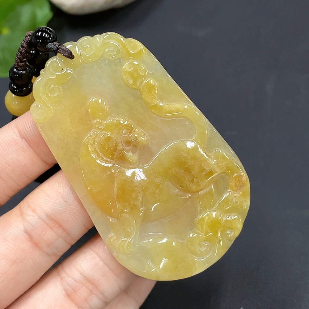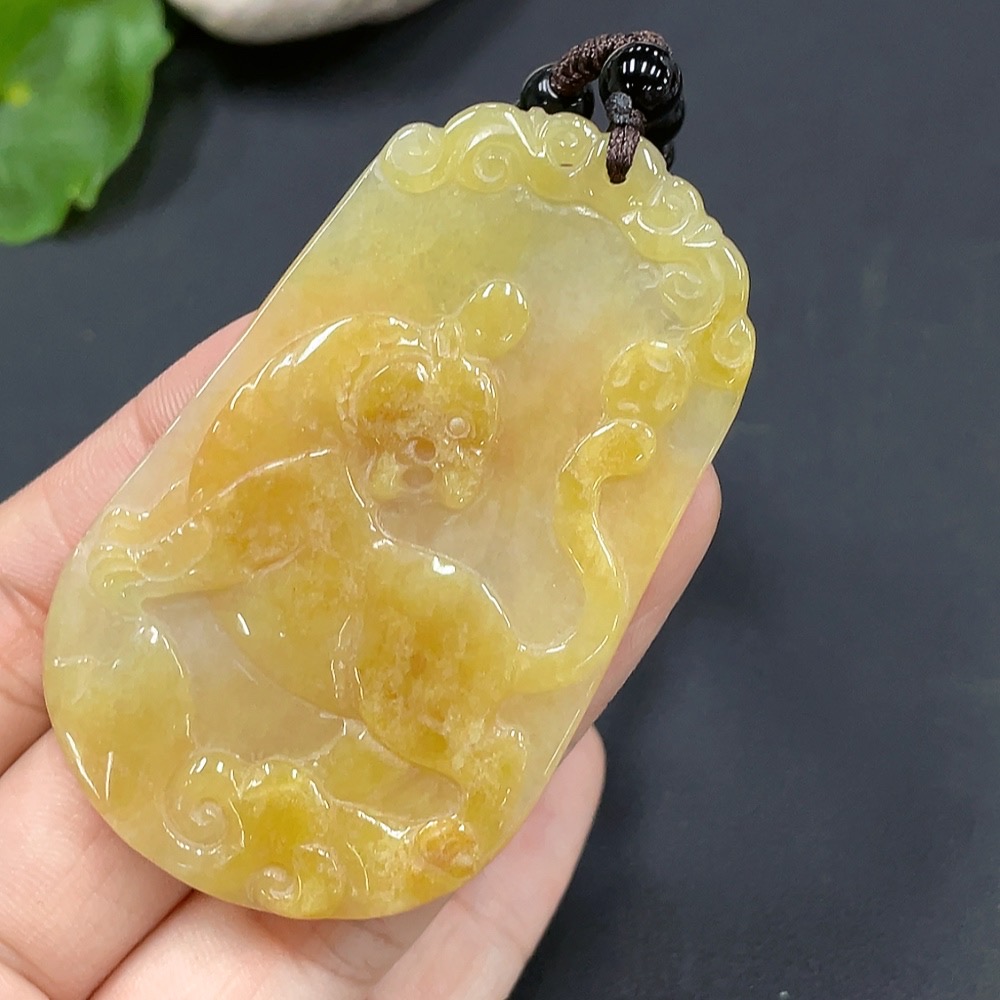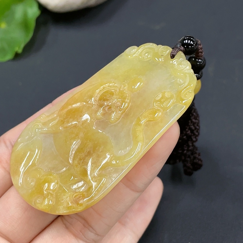 Jadeite Auspicious Beast Pendant, color origin undetermined, total weight 20.786g