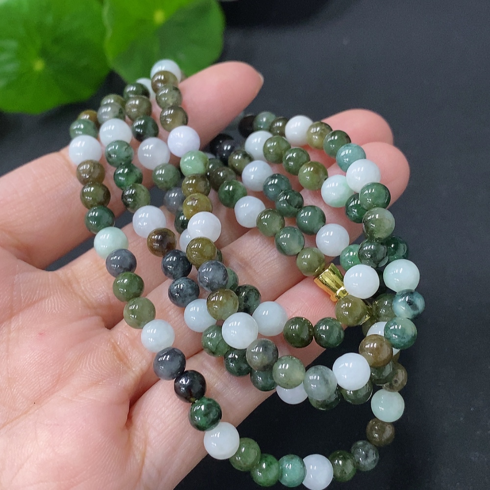 Jadeite Bead Necklace Approx. 5.5mm Max. Bead Total Weight Approx. 33.9g Non-Gold
