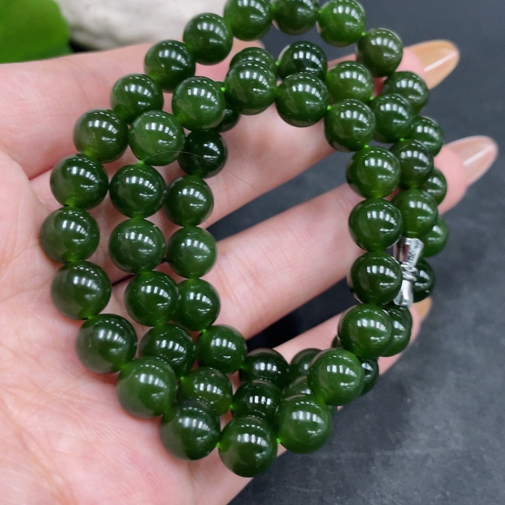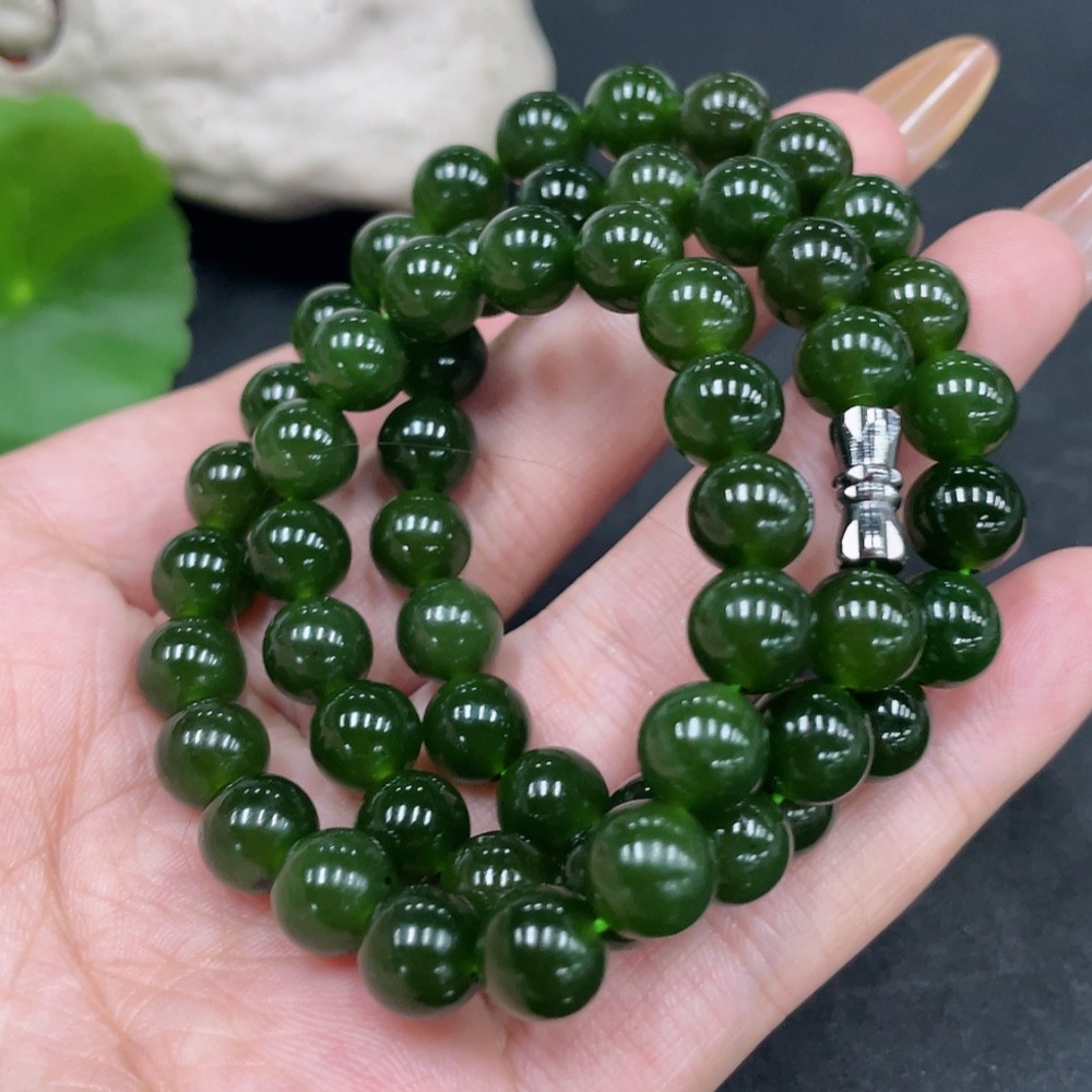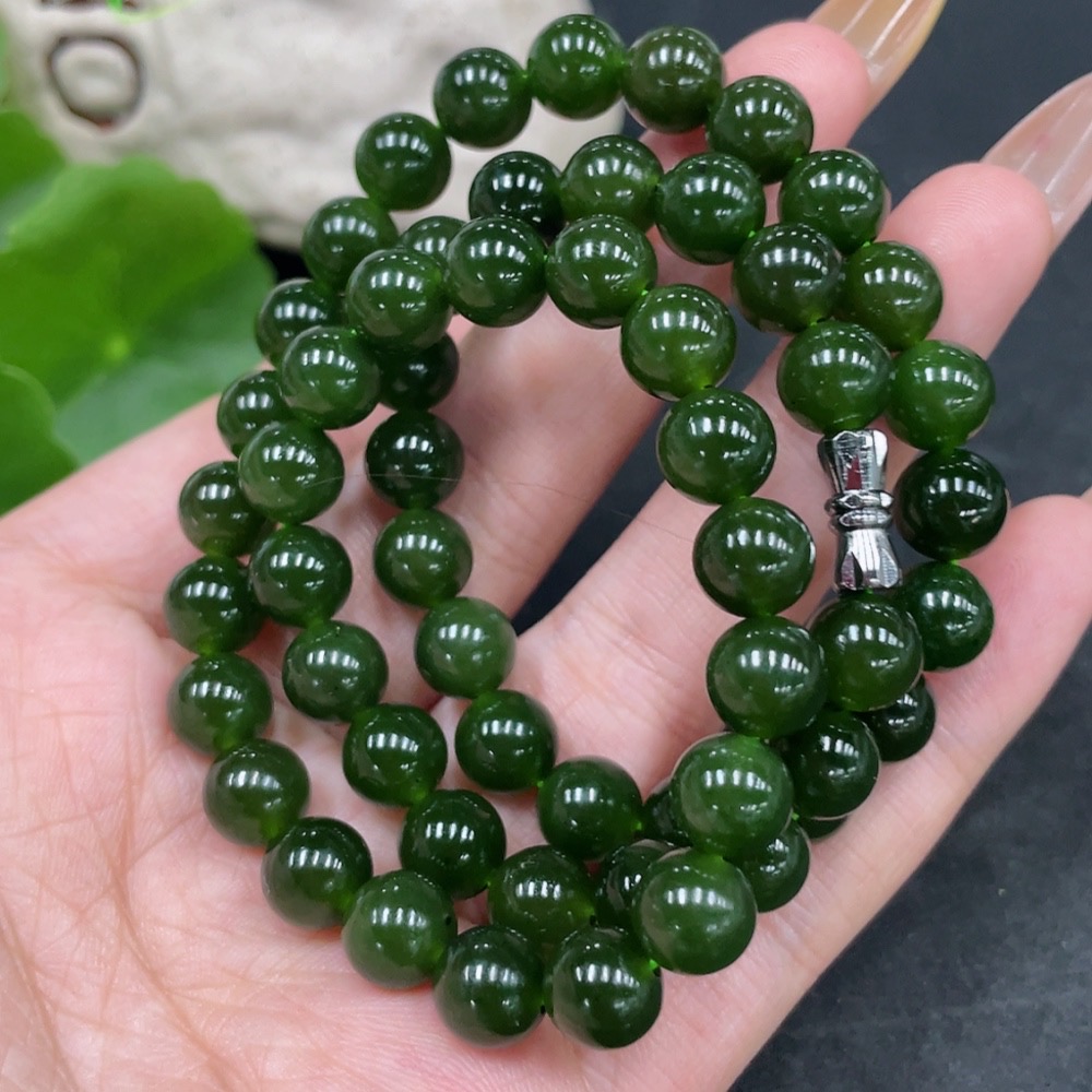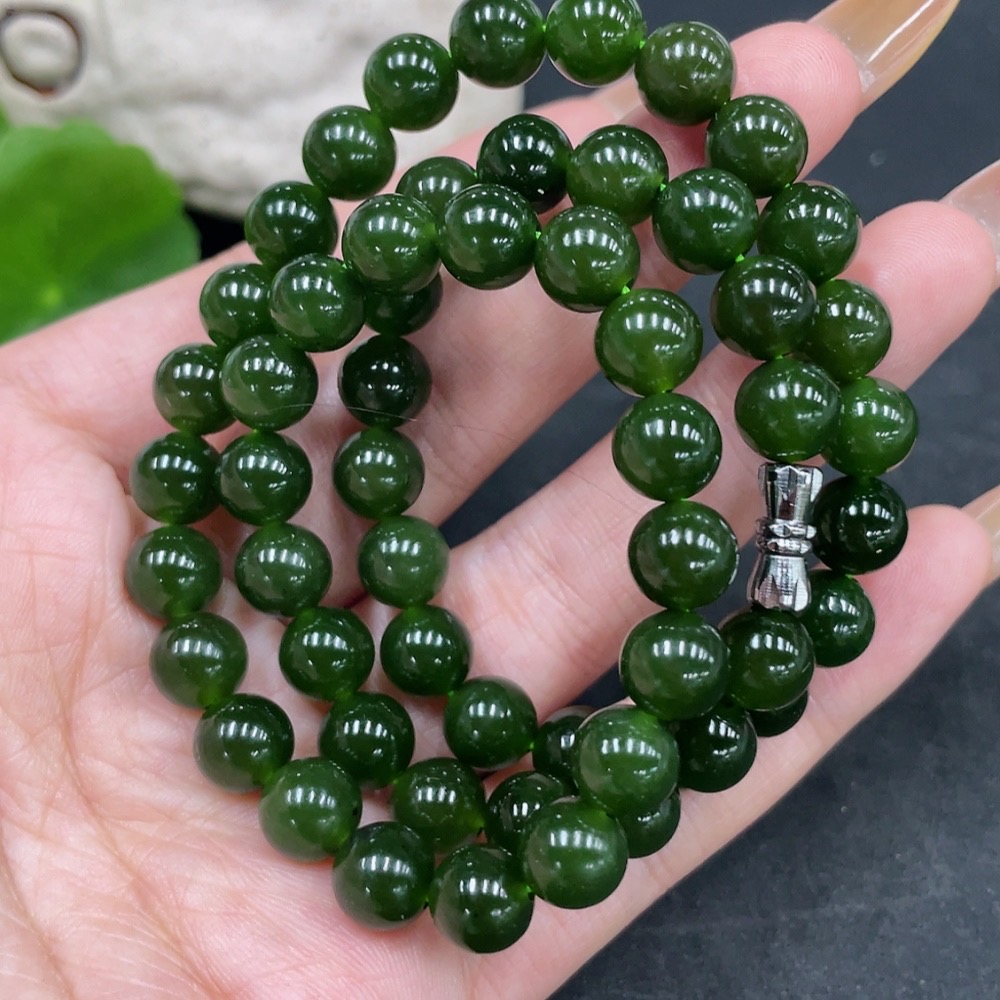 Hetian Jade Bead Necklace, Approx. 8mm, Non-Gold, Total Weight Approx. 45.5g