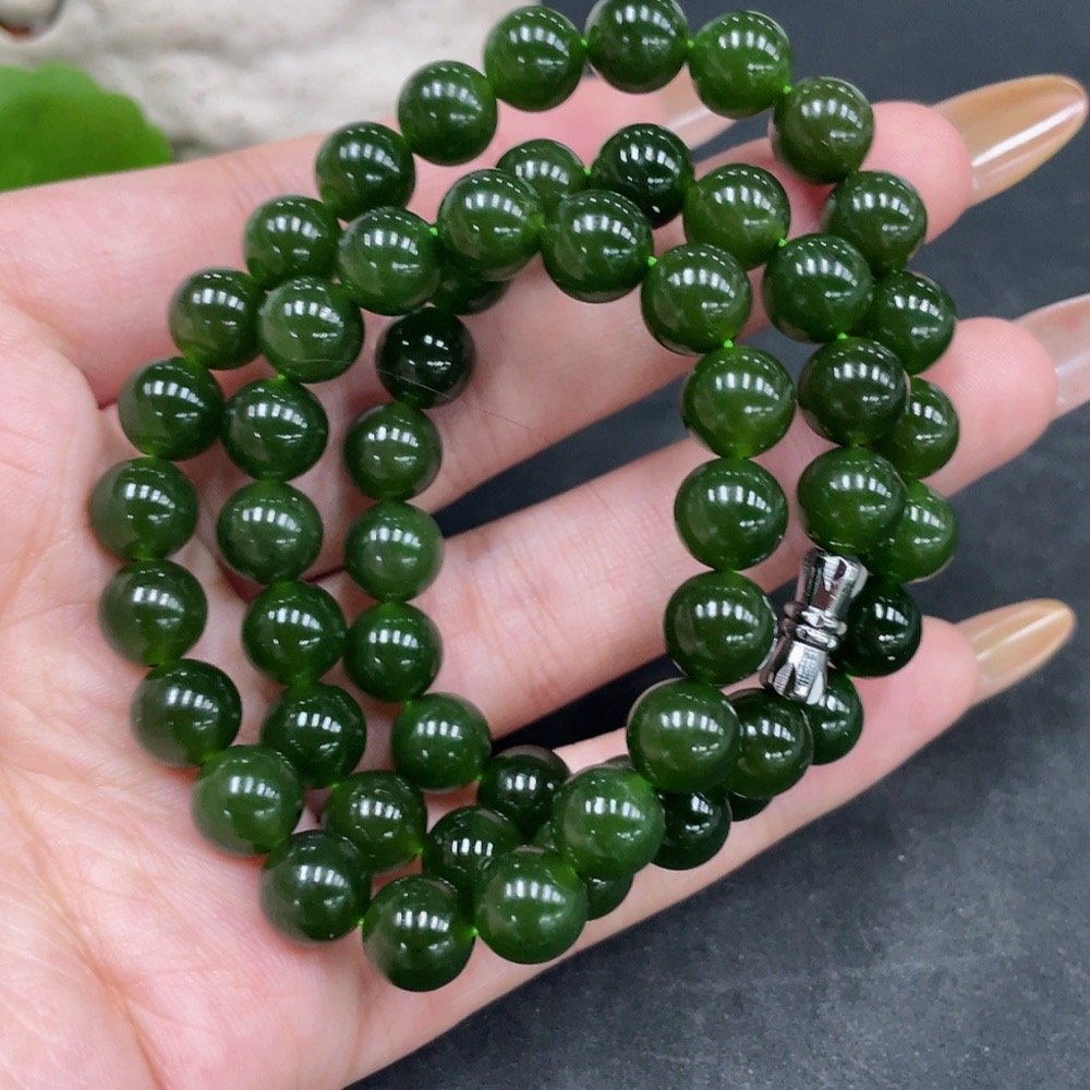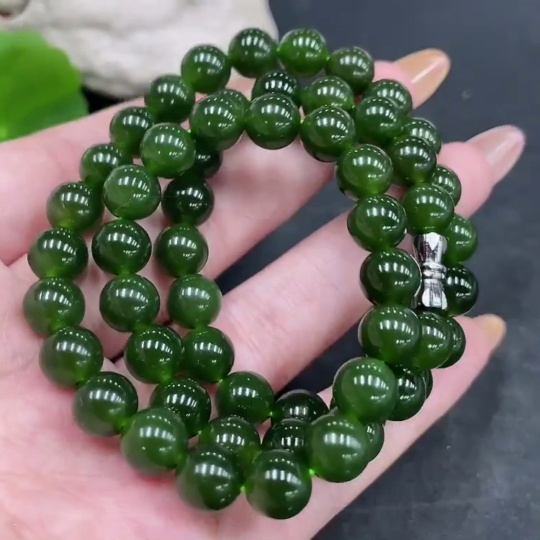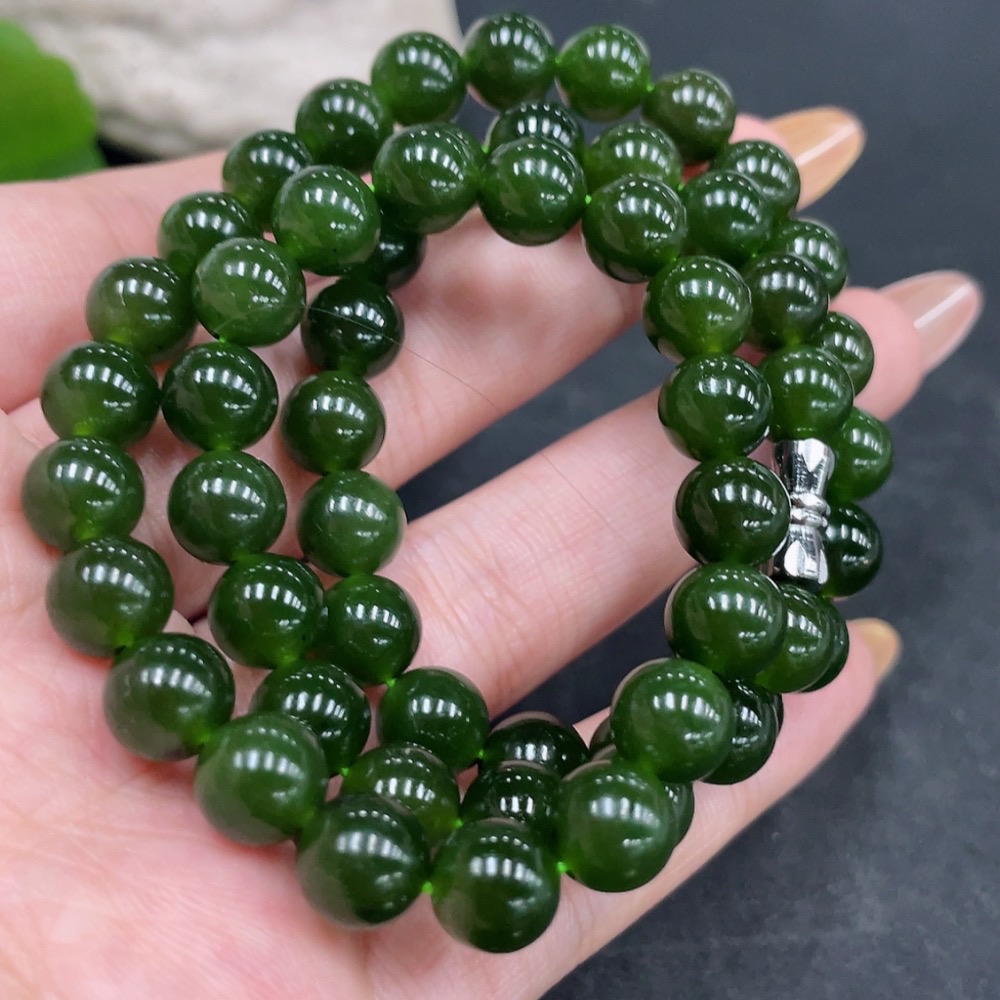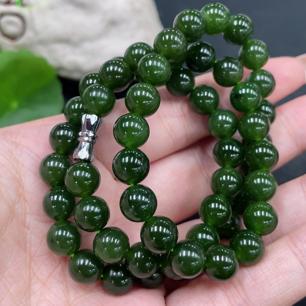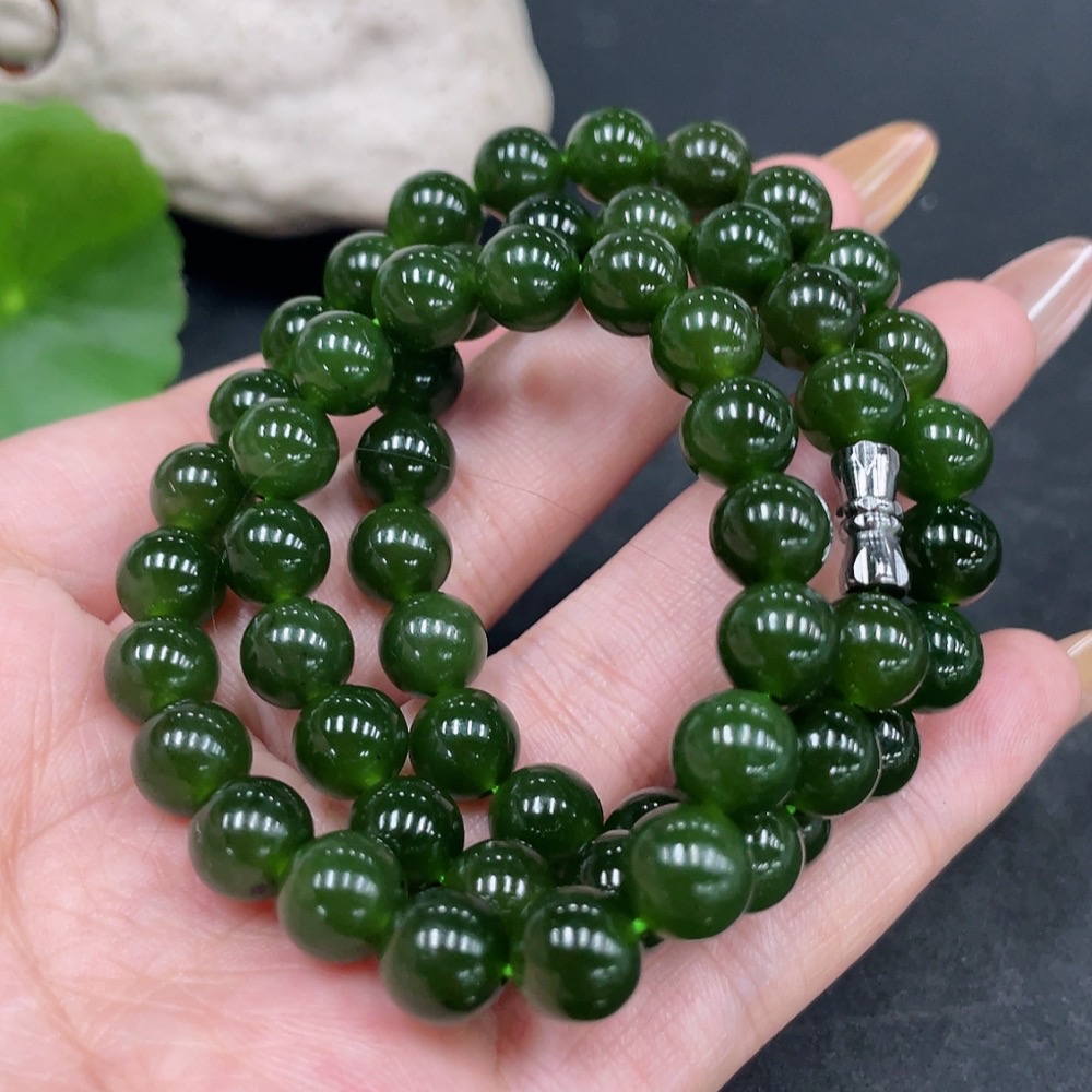 Hetian Jade Bead Necklace, Approx. 8mm, Non-Gold, Total Weight Approx. 45.5g