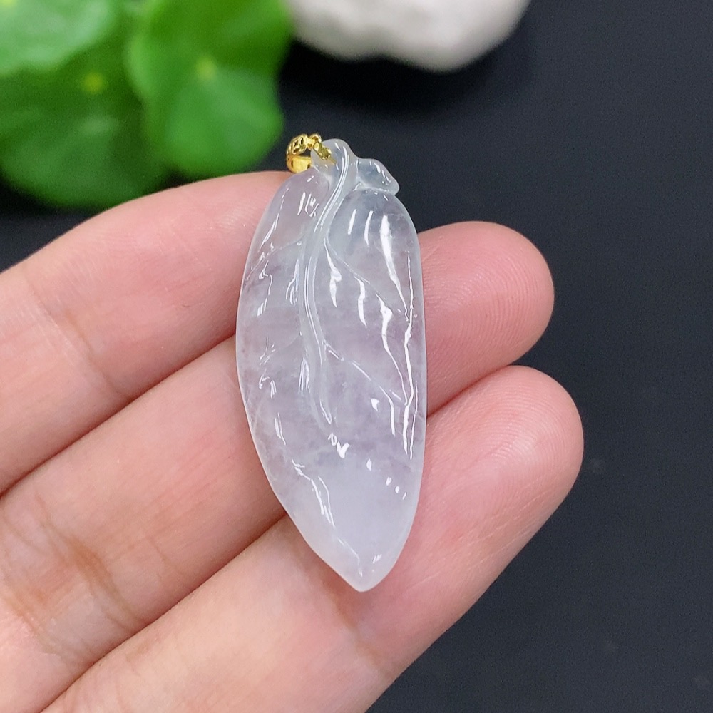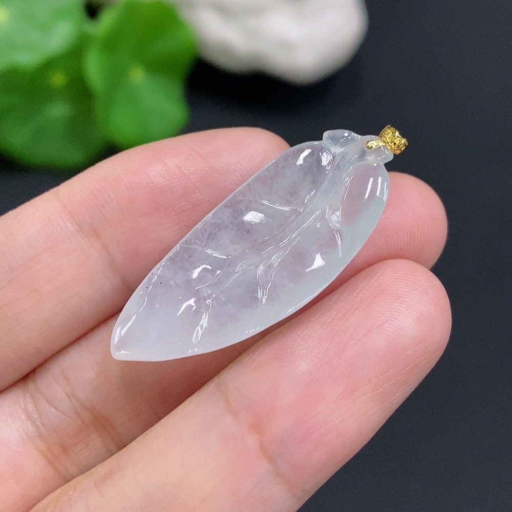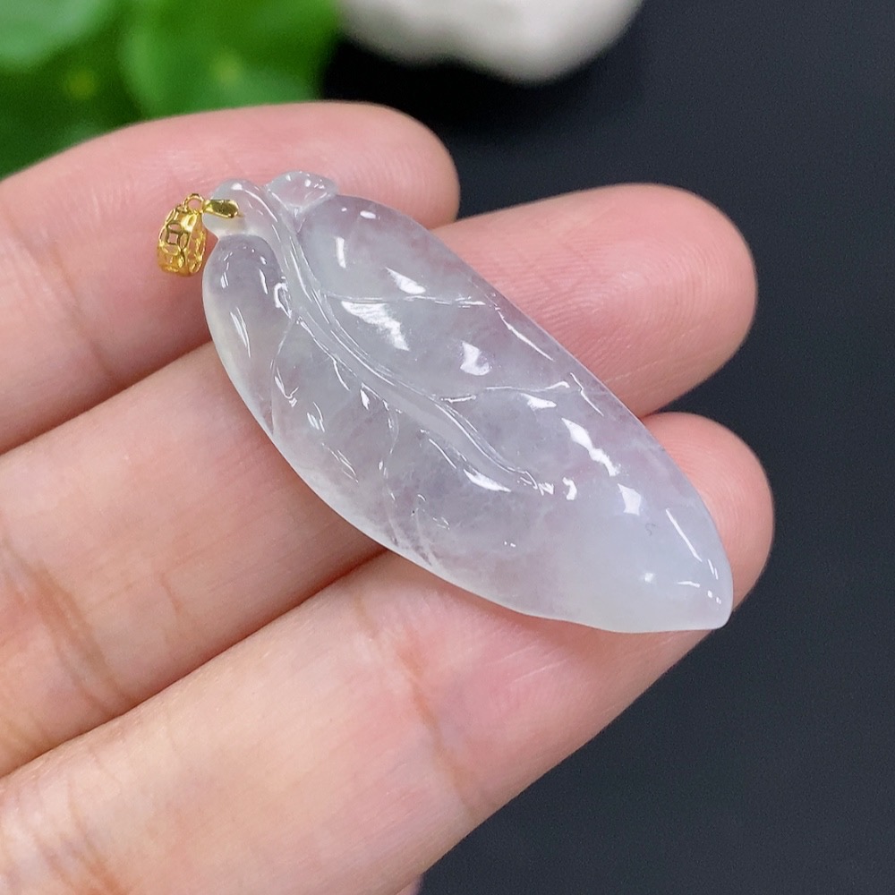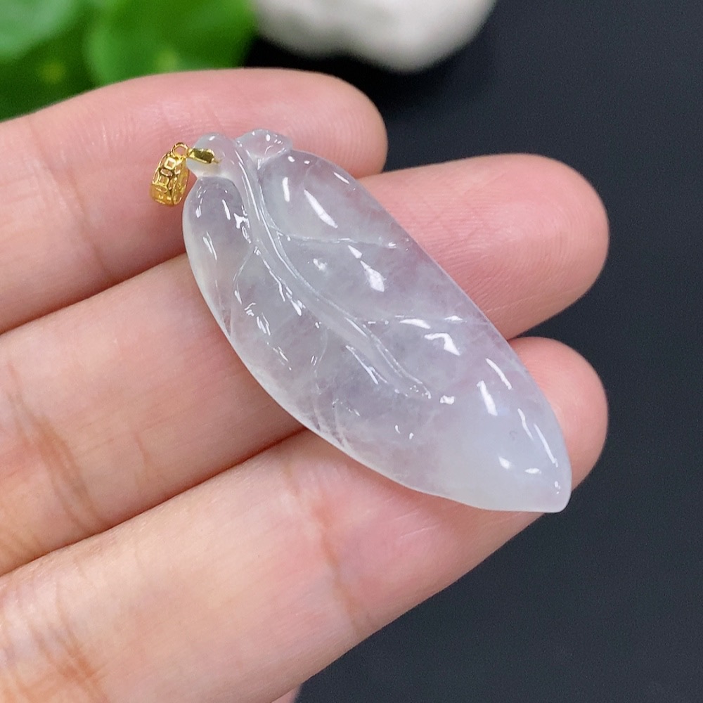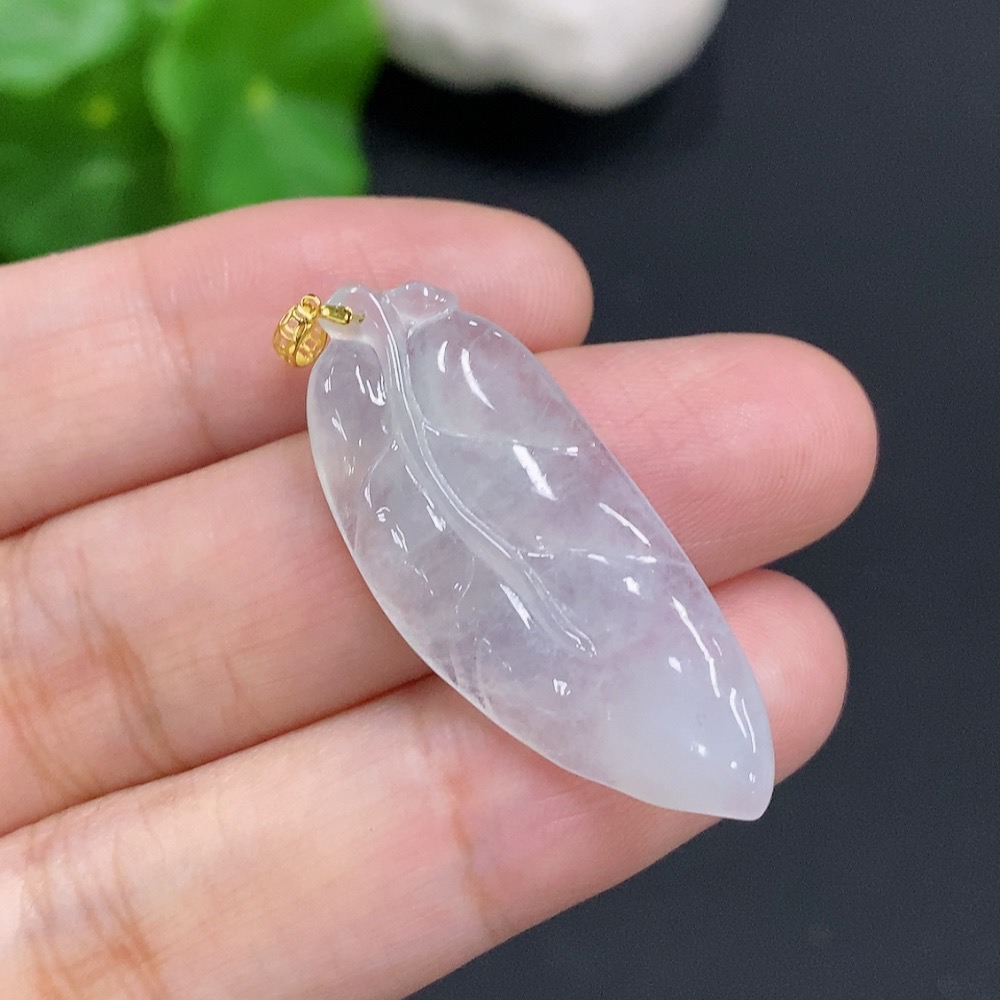 Jadeite Leaf Pendant with 18K Gold Clasp, Total Weight Approx. 3.3g