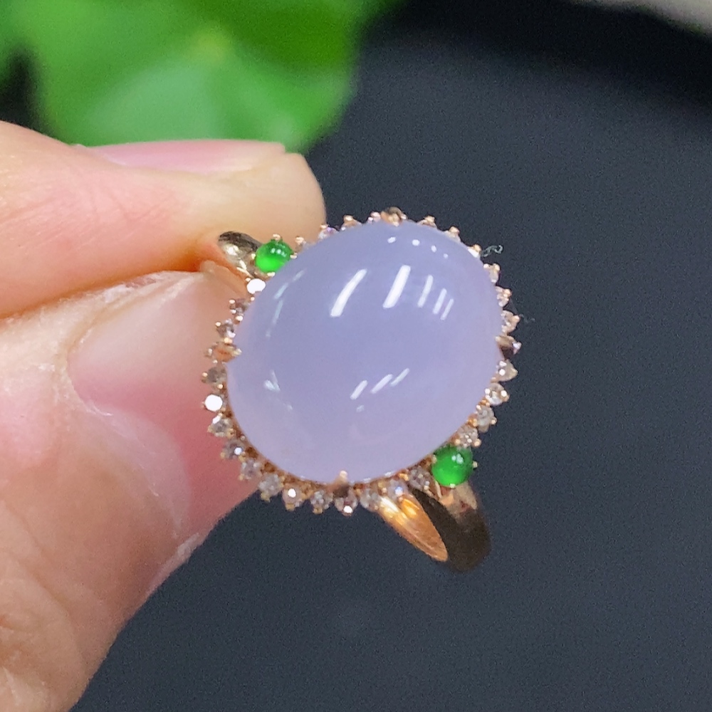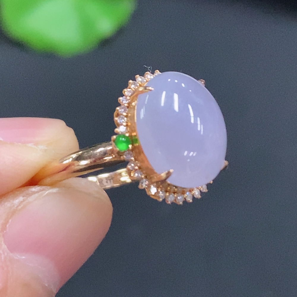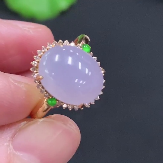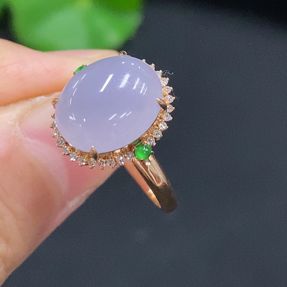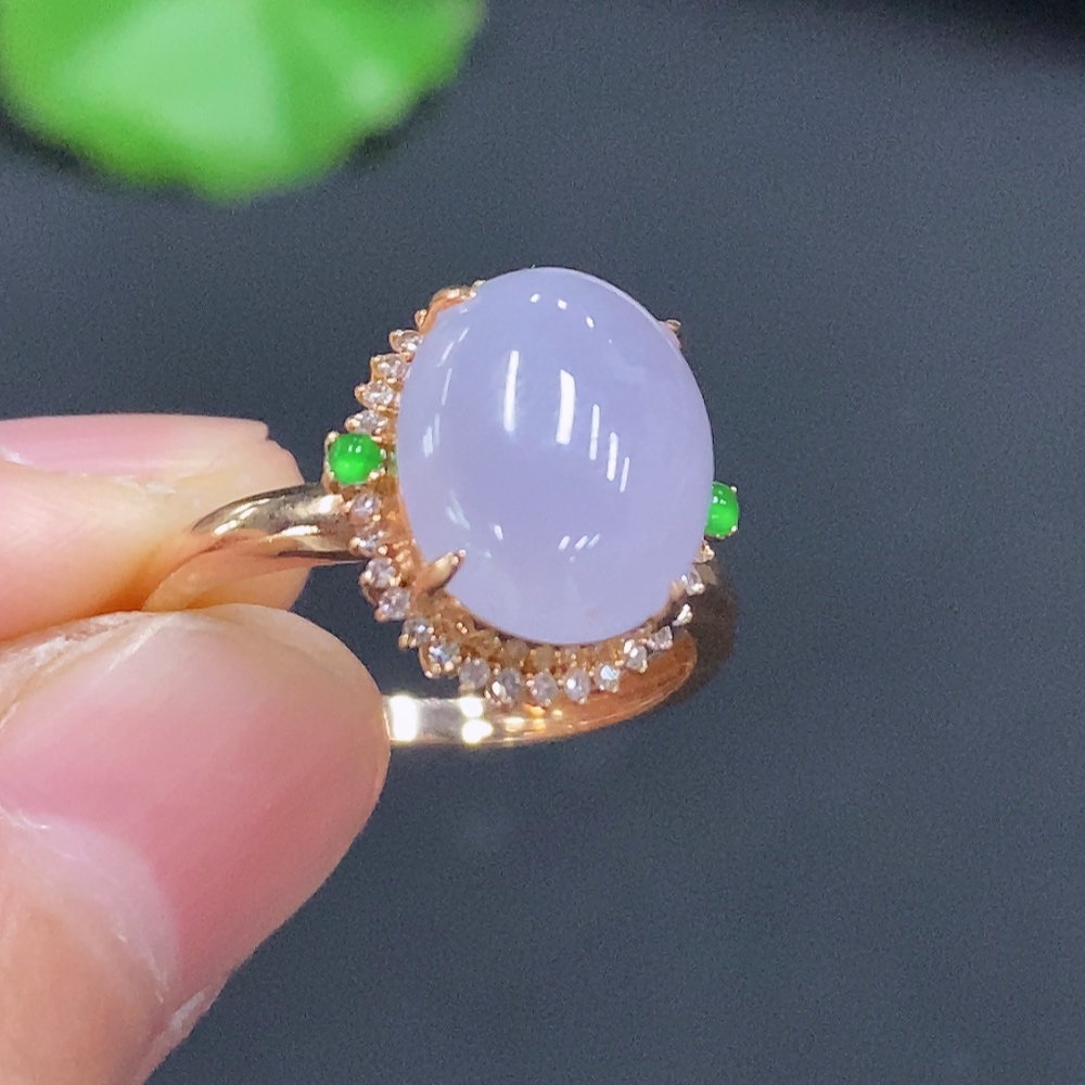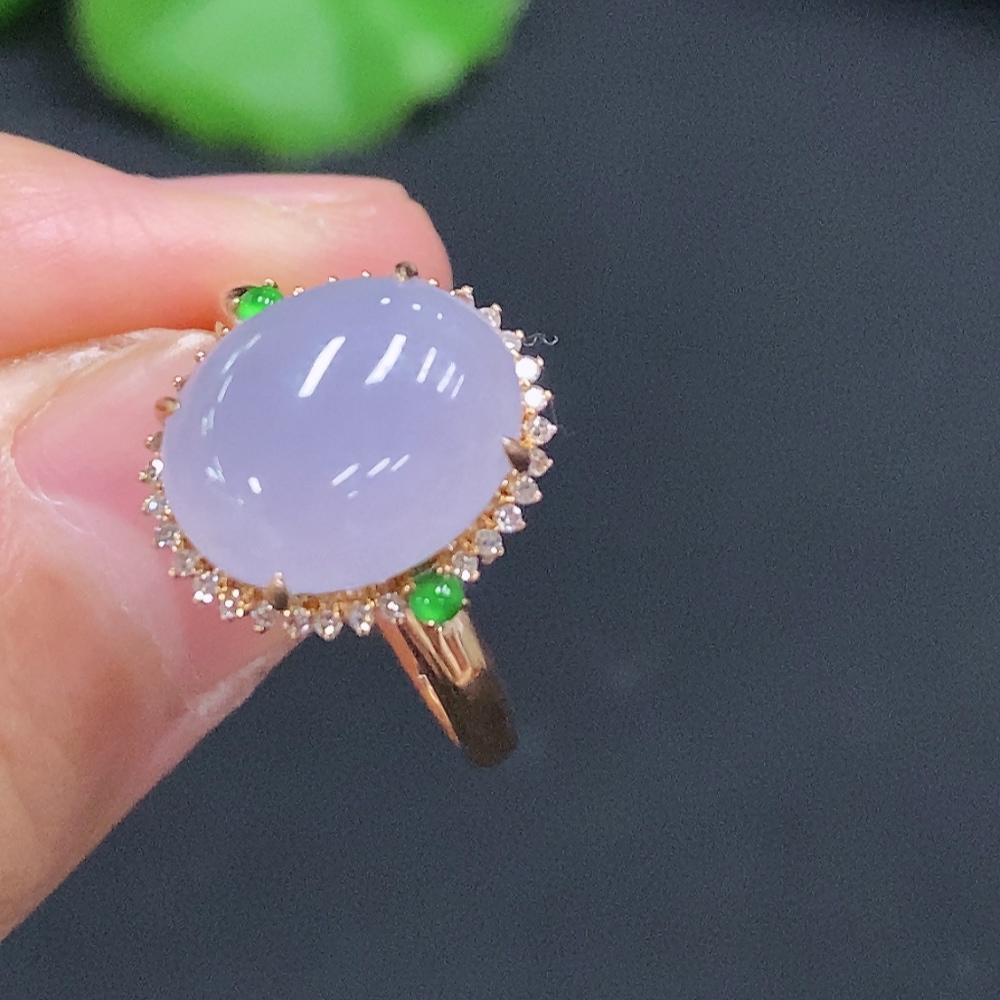 Jadeite Cabochon Inlaid Ring with 18K Gold and Diamond Accents, Size 14, Total Weight Approx. 2.7g